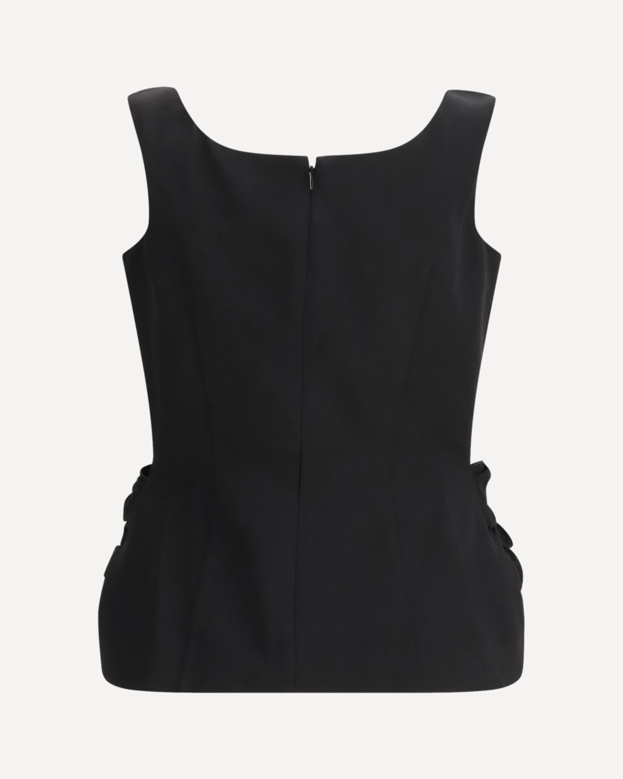 The cotton and silk Top with floral appliqués by Magda Butrym is a sophisticated and refined garment. The wide straps and softly curved neckline create an elegant silhouette, while the darts sculpt the waist and hips for a perfect fit. Two sculptural floral appliqués on the sides, finished with a delicate detail on the hem, add a touch of originality and refinement. Fully lined for comfort, the top closes at the back with a concealed zip for a flawless look.