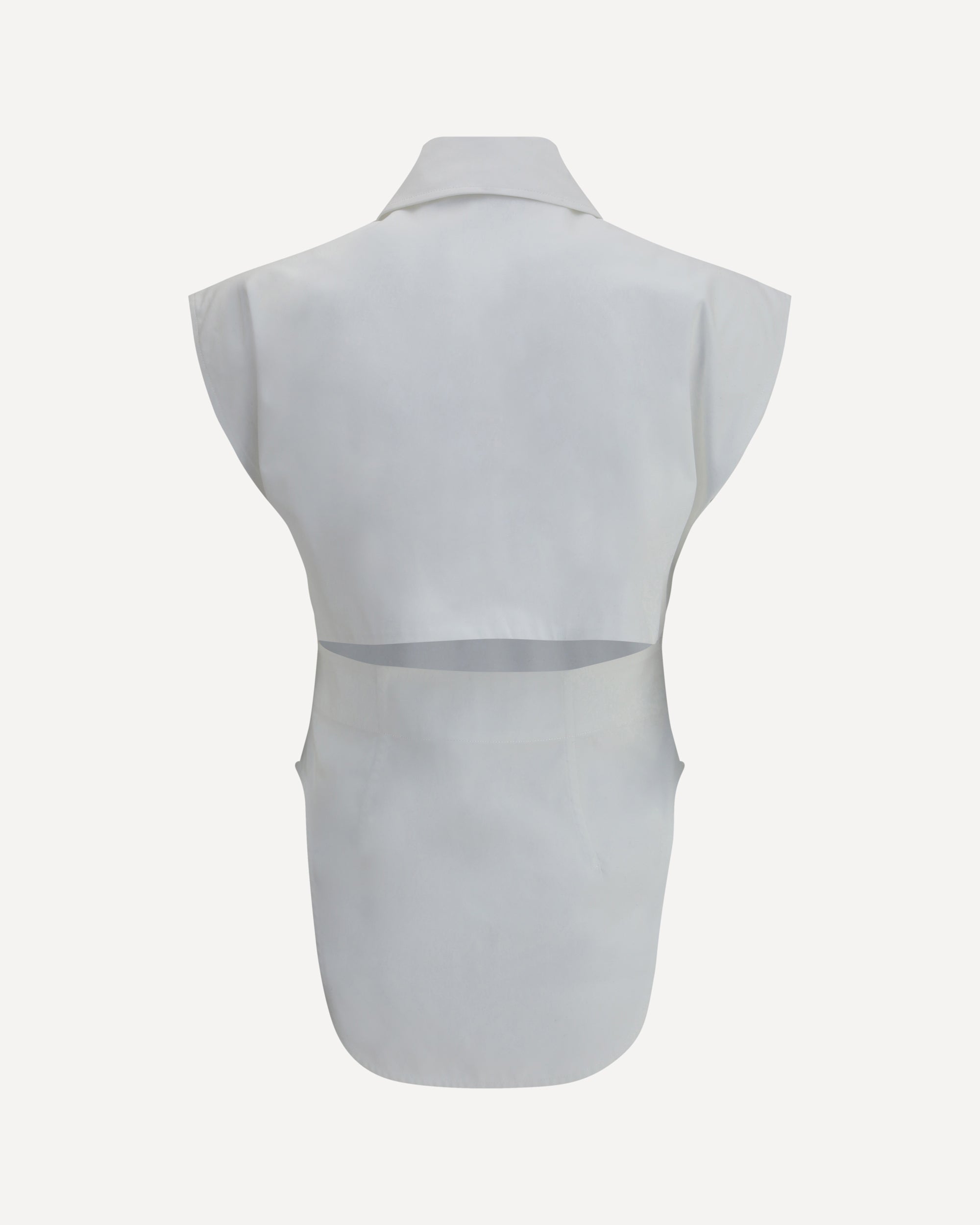 Max Mara Sportmax's sleeveless Saturday Shirt is a sophisticated and modern piece, perfect for an elegant yet casual look. Featuring a pointed collar and a front closure with concealed buttons, it has two side slits that accentuate its fluidity. The cut-out detail on the back adds a distinctive and contemporary touch, giving the shirt a unique and stylish interpretation.
