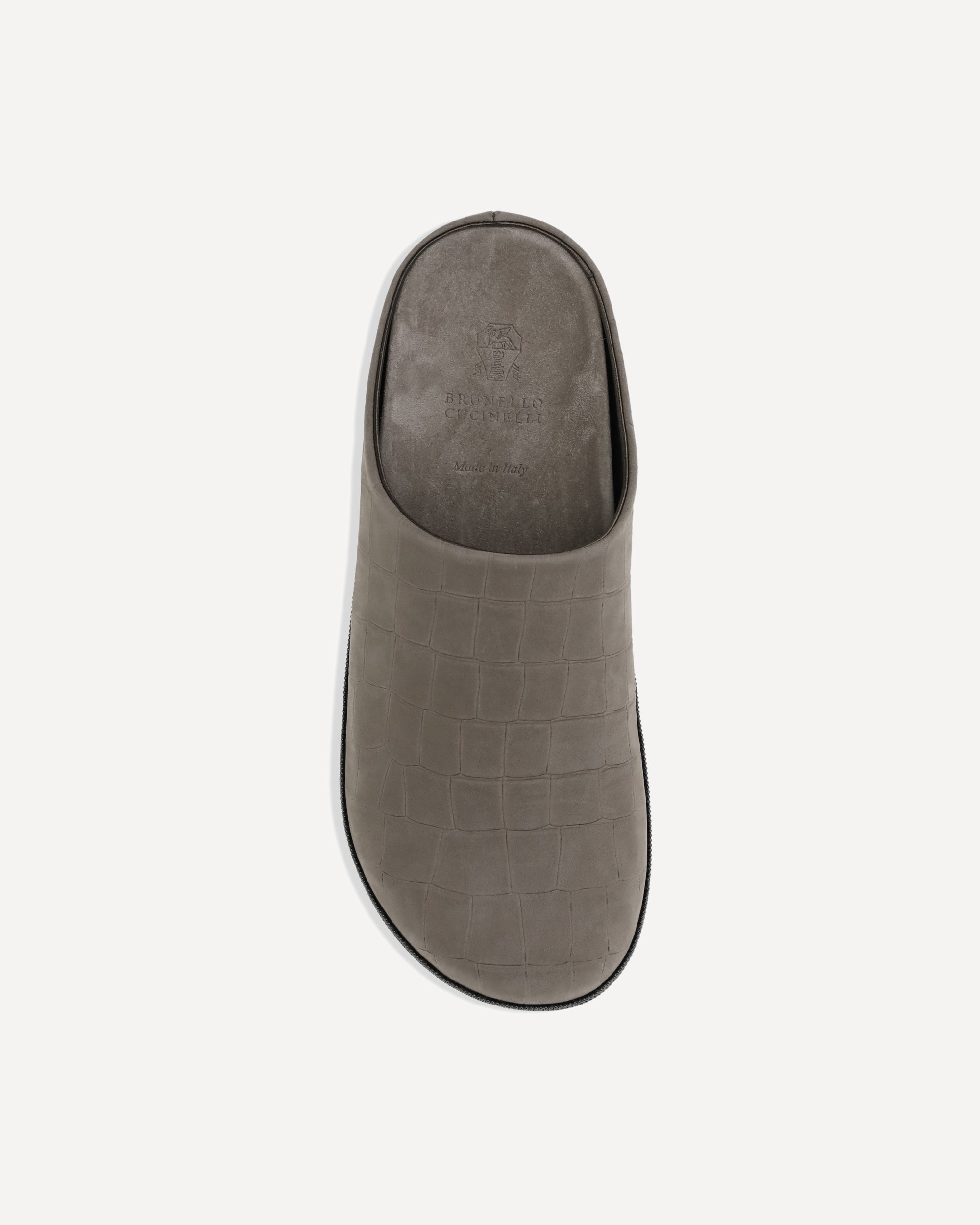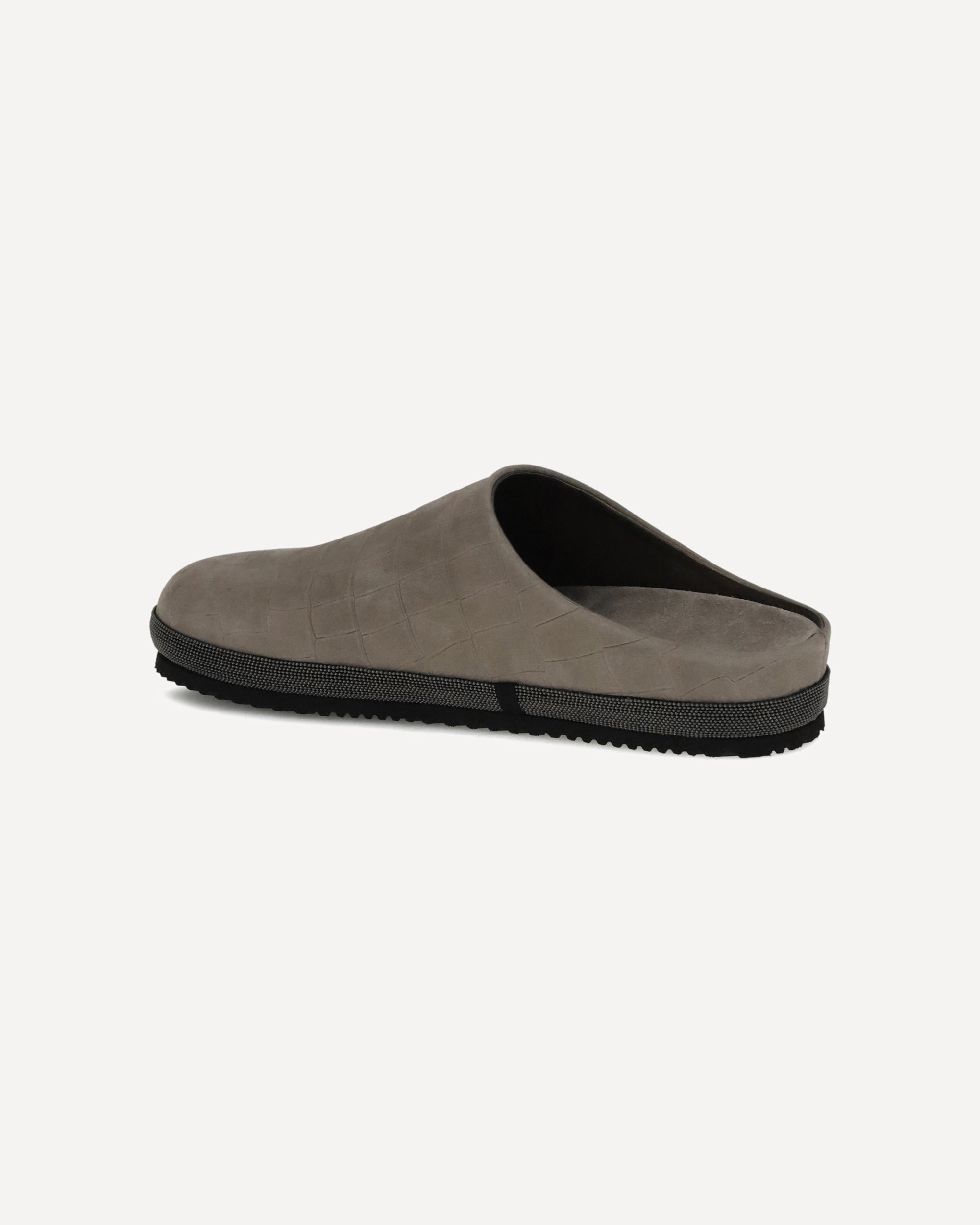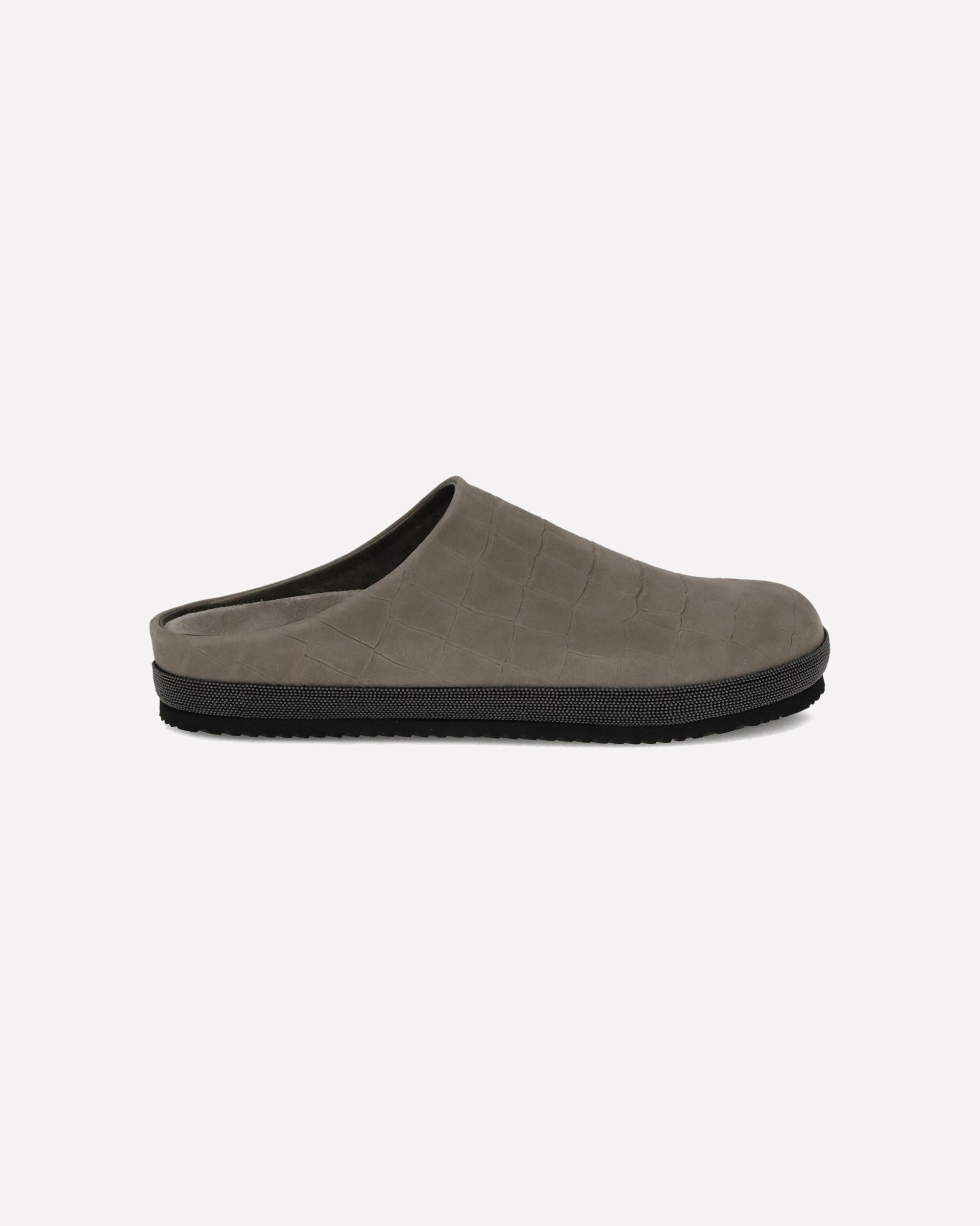 Brunello Cucinelli's leather Mules express understated elegance and careful craftsmanship. Featuring a refined croc-effect design, they have a rounded toe and a flat sole designed for maximum comfort. The distinctive touch is provided by the inserts of iconic shiny jewels along the profiles, which illuminate the silhouette with understated sophistication.