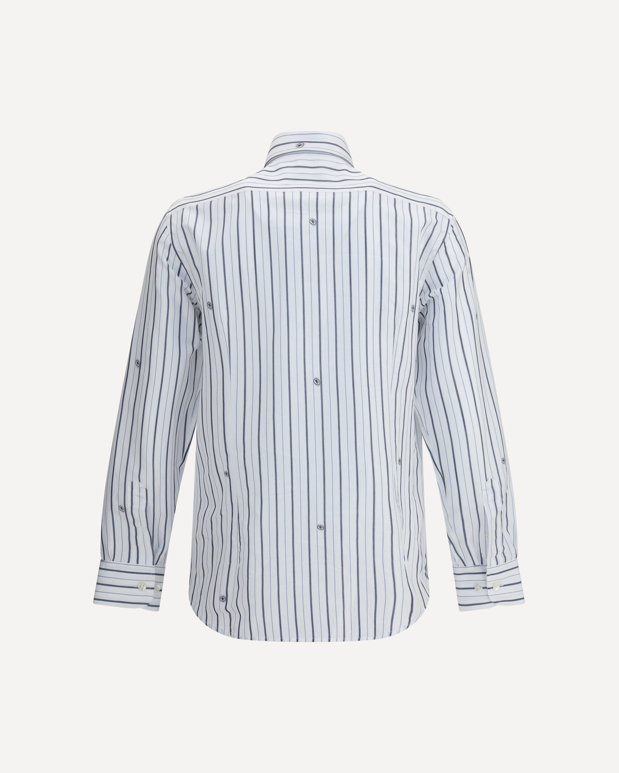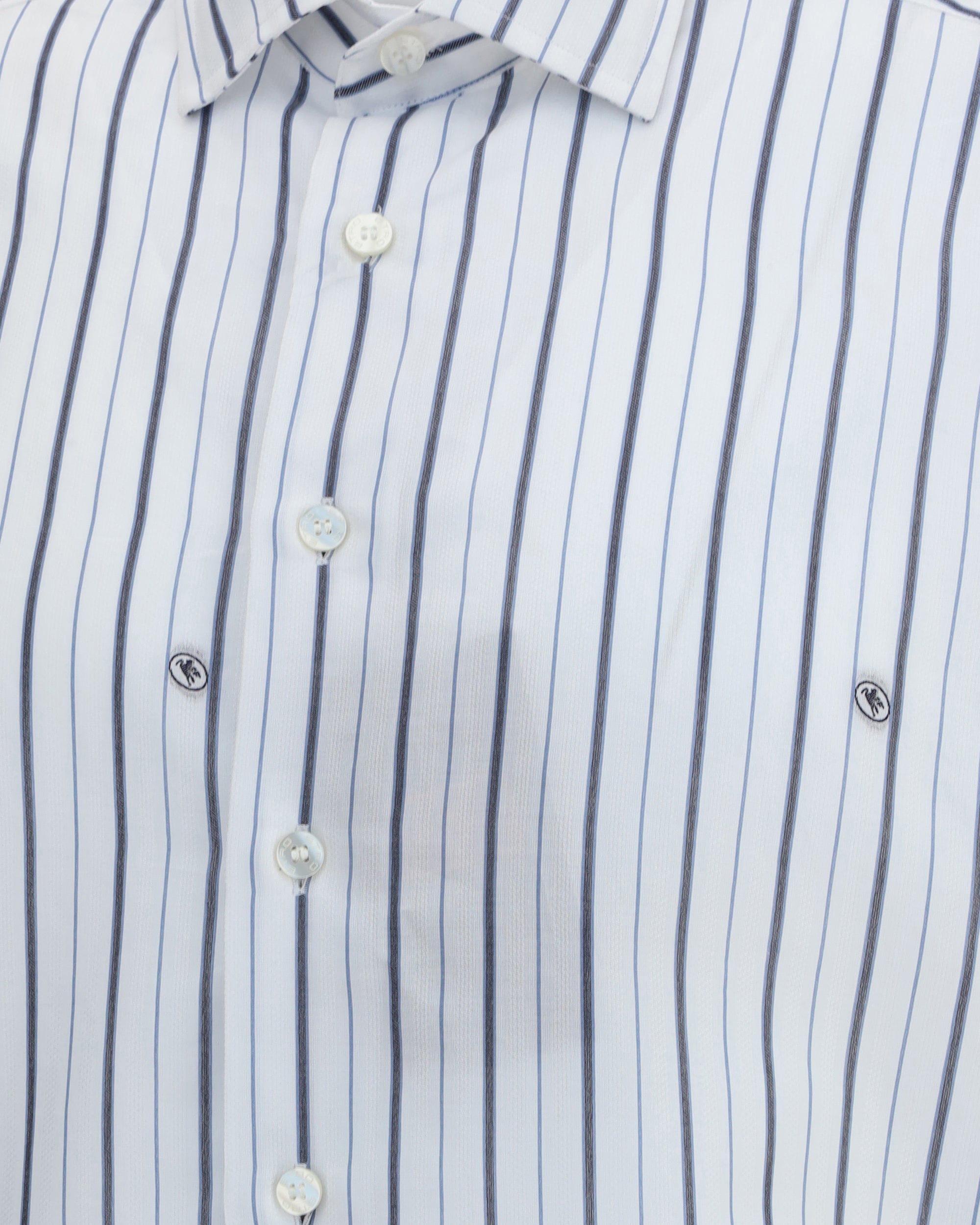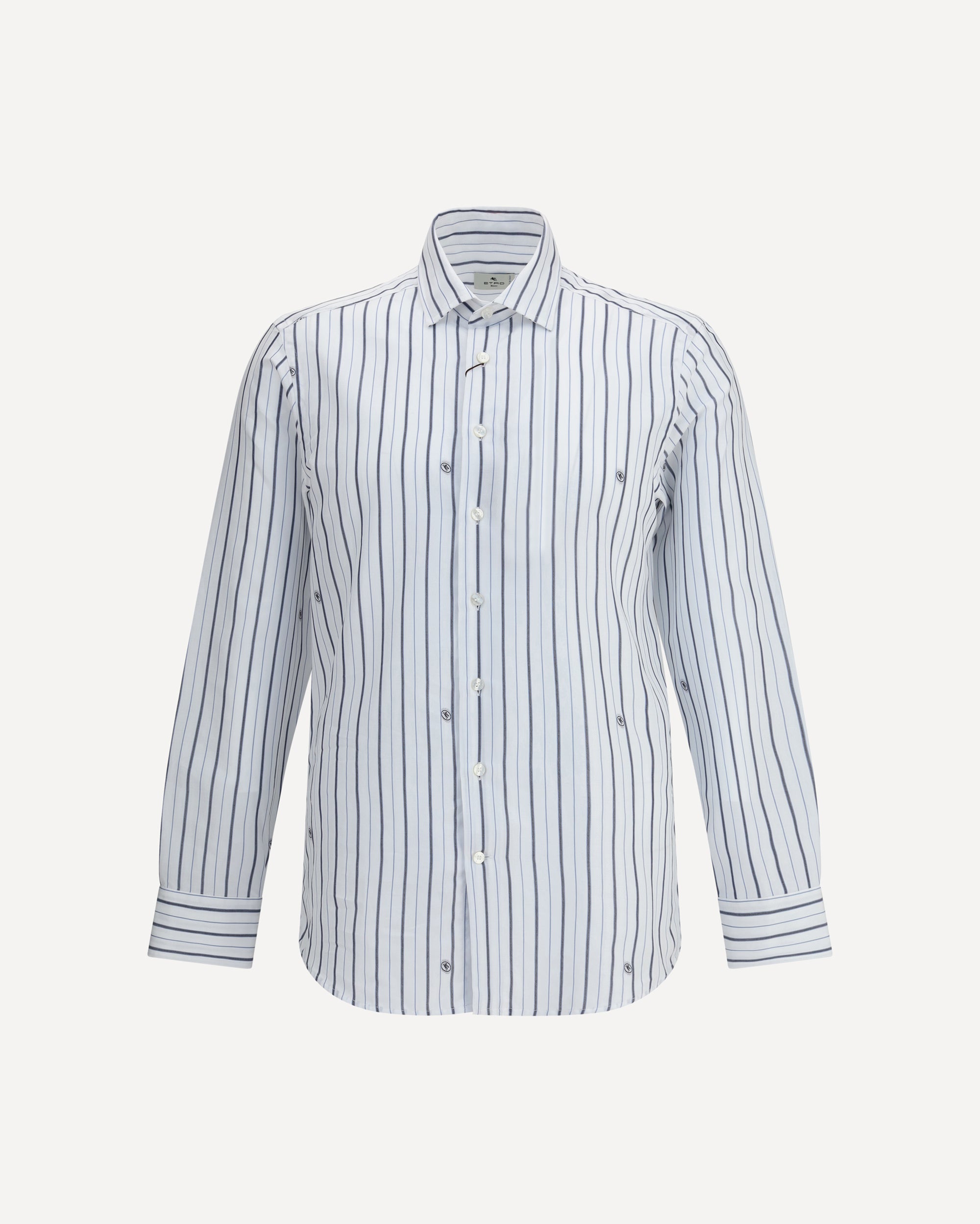 Etro's striped Shirt is made of jacquard cotton and features a striped pattern embellished with a micro Pegasus, the brand's iconic symbol. With a regular fit, it features a pointed collar, button closure and double-button cuffs, combining elegance and practicality in a refined garment.