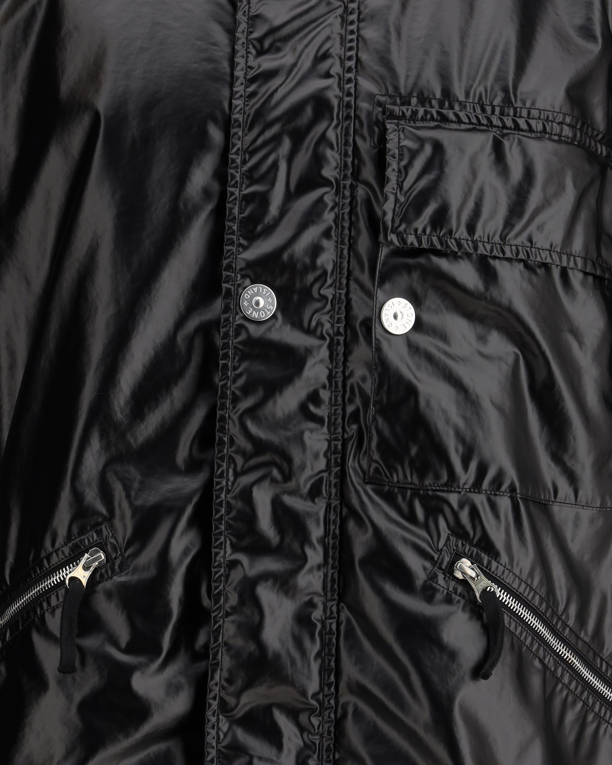 Stone Island's signature cotton hooded Jacket combines functionality and urban style with the brand's unmistakable aesthetic. Made of waterproof technical cotton, it features an adjustable hood with drawstring, front closure with double-slider zipper and buttoned flap. The design is enhanced by two zippered welt pockets on the front and a flap patch pocket, perfect for storing essentials. The cuffs are adjustable with buttons for a customized fit. Completing the garment is the iconic Stone Island monogram patch on the left sleeve, a symbol of research and innovation.