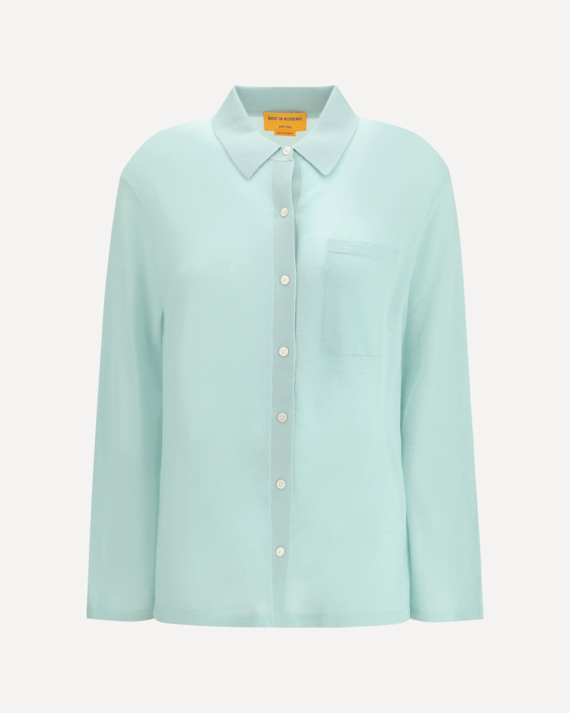 The Showtime Shirt by Guest in Residence is crafted from 100% cashmere, delivering exceptional softness and warmth. Featuring a front button closure and a single chest pocket on the left side, it combines effortless elegance with refined simplicity a versatile piece that elevates any look with understated luxury.