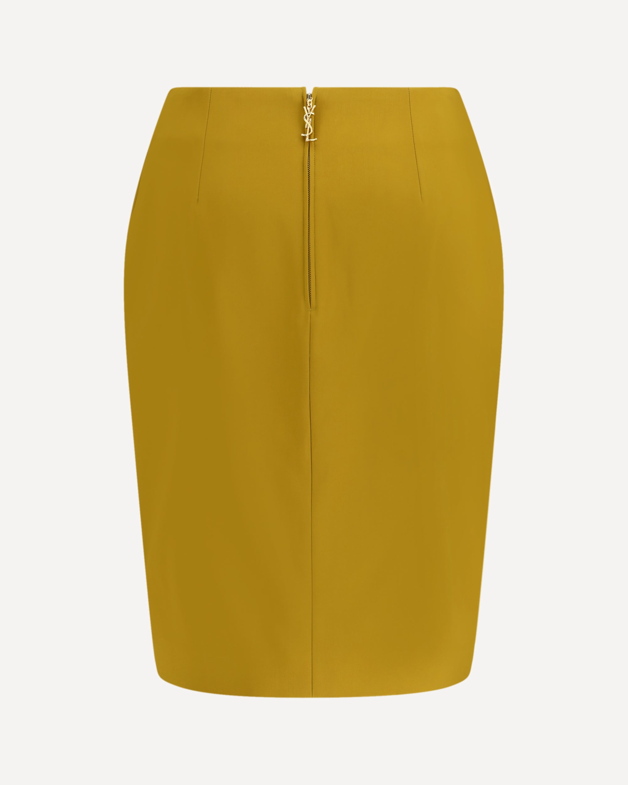 The Satin Pencil Skirt by Saint Laurent is a statement of sleek sophistication. Featuring a high waist and fitted silhouette, it elegantly elongates the figure, while the lustrous satin finish adds depth and texture. Ideal for refined evening occasions or elevated office attire, it blends timeless tailoring with modern allure, showcasing the maison’s mastery of luxurious essentials.
