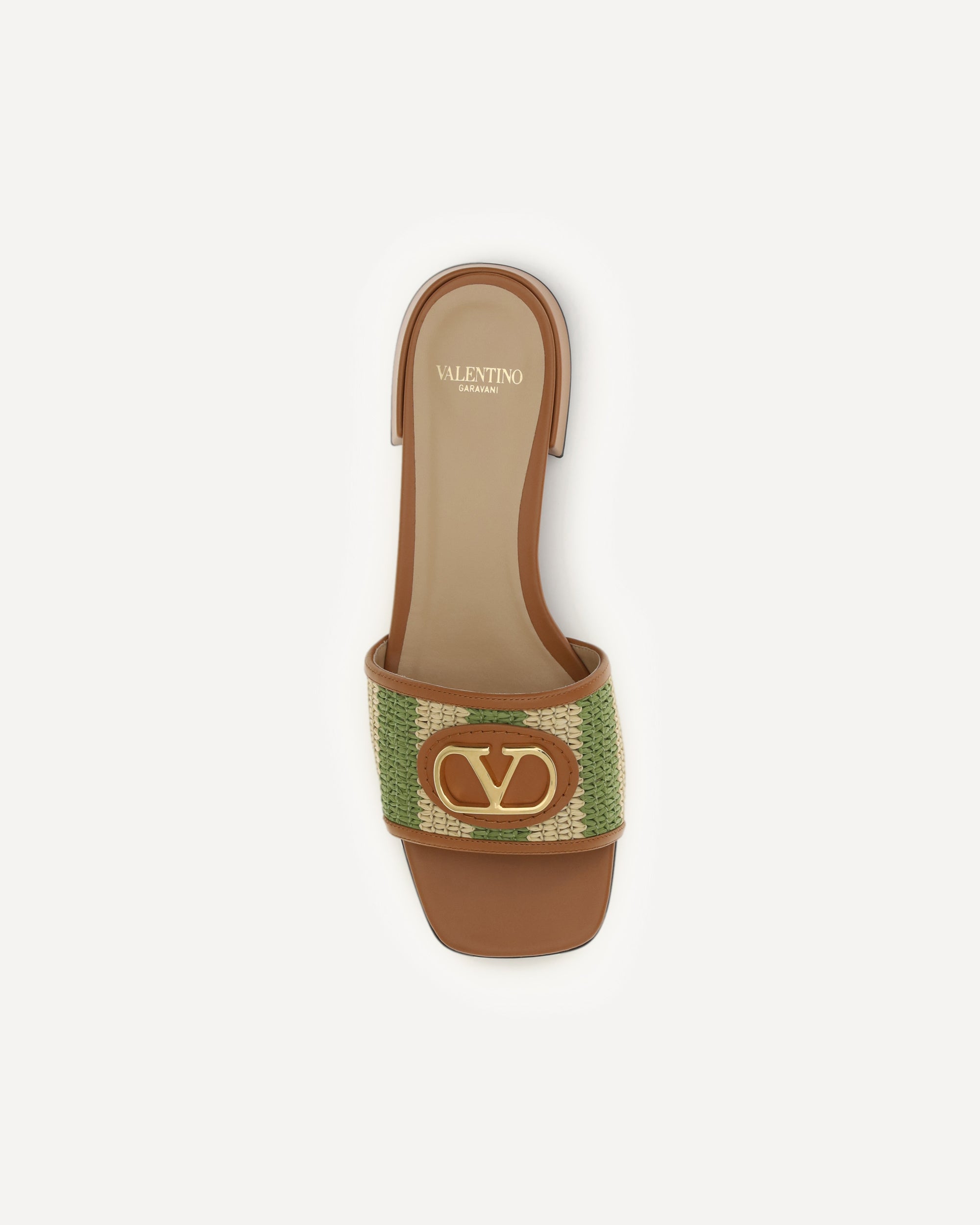VALENTINO GARAVANIVLogo Signature raffia slide Sandals