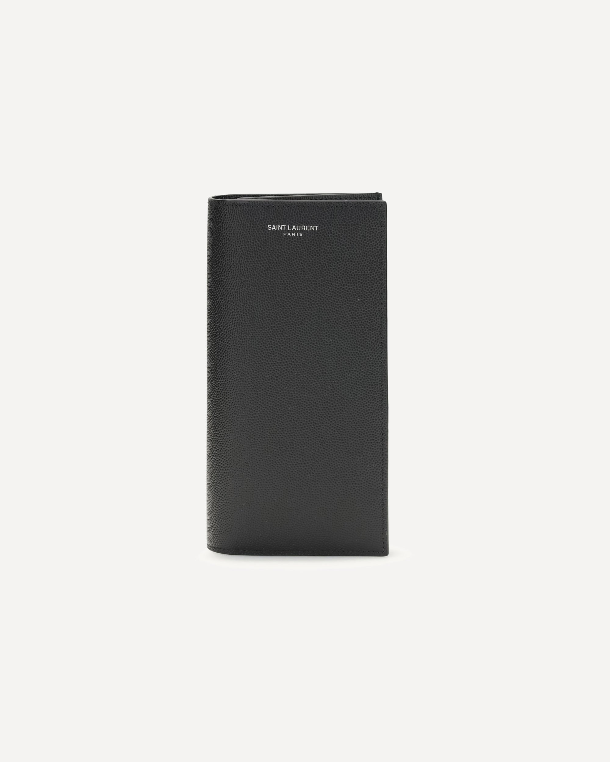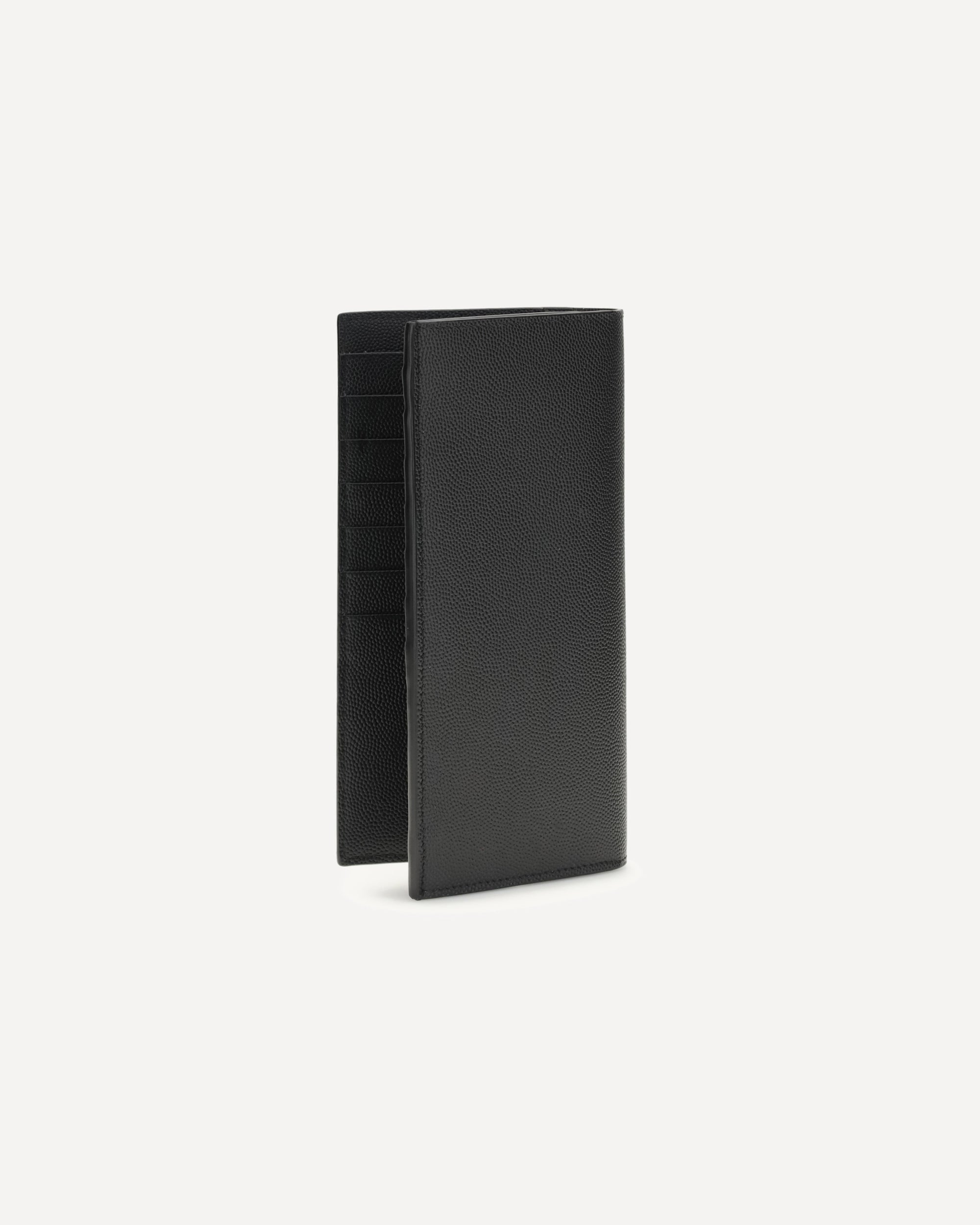 Saint Laurent's grained leather Wallet combines functionality and sophistication in a compact, curated design. Featuring a printed logo laminated on the front, it features a gusseted compartment, three slit pockets, a coin pocket with secure closure and no less than fourteen credit card slots. A stylish and practical accessory perfect for everyday use.