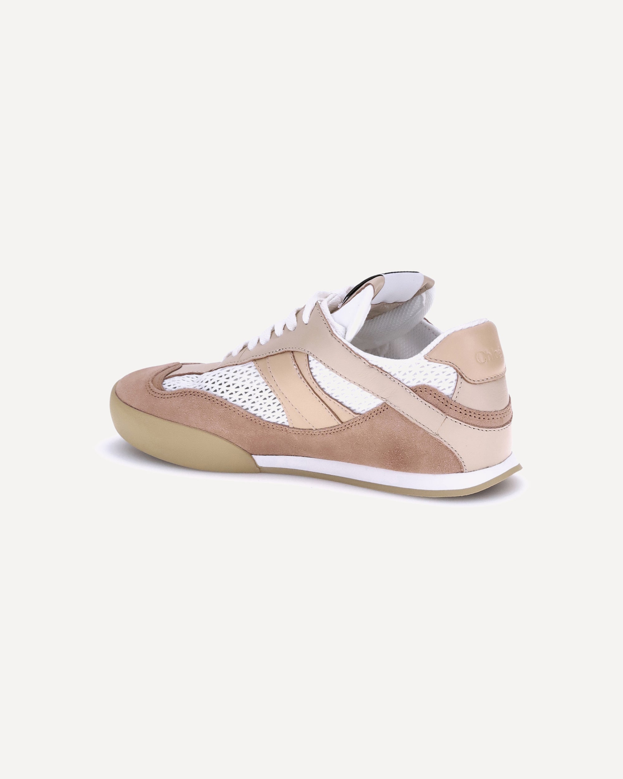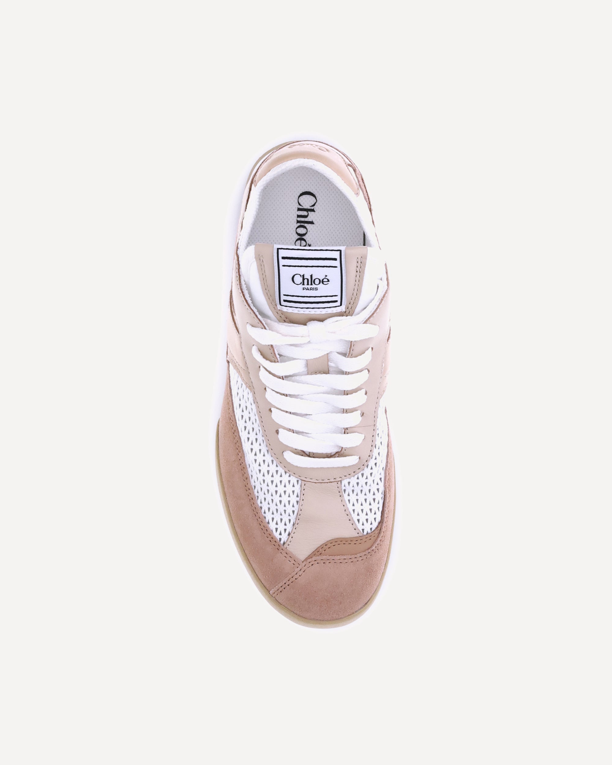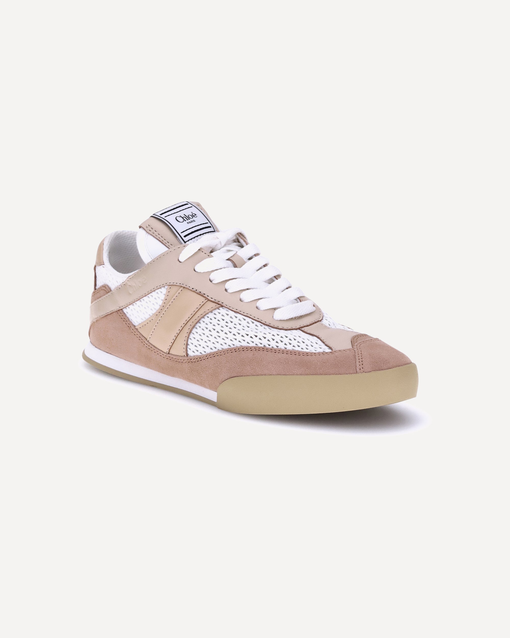 Chloé's Kick Sneakers are a perfect blend of modern style and comfort, ideal for a dynamic, casual-chic look. Made of mesh, smooth leather and suede, these sneakers offer a combination of textures that enrich the design. The iconic logo imprinted on both the side and back adds a distinctive touch, while the lace-up closure ensures a secure and adjustable fit. The logoed label on the padded tongue and logoed insole lend exclusive detail. The flat sole ensures all-day comfort and support. Perfect for a casual yet sophisticated look, these sneakers are a must-have for those seeking elegance and practicality in one design.