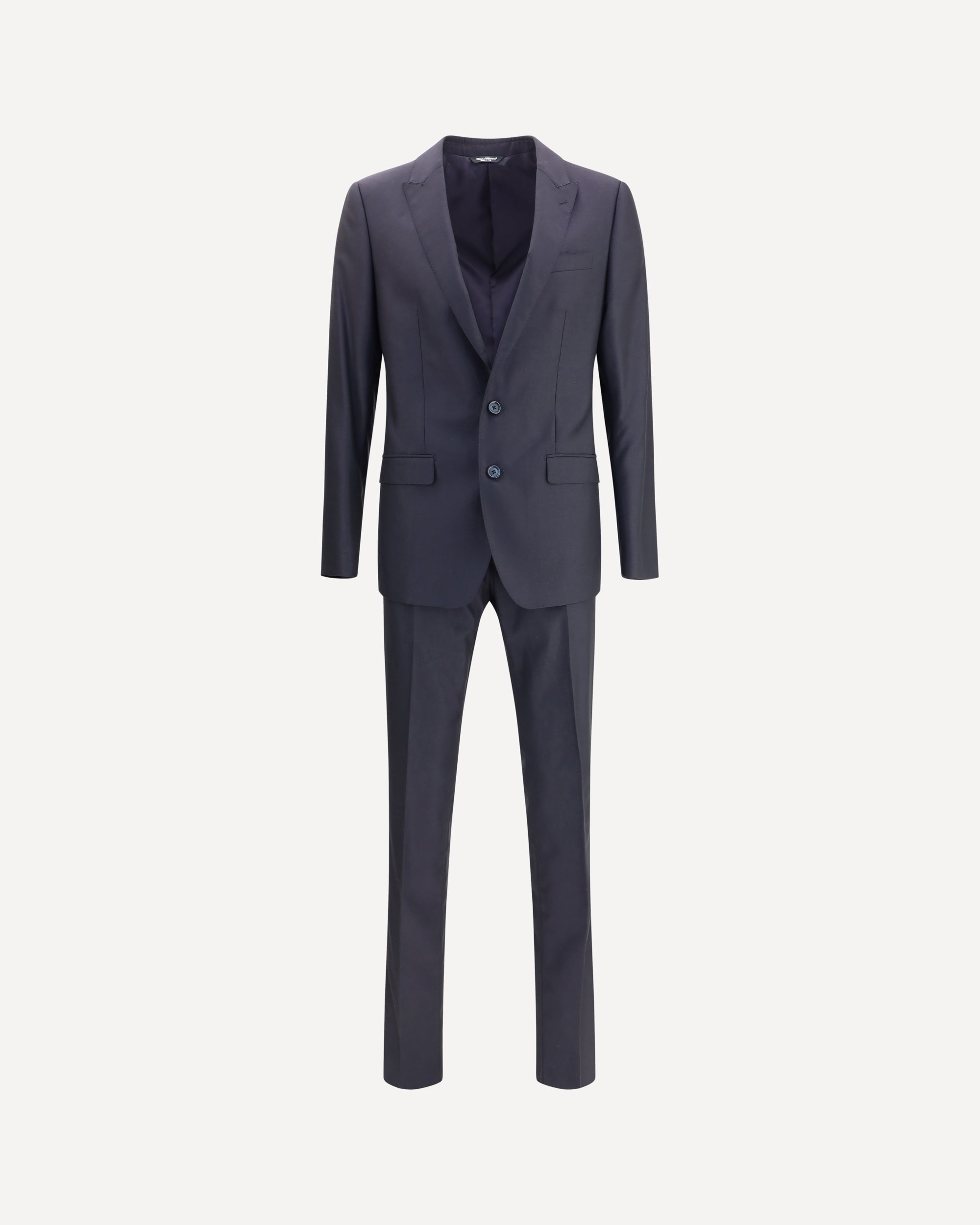 Dolce&Gabbana's virgin wool-silk blend suit is an elegant piece with a tailored fit. The jacket features peak lapels, welt chest pocket, front button closure and two flap pockets. The sleeves are long and there is a welt pocket on the inside. The pants, with an ironed crease and tapered leg, have belt loops at the waist, a button and concealed zipper closure, as well as a back pocket with a discreet button placket. A refined suit, perfect for formal occasions.