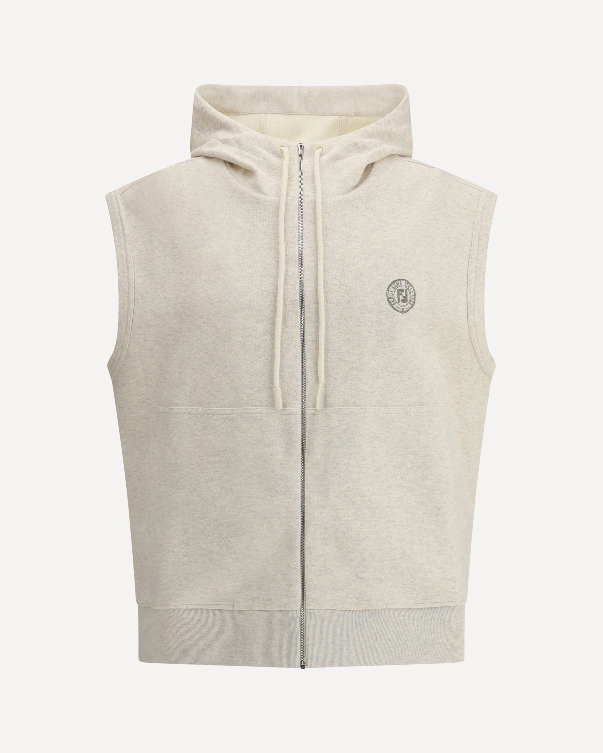 Fendi's Hooded sweatshirt Vest combines comfort and contemporary style. Featuring a front zipper closure, it features the iconic logo printed on the front, two patch pockets and a ribbed hem that complete the functional and stylish design.