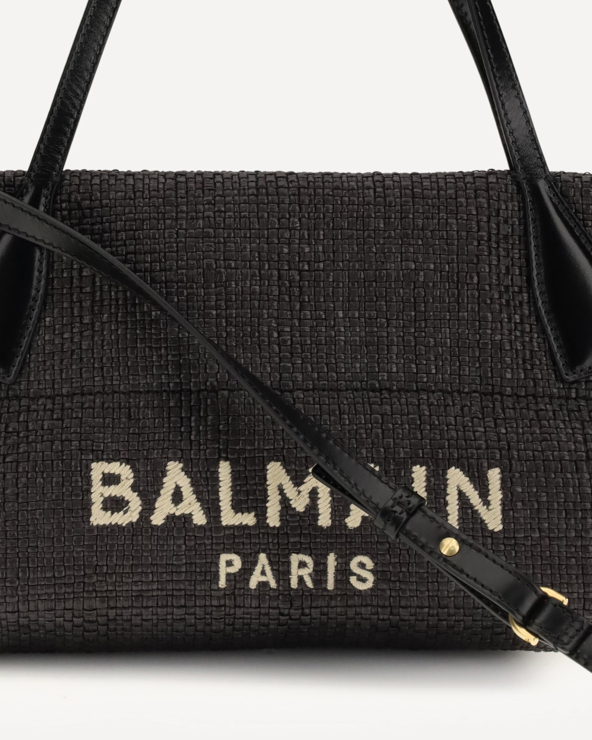 BALMAINCalfskin and Raffia Track Shoulder Bag