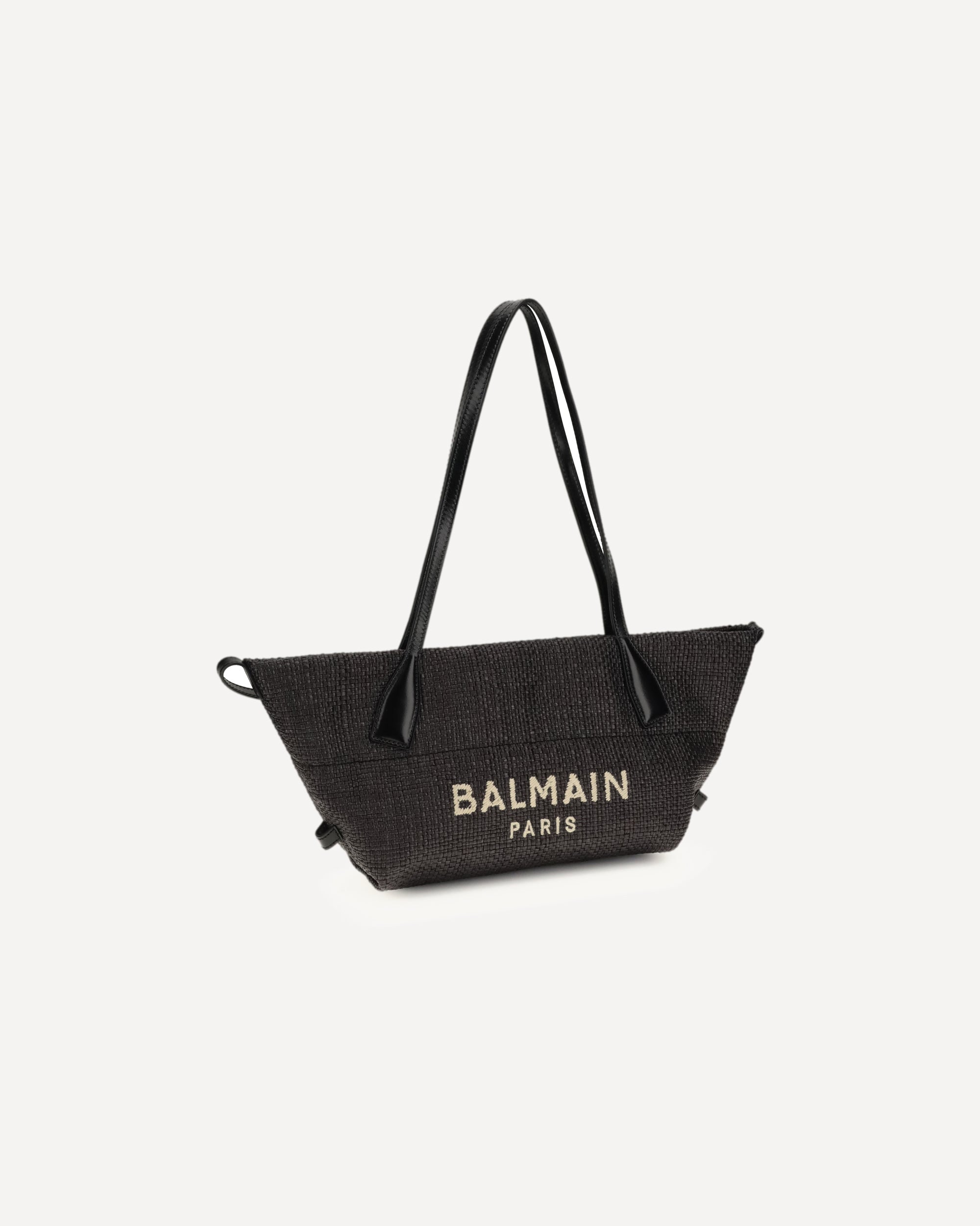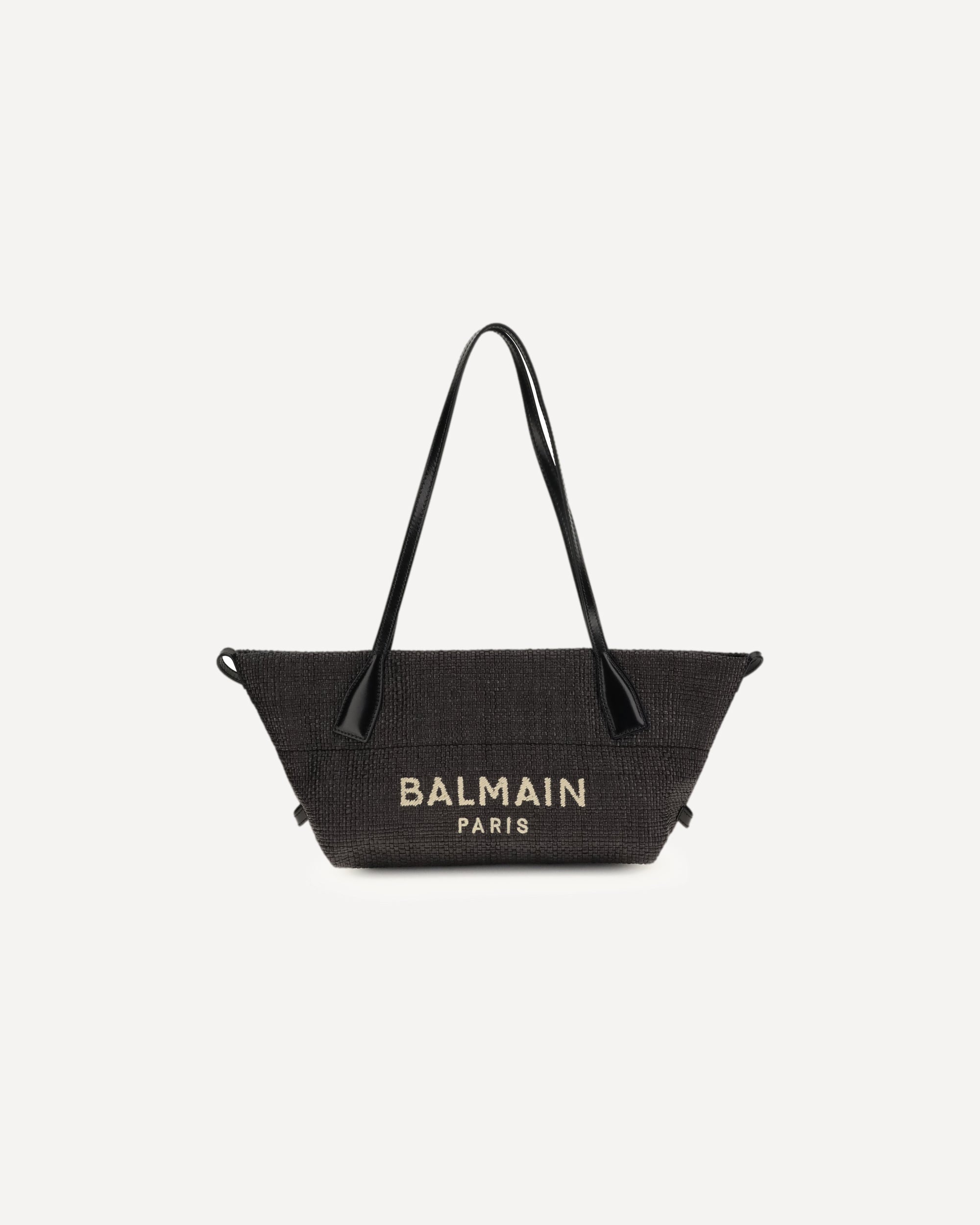 The calfskin and Raffia Track Shoulder Bag by Balmain combines refined materials and versatile design, designed to be carried by hand, shoulder or cross-body depending on the occasion. The leather handles ensure comfort and solidity, while the Balmain Paris logo on the front adds a distinctive and refined touch. An elegant and contemporary accessory, ideal to complete any look with style.