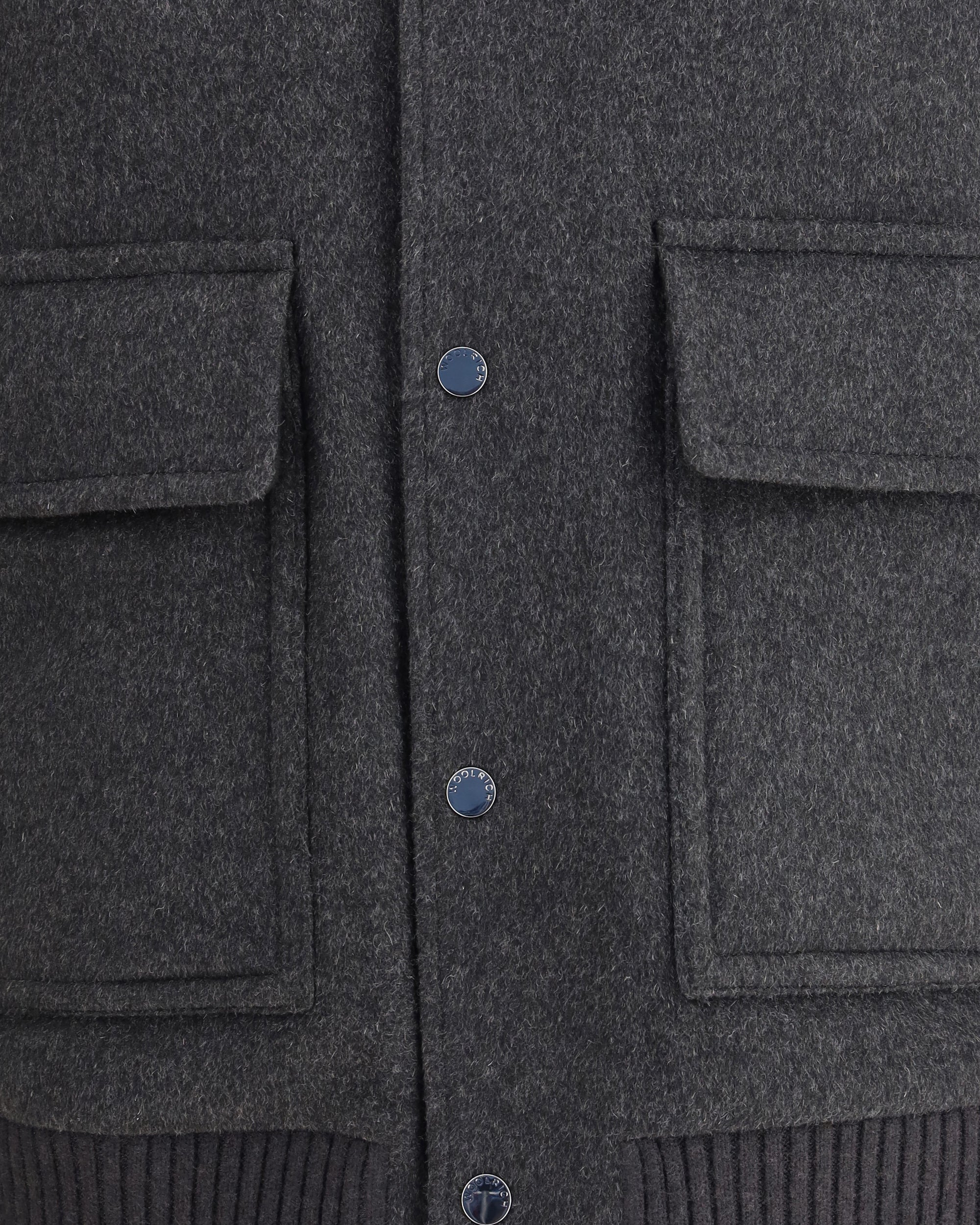 Woolrich's wool bomber Jacket is a perfect balance of classic style and modern functionality. Featuring a ribbed collar and a front snap closure, it has cuffs and hem that are also ribbed for a snug fit. Two patch pockets on the front with flaps complete the design, offering practicality without sacrificing elegance.