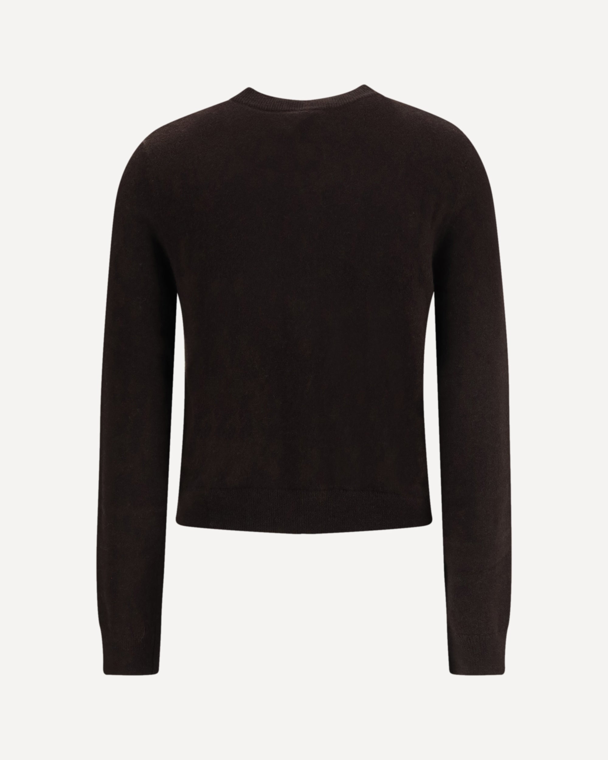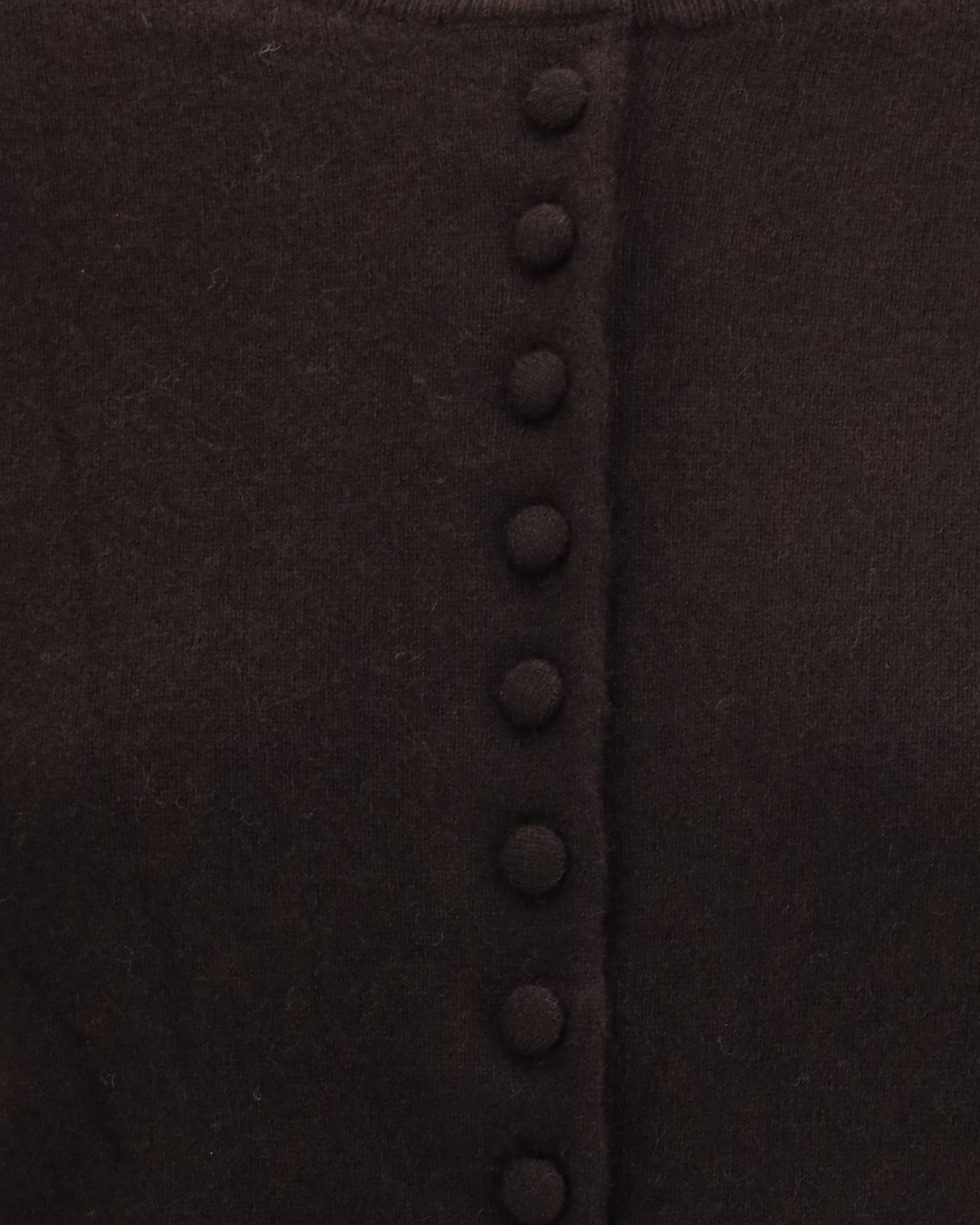 The Wilona Cardigan by Lisa Yang embodies refined simplicity through its mid-weight, plain-knit cashmere that enhances the close, feminine silhouette. Designed to sit at hip length, it features a clean round neckline, full-length sleeves, and tonal cashmere-covered buttons that add a subtle, polished finish.