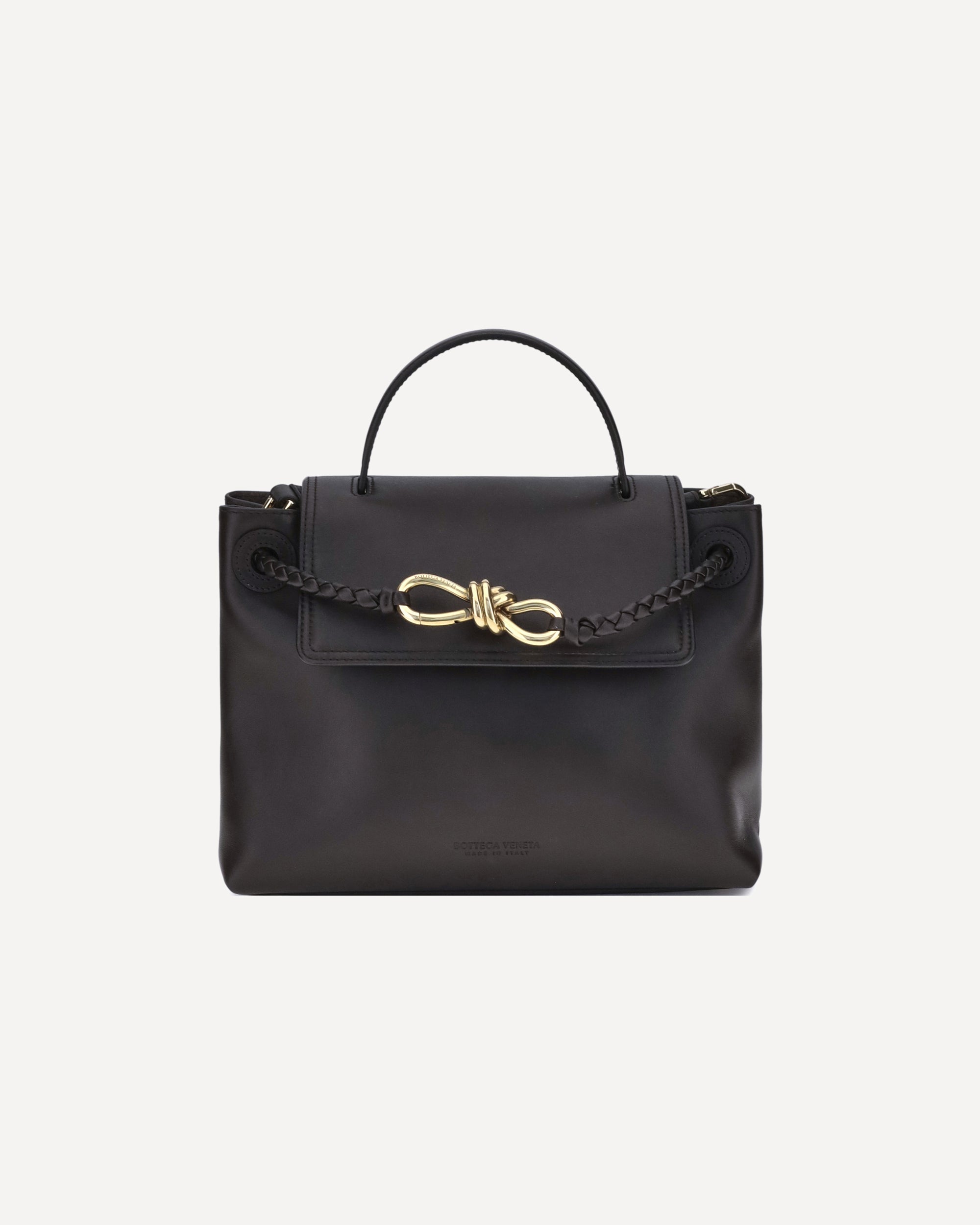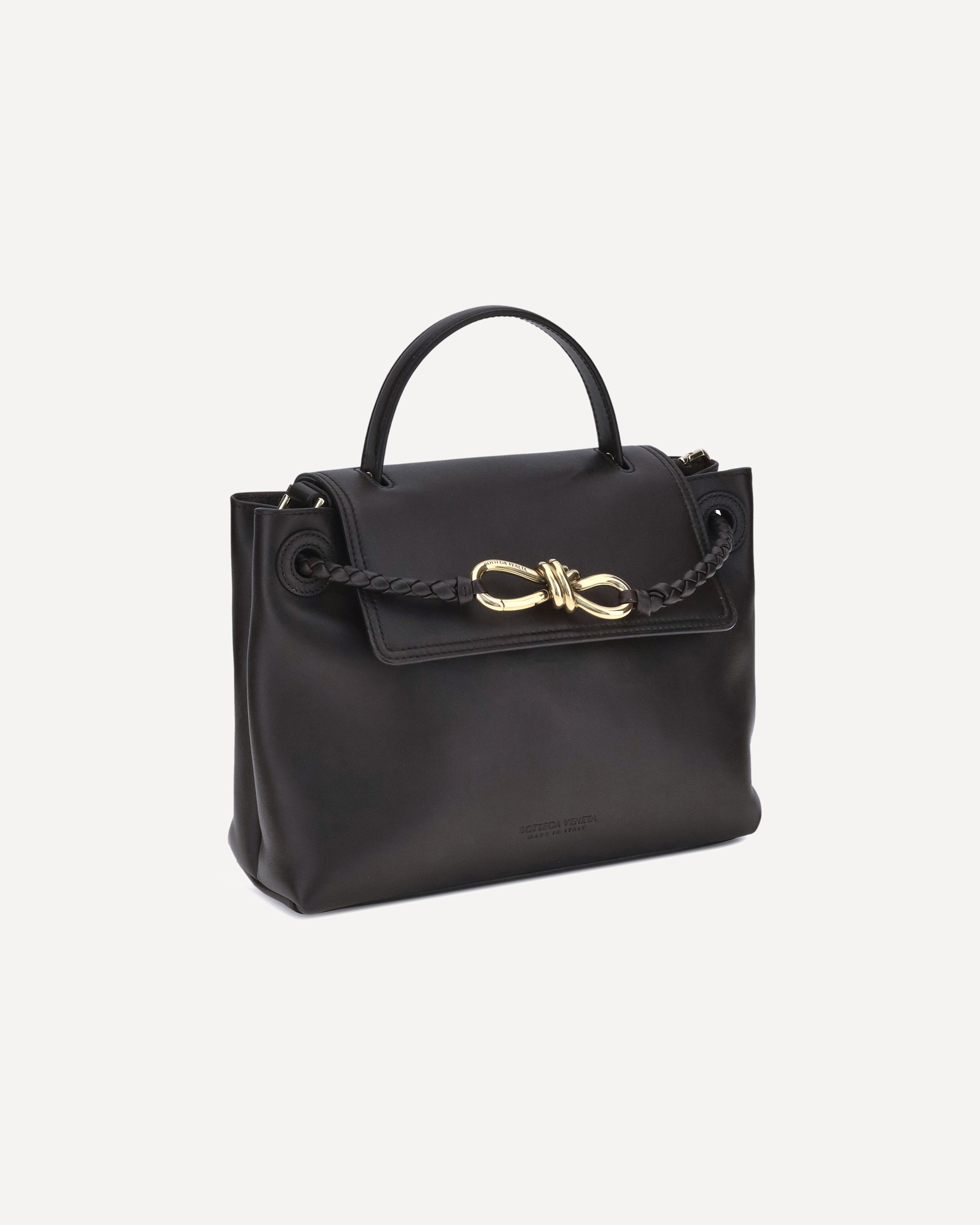 Bottega Veneta's Ciao Ciao Small Handbag is a perfect balance of elegance and innovation. Made of soft calfskin leather, it is distinguished by a reversible flap handle and the emblematic Knot detail. The hook-and-eye closure allows you to customize the look by attaching the flap to the front or inside, where the refined Intrecciato pattern is revealed. An adjustable, removable shoulder strap and an interior compartment with a zipper pocket complete the design.