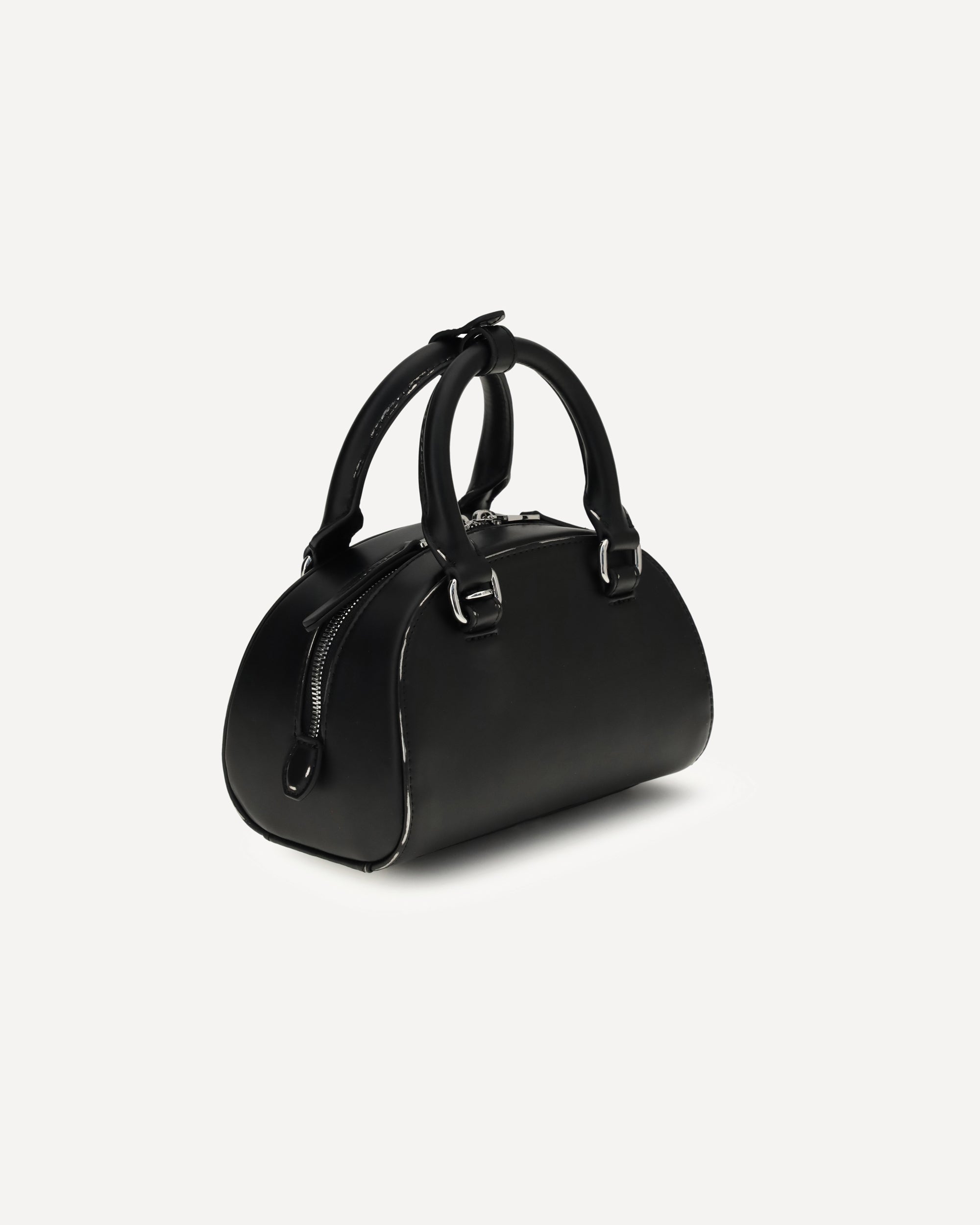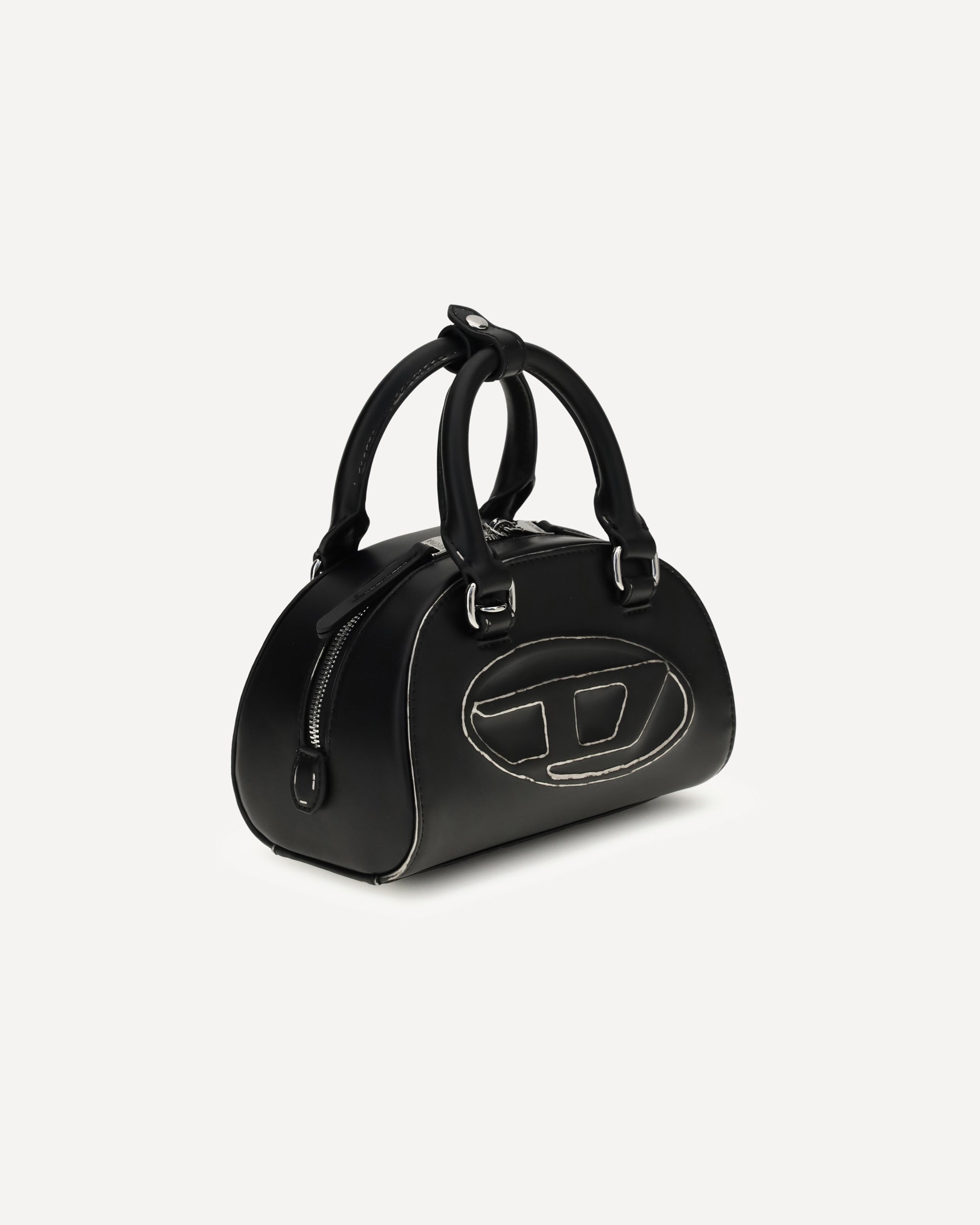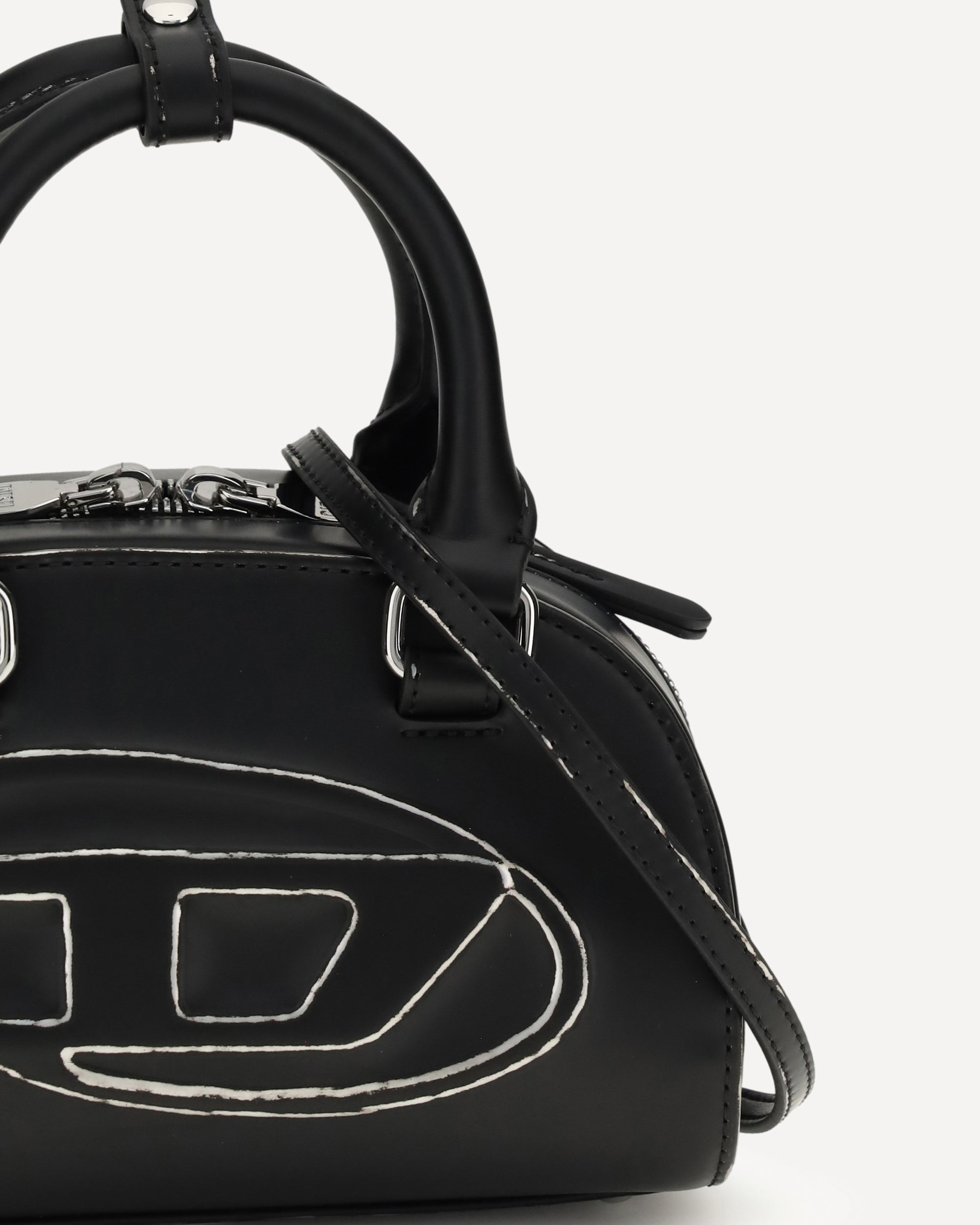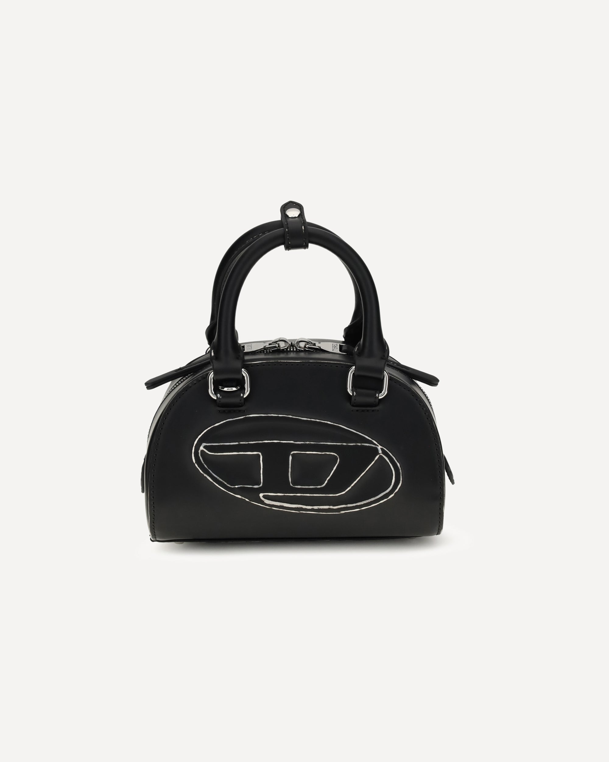 The 1DR Dome Handbag by Diesel is made of smooth leather and features a laminated D print on the front, the brand's iconic symbol. Featuring two round handles and an adjustable and removable tonal leather shoulder strap, it offers versatility and style. The zippered closure houses a lined interior with a practical zippered pocket, while metal feet at the base protect the frame and complete the refined, modern design.