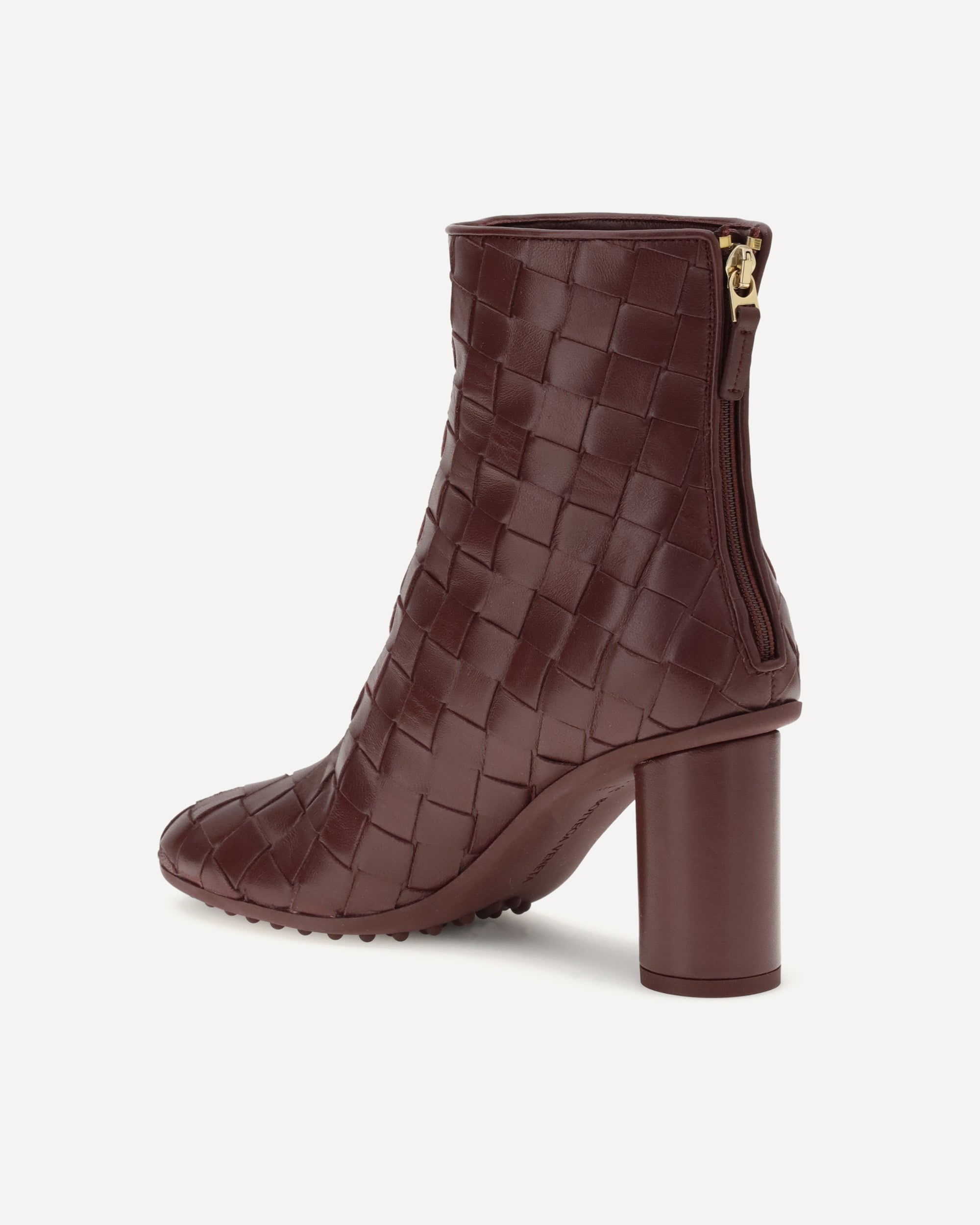 Bottega Veneta's Atomic leather Ankle Boots are a perfect blend of craftsmanship and contemporary design. Featuring the brand's iconic all-over weave, they feature a back zipper closure for a comfortable and secure fit. The circular geometric heel lends a touch of originality, while the non-slip organic rubber sole ensures stability and sustainability. A distinctive and functional model, ideal for those seeking style and comfort.