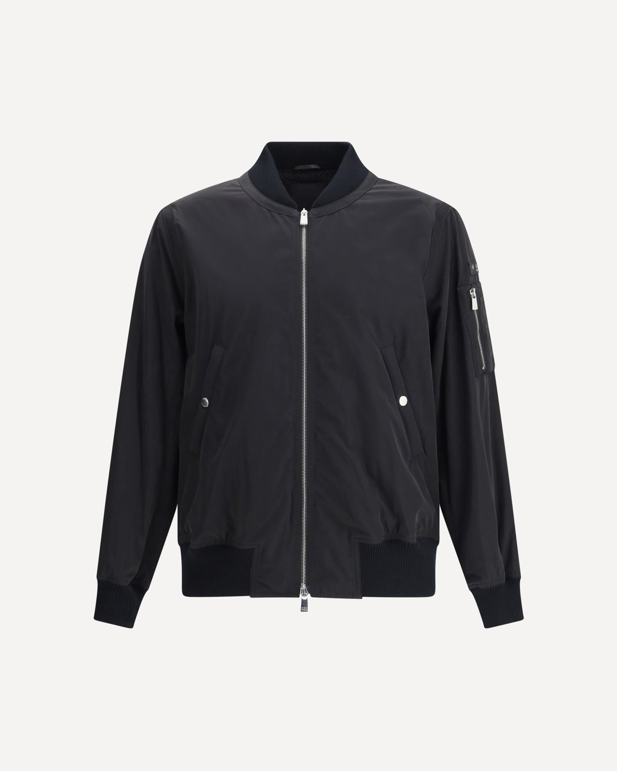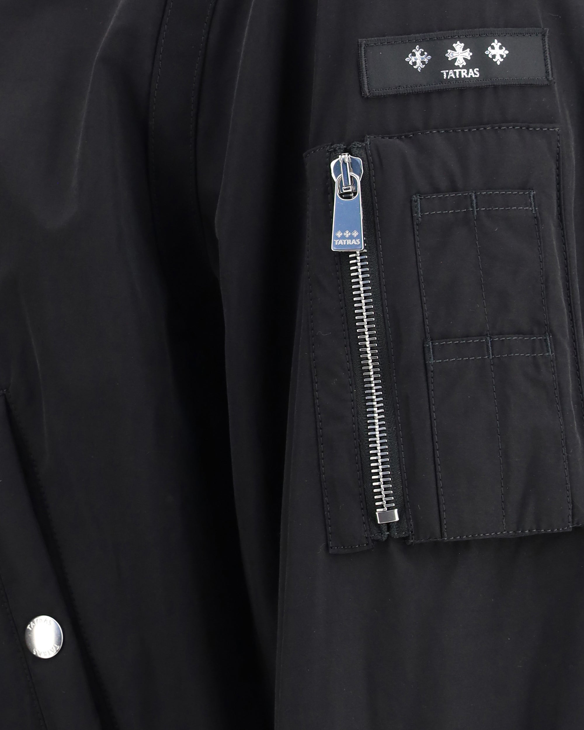 The Bagolaro Jacket by Tatras reimagines the iconic military bomber with refined sartorial details. Contrasting fabric inserts along the seams highlight artisanal craftsmanship, while the lightweight, thermal and breathable technical lining ensures both performance and comfort. Its relaxed fit is designed for effortless wear, enhanced by ribbed cuffs and hem that provide warmth and structure. A double front zipper allows for a customizable silhouette, while the signature “cigar” pocket on the sleeve pays homage to military heritage, reinterpreted with an urban, contemporary edge.