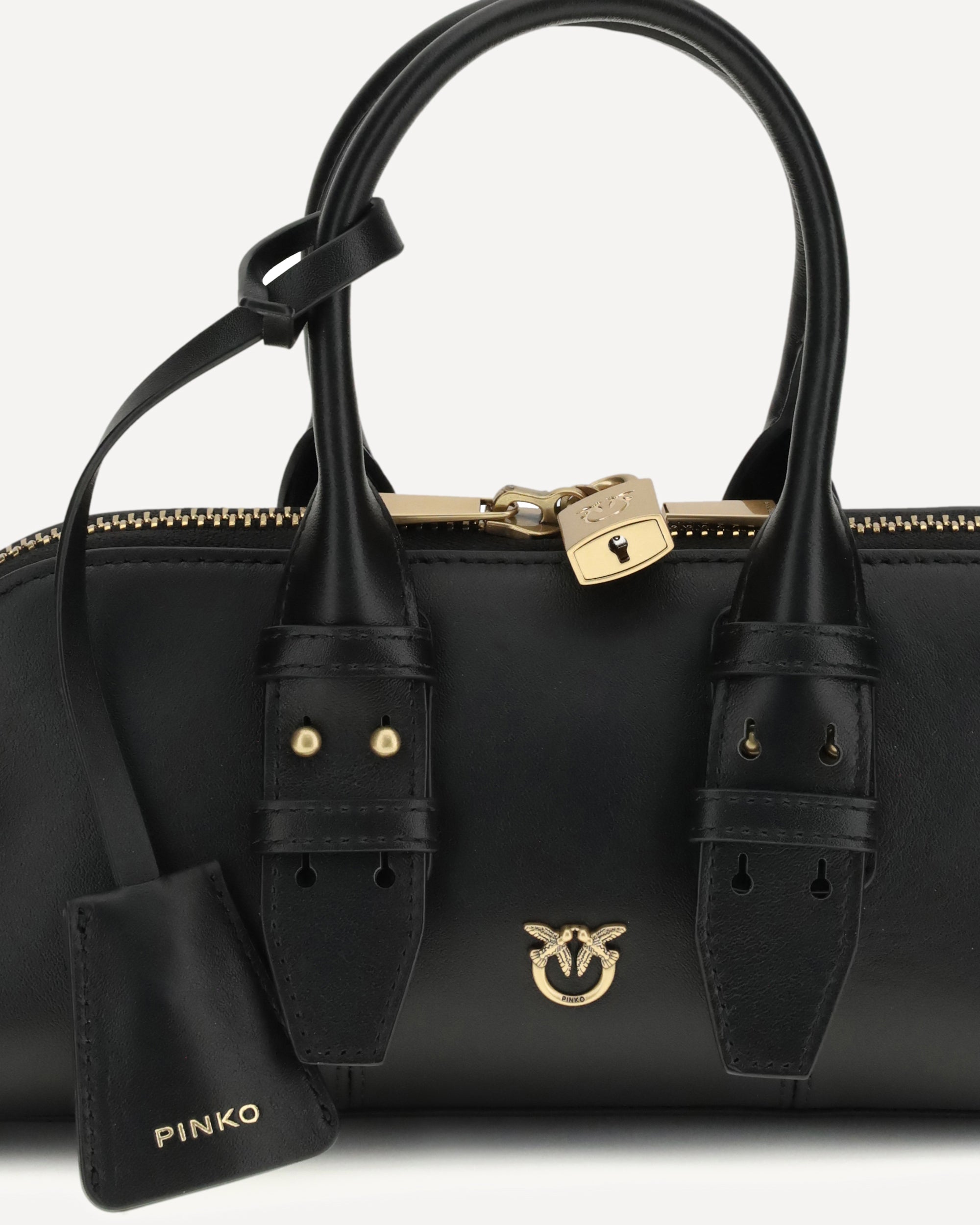 The Escape Baguette Handbag by Pinko is an elegant and functional model, perfect to accompany every moment of the day. Equipped with a top handle and adjustable and removable leather shoulder strap, it can be carried by hand, shoulder or crossbody, offering great versatility. The double-slider zipper closure is embellished with a distinctive detail: a padlock decorated with the iconic Love Birds logo, which can be opened thanks to the key kept in the matching leather charm. A practical and sophisticated accessory with the unmistakable character of Pinko.