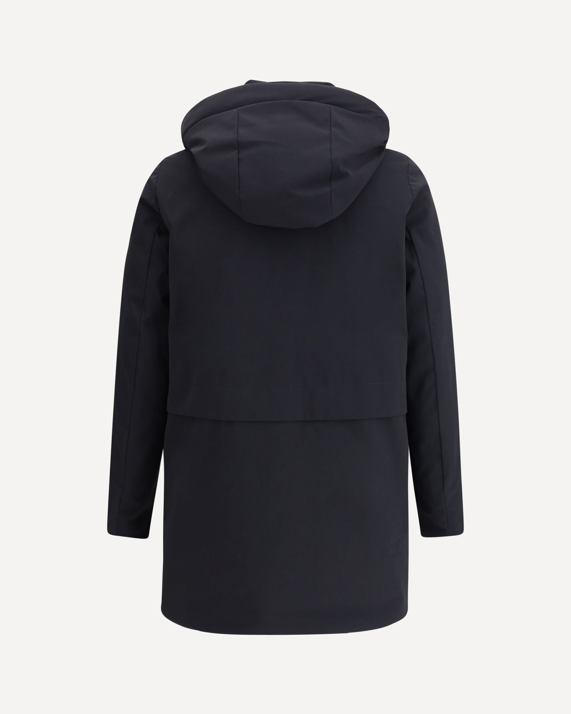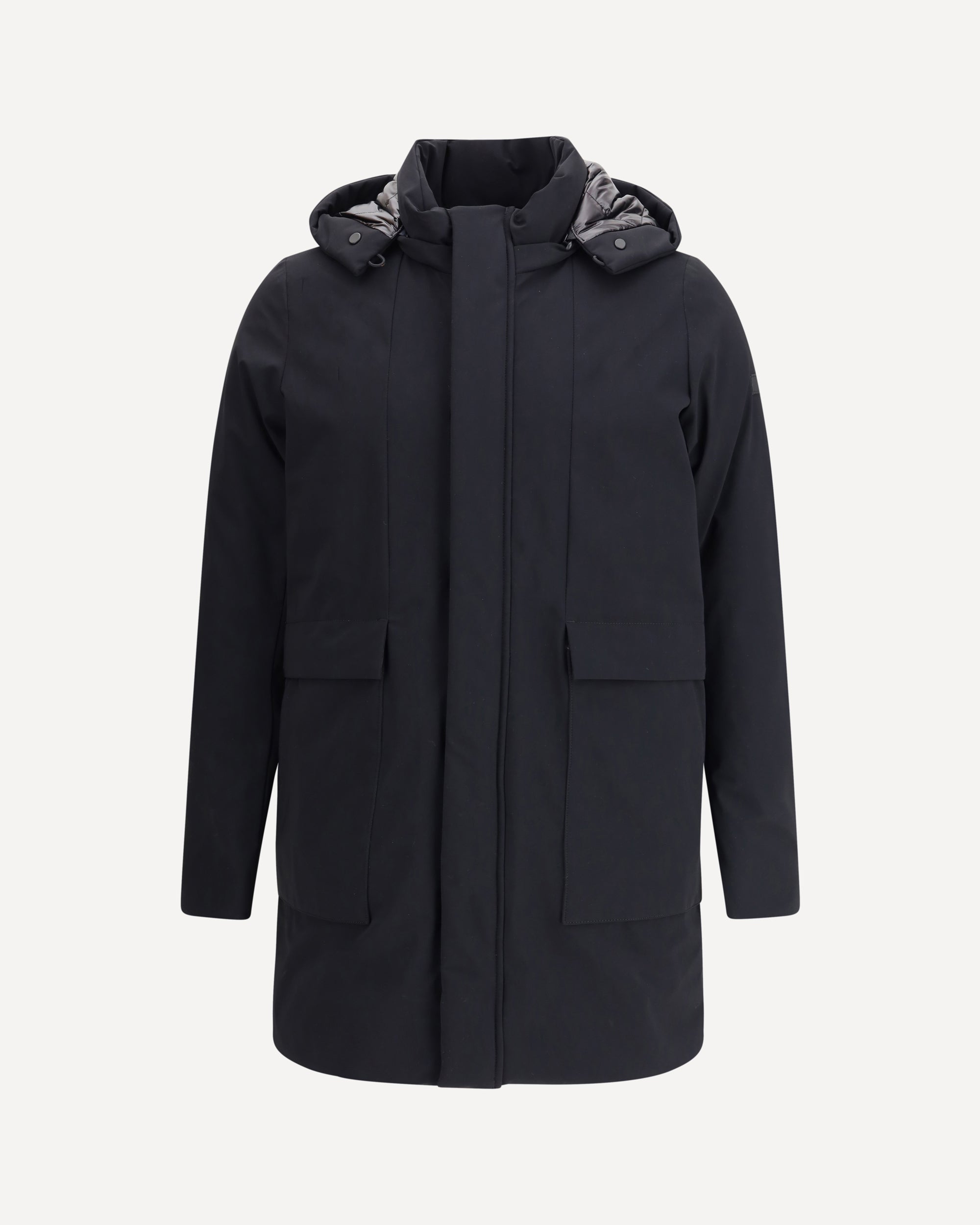 The Calicotome Down Jacket by Tatras is crafted from double-layer jersey, blending refined elegance with a sporty edge. Oversized flap pockets at the waist, lined in soft brushed fabric, provide both functionality and warmth. The relaxed silhouette ensures comfort and ease, while the sculpted detachable hood adds versatility to the design. With quilting placed entirely on the inside, the exterior remains sleek and modern a polished choice for everyday wear.