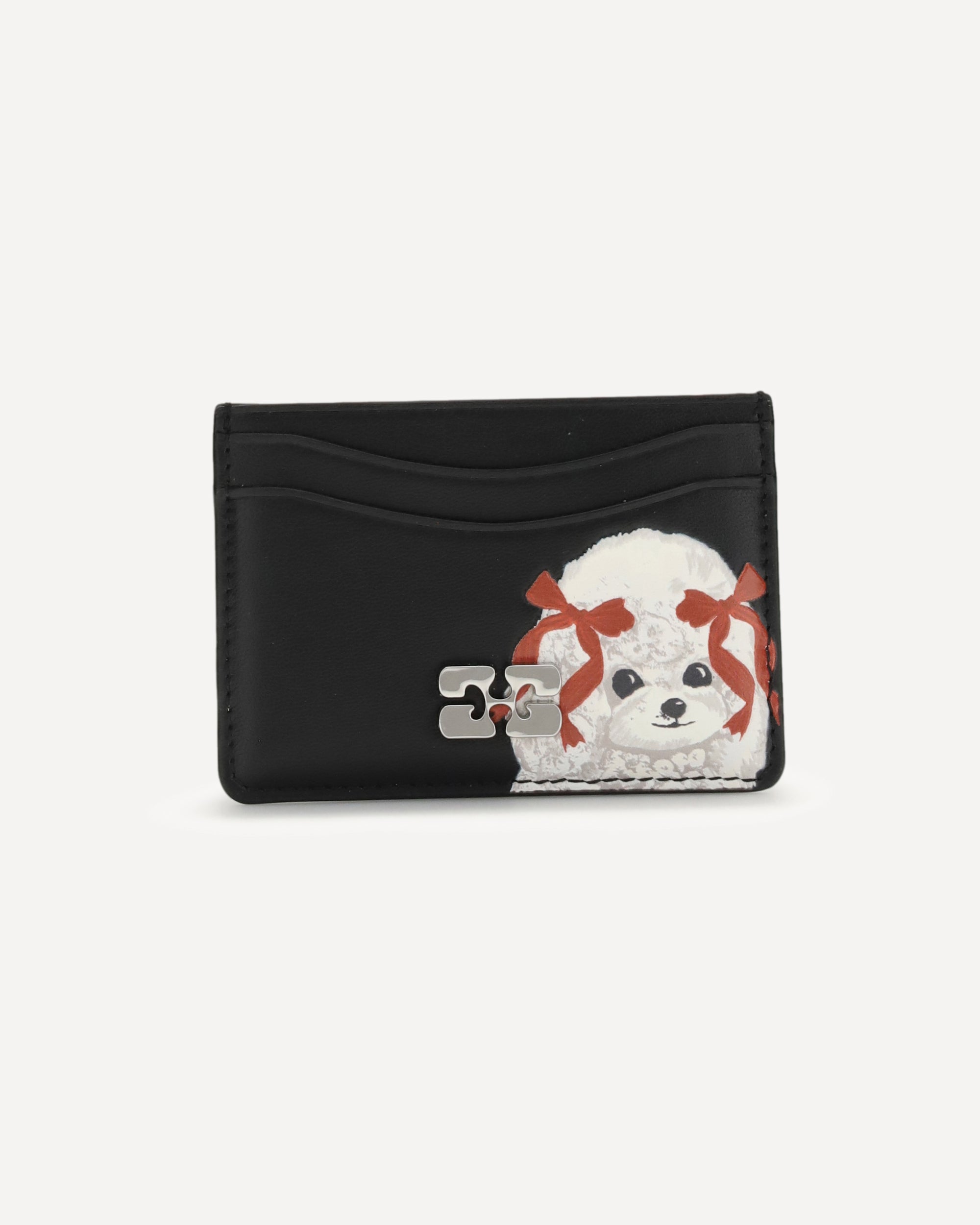 The Bou Card Holder by Ganni combines practicality and style with its graphic poodle print and card compartments. The metallic Butterfly and Ganni logo complete this compact accessory, perfect for adding a distinctive touch to everyday life.