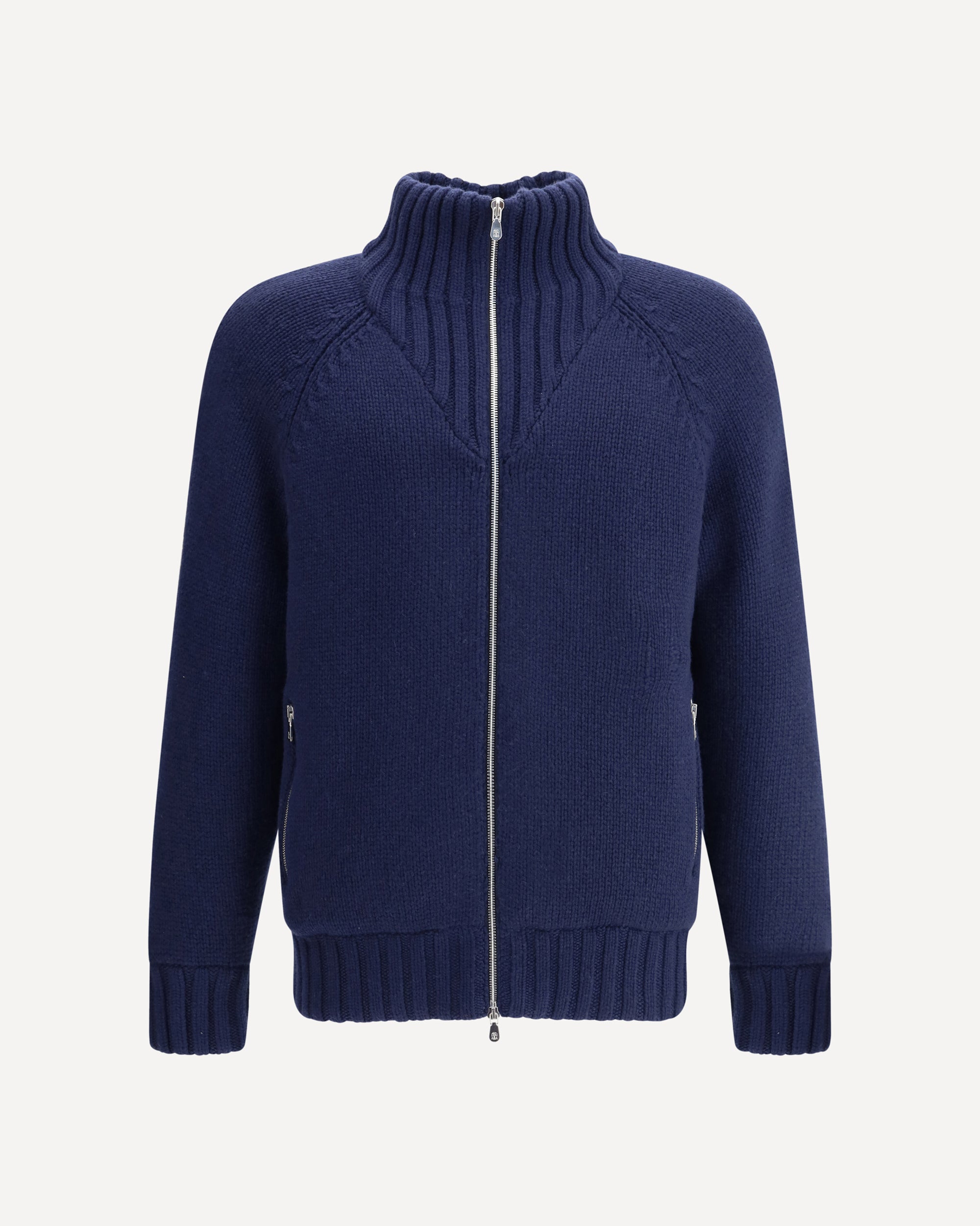 Brunello Cucinelli's Cashmere Jacket is an elegant and comfortable garment made from fine cashmere. The knit design features a high collar that offers warmth and style, while the double-slider front zipper closure ensures practicality and adjustability. The two zippered side welt pockets offer functionality, while the ribbed cuffs and hem provide a snug fit and a touch of sophistication. The quilted interior adds additional comfort and warmth, making this jacket a versatile garment perfect for cooler days.