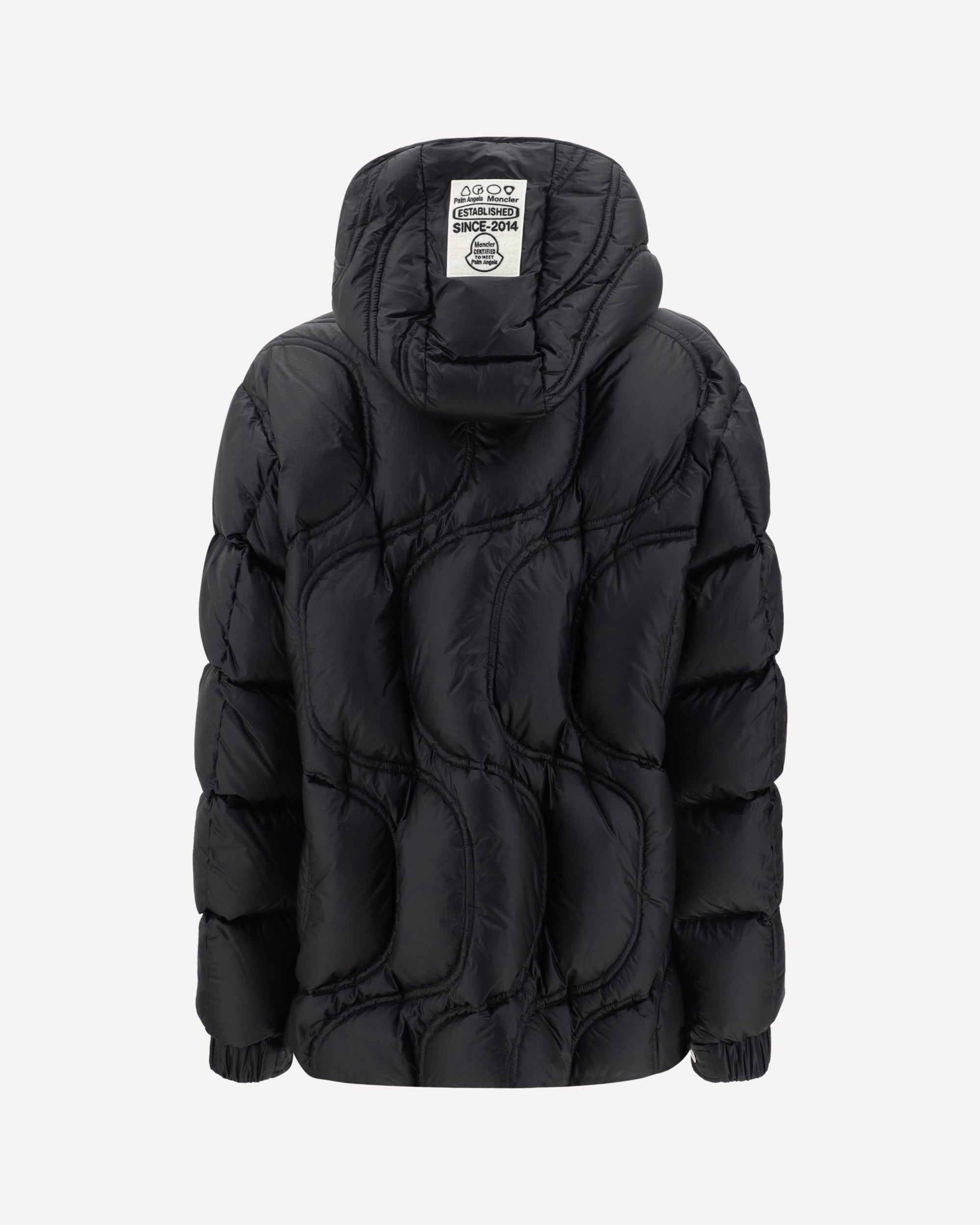 The Cherit Down Jacket by Moncler x Palm Angels is a streetwear-luxury style garment designed to offer both functionality and distinctive design. The adjustable drawstring hood, which can be removable via snaps, adds versatility, allowing the look to be adapted as needed. The front zipper and snap closure provides optimal protection against the cold, while the two zippered welt pockets offer convenience and security for essentials. The patch with the iconic Moncler and Palm Angels logos on the front adds a touch of recognition and a bold style accent. A perfect down jacket for those seeking comfort, quality and a contemporary, urban look.