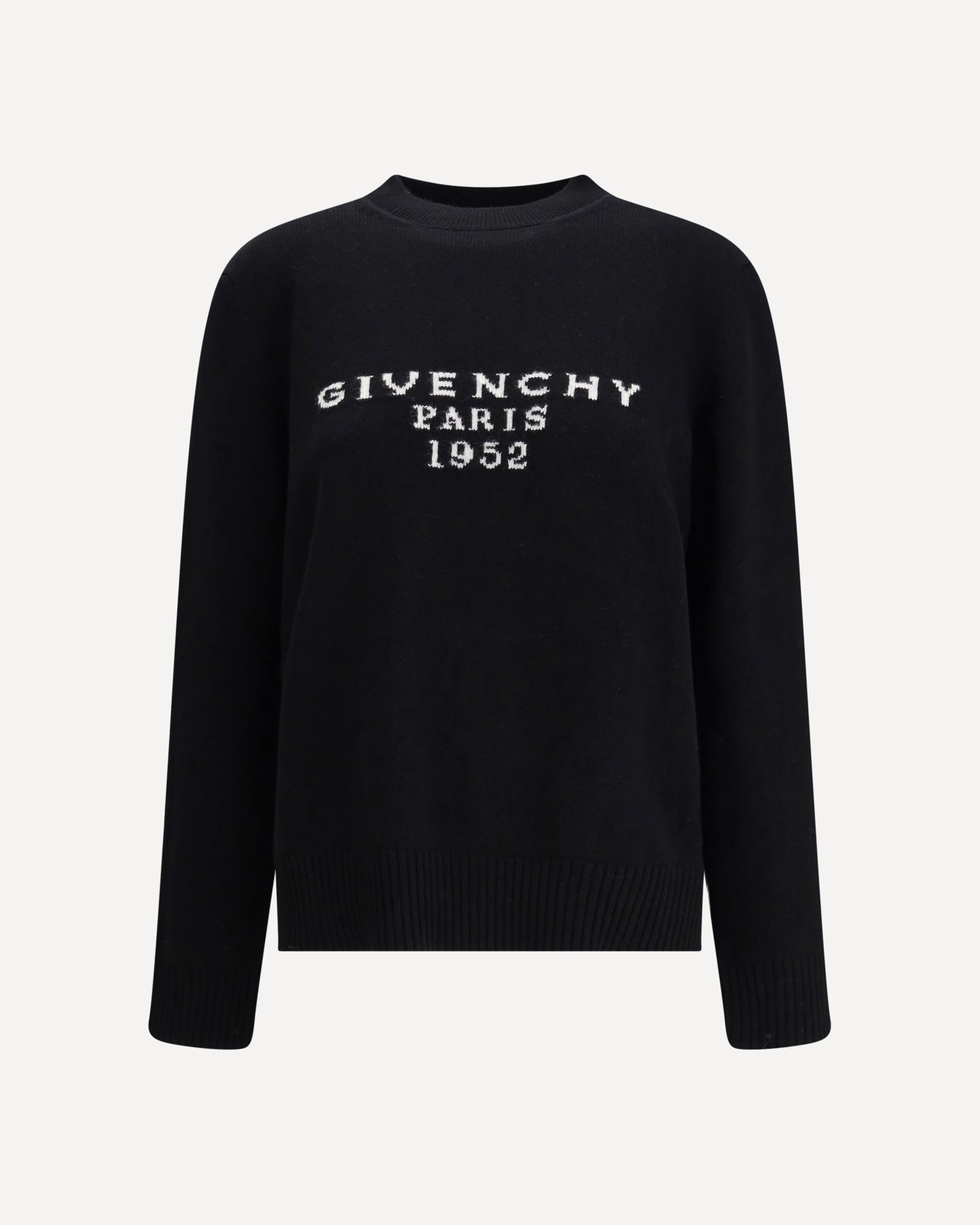 Givenchy's crew neck Sweater is a long-sleeved sweater made from a soft blend of wool and cashmere. The essential design is enhanced by the "GIVENCHY Paris 1952" jacquard on the front, which pays homage to the history of the Maison. Ribbed collar, hem and cuffs complete the garment with a touch of understated elegance.