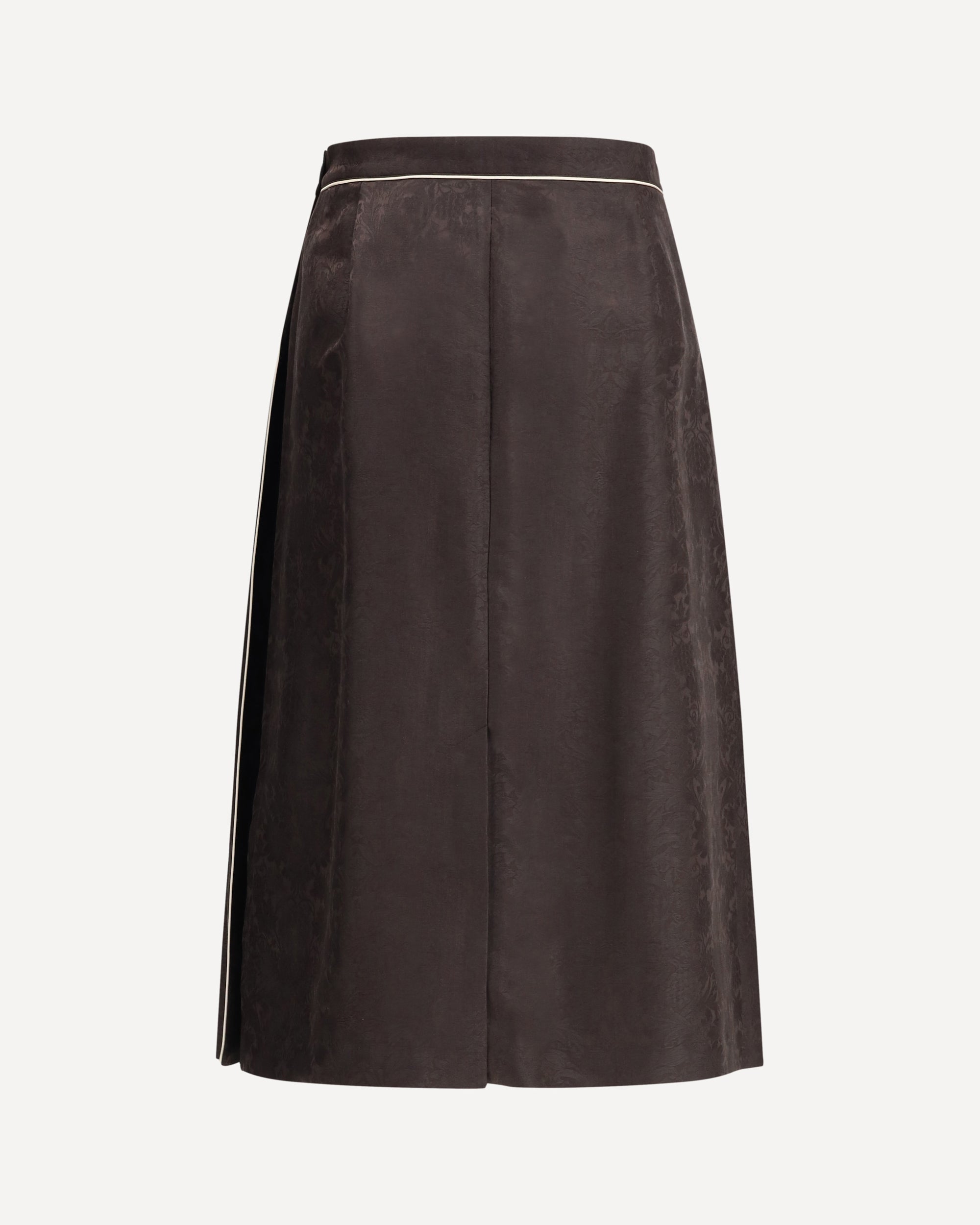 The Sunflower Pleated Silk Skirt by Burberry is a wrap piece that seamlessly blends heritage and modernity. Crafted from silk jacquard, it showcases William Morris’ Sunflower artwork from 1879, held at the Victoria and Albert Museum in London. Debuted on the Burberry Winter 2025 runway, the midi silhouette is tailored with front pleats and framed with contrasting piping for refined definition. A side button closure and back vent complete this skirt, where artistry meets contemporary tailoring.