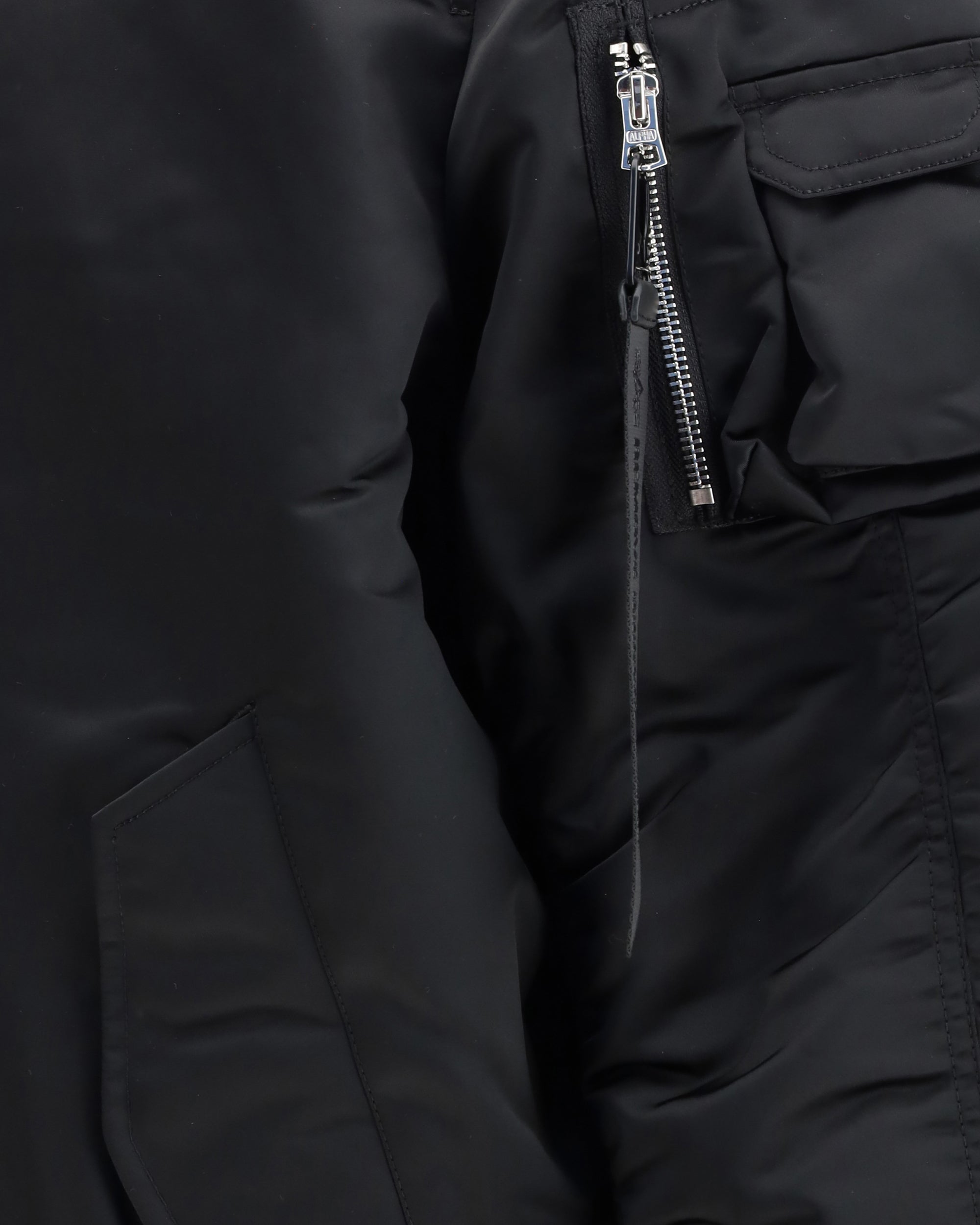 The MA-1 UV Bomber Jacket by Alpha Industries reinvents a military classic with a modern edge. Crafted in premium nylon with anti-pilling cuffs, it is lightweight yet warm thanks to the quilted lining. Signature details such as the “Remove Before Flight” tag, UV flag label, and magnetic pockets elevate its design. A versatile staple, perfect from casual wear to refined looks.