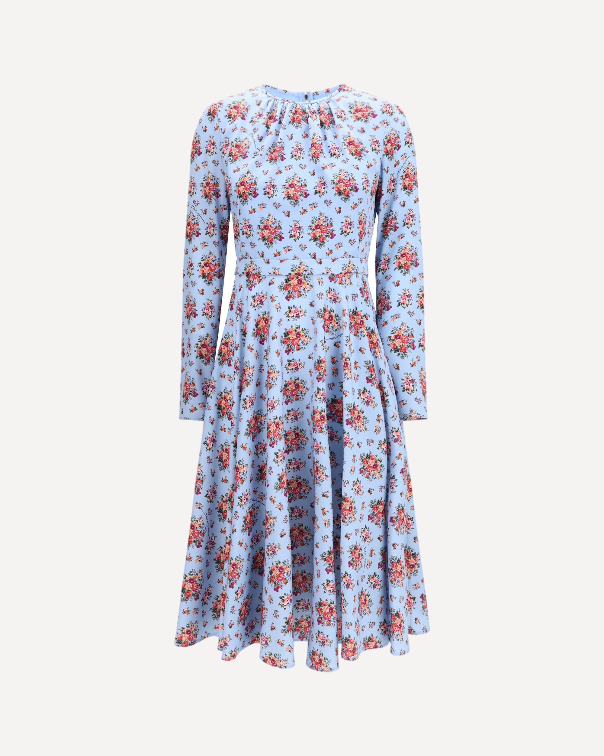 The charmeuse long Dress by Dolce&Gabbana with bouquet print is an elegant and romantic garment, perfect for special occasions. The slightly gathered crew neck enhances the neckline, while the flared skirt adds movement and lightness to the design. The long glove sleeves, featuring an invisible zip opening, add a sophisticated touch, complemented by the chain zip closure at the back. The lined bodice and unlined skirt ensure comfort and fluidity of movement, making this dress a perfect balance of style, elegance, and practicality.