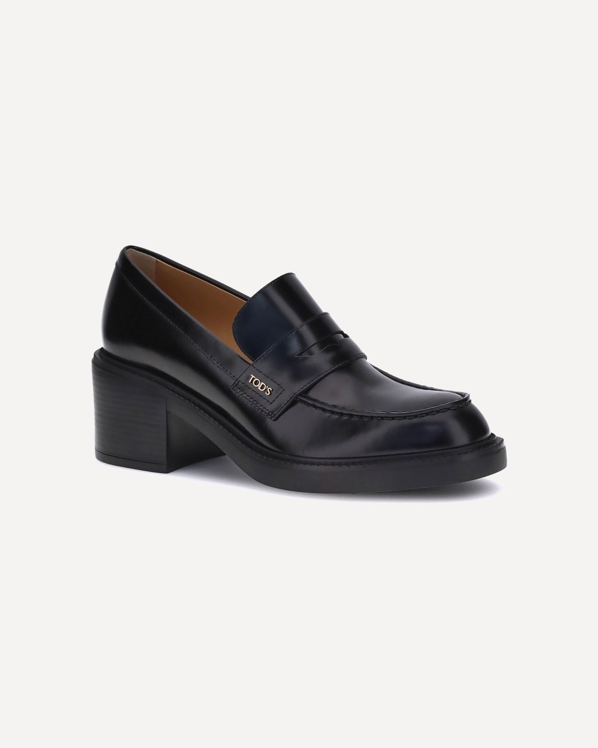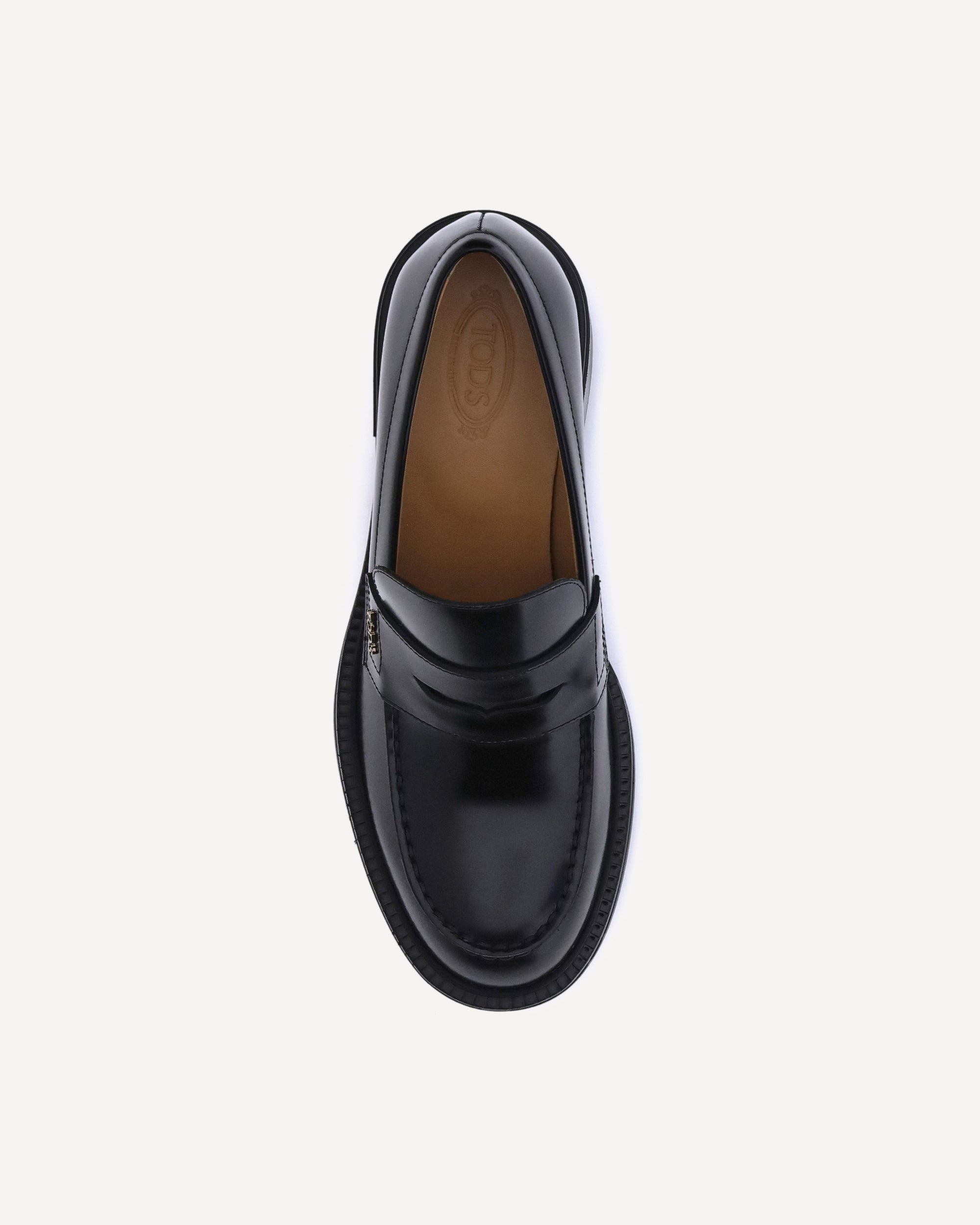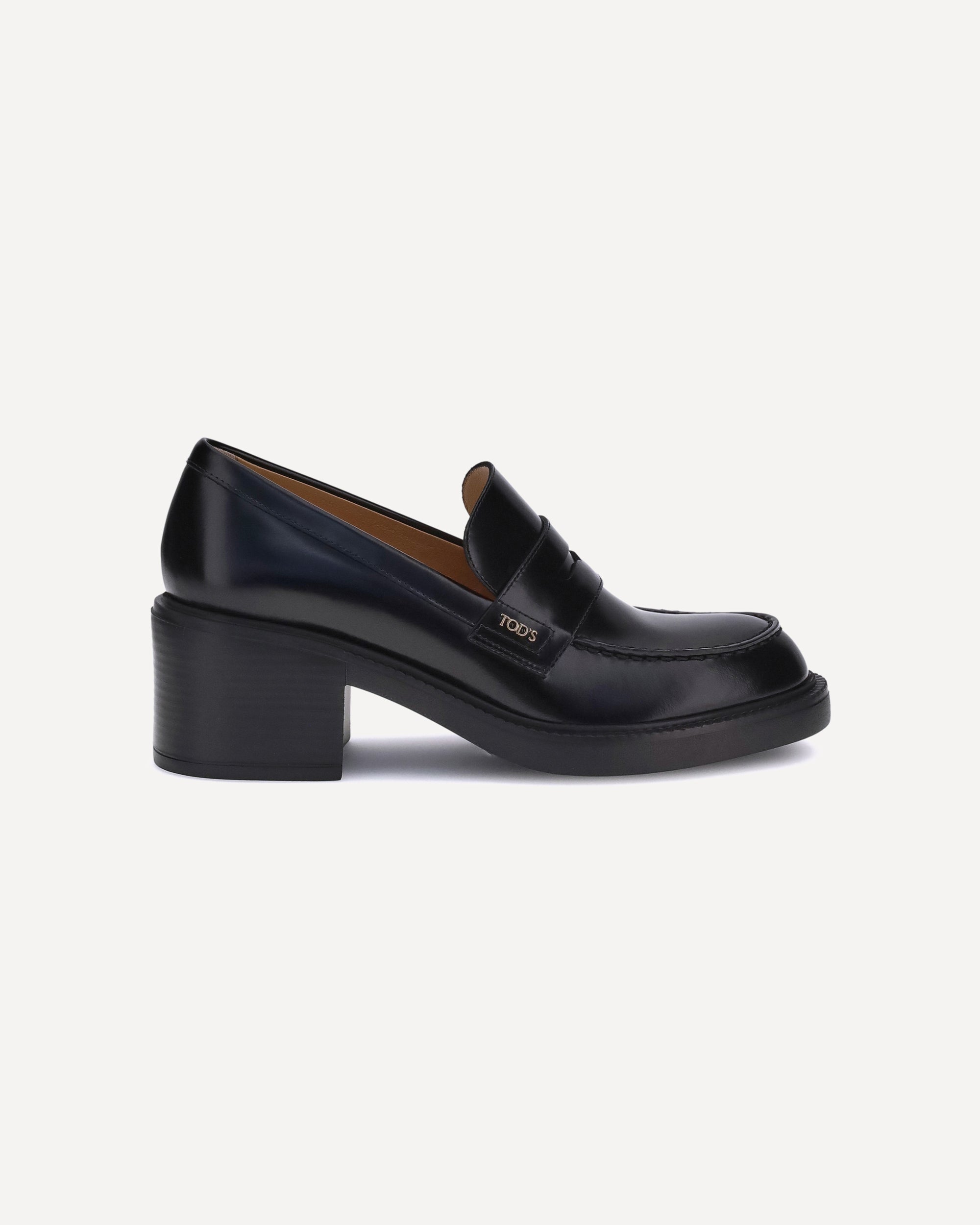Leather Loafers by Tod's, a slip-on model with an essential and elegant design. Characterized by a round toe and a solid chunky heel, they combine comfort and style in a contemporary and versatile aesthetic. Perfect for completing both casual and more formal looks with a touch of timeless class.