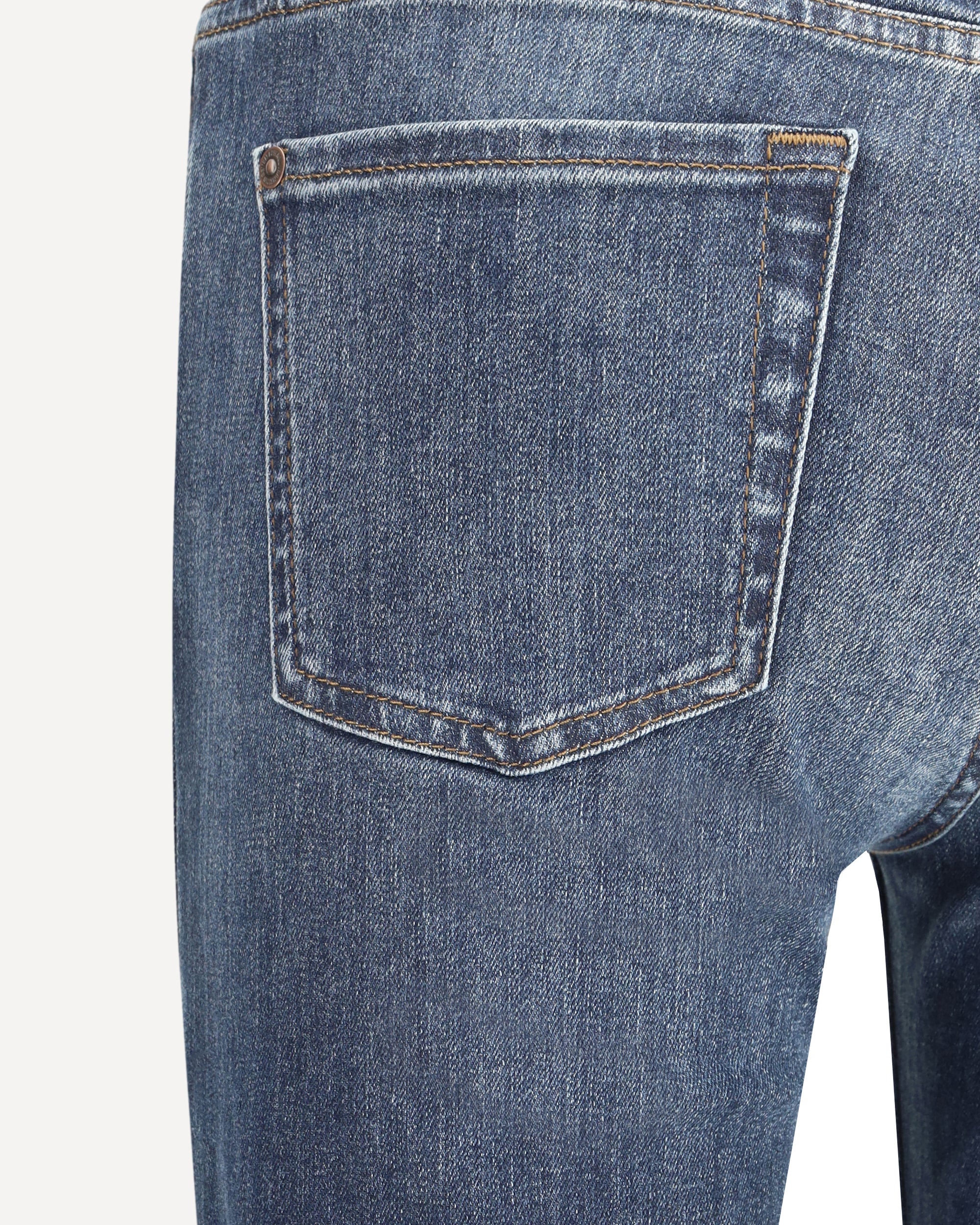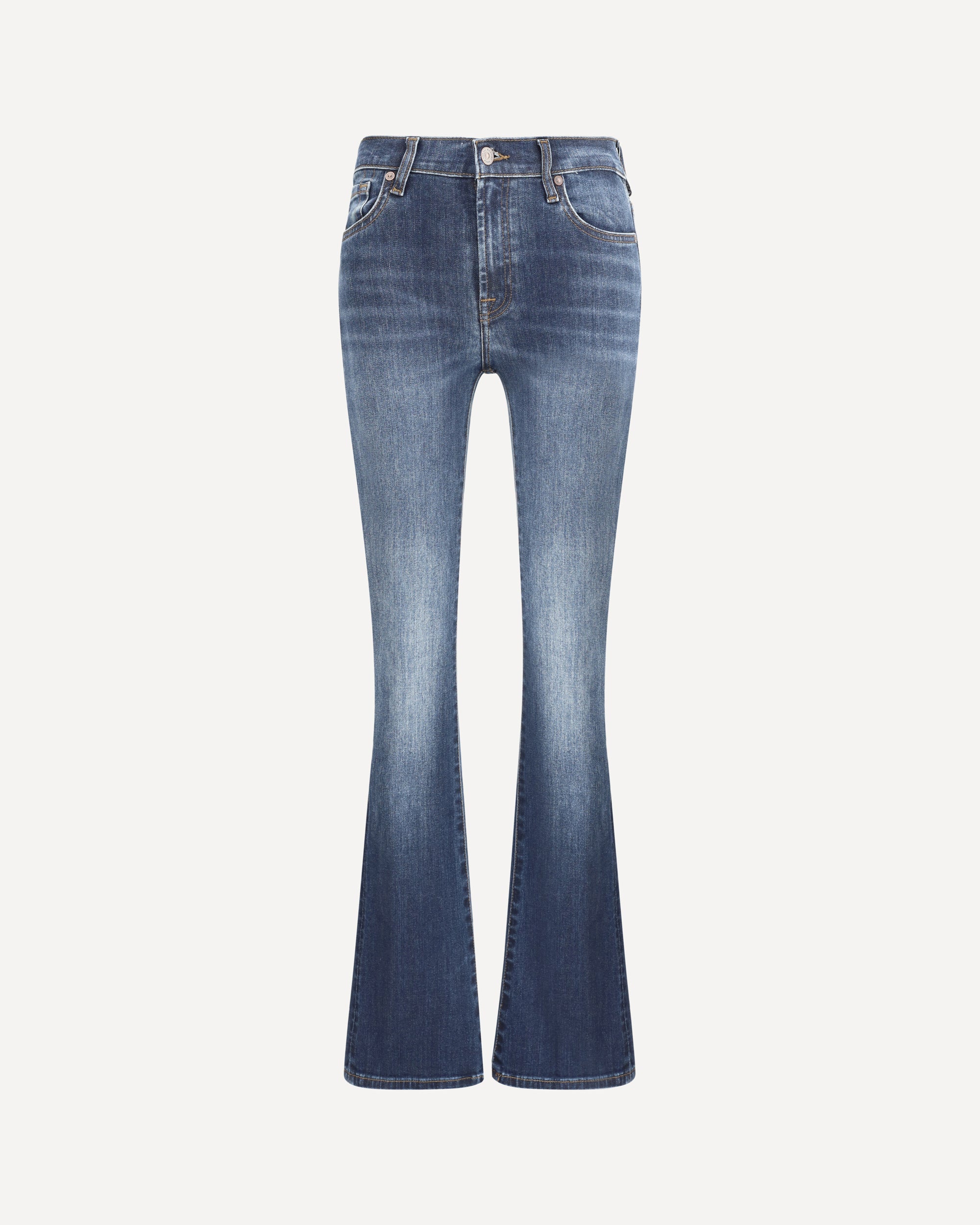The Gran Canyon Jeans by 7For are a five-pocket bootcut style with a zipper-and-button front closure. The high waist enhances the figure, while belt loops on the waistband offer a customizable fit. The bootcut cut, which flares slightly from the knees toward the bottom, creates a balanced, refined silhouette perfect for a sleek, modern look. A versatile garment that combines comfort and style.