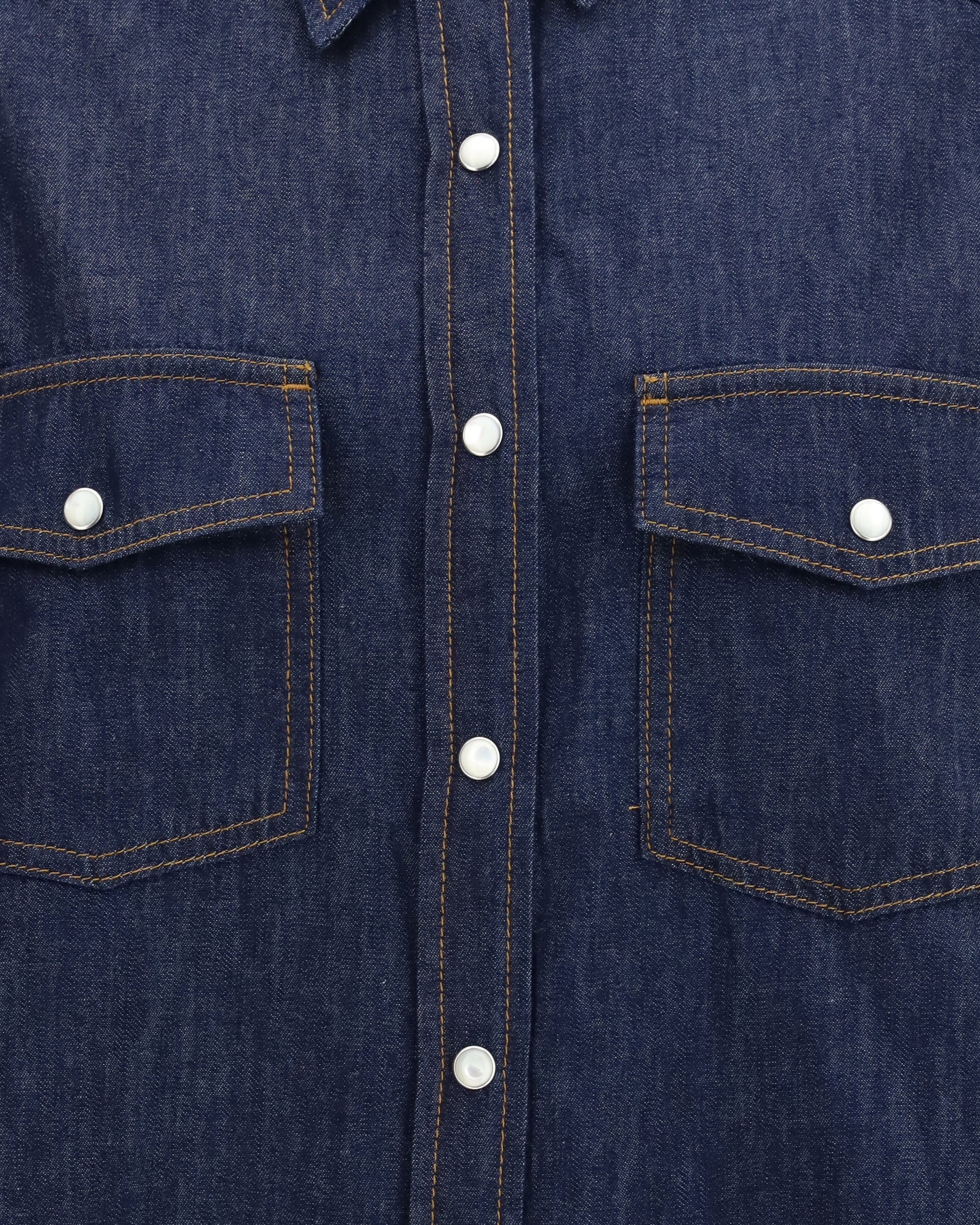 The Grenon Shirt by Khaite delivers a relaxed reinterpretation of the classic shirt, featuring a cropped silhouette designed for a slouchy fit. The Japanese chambray enhances the fabric’s lightness, while the Western-inspired yoke, pearl snap closures and contrast topstitching bring definition to the piece. An angled flap pocket at the chest and a shirttail hem that dips lower in the back complete a design that blends tradition and modern ease with the brand’s signature refinement.
