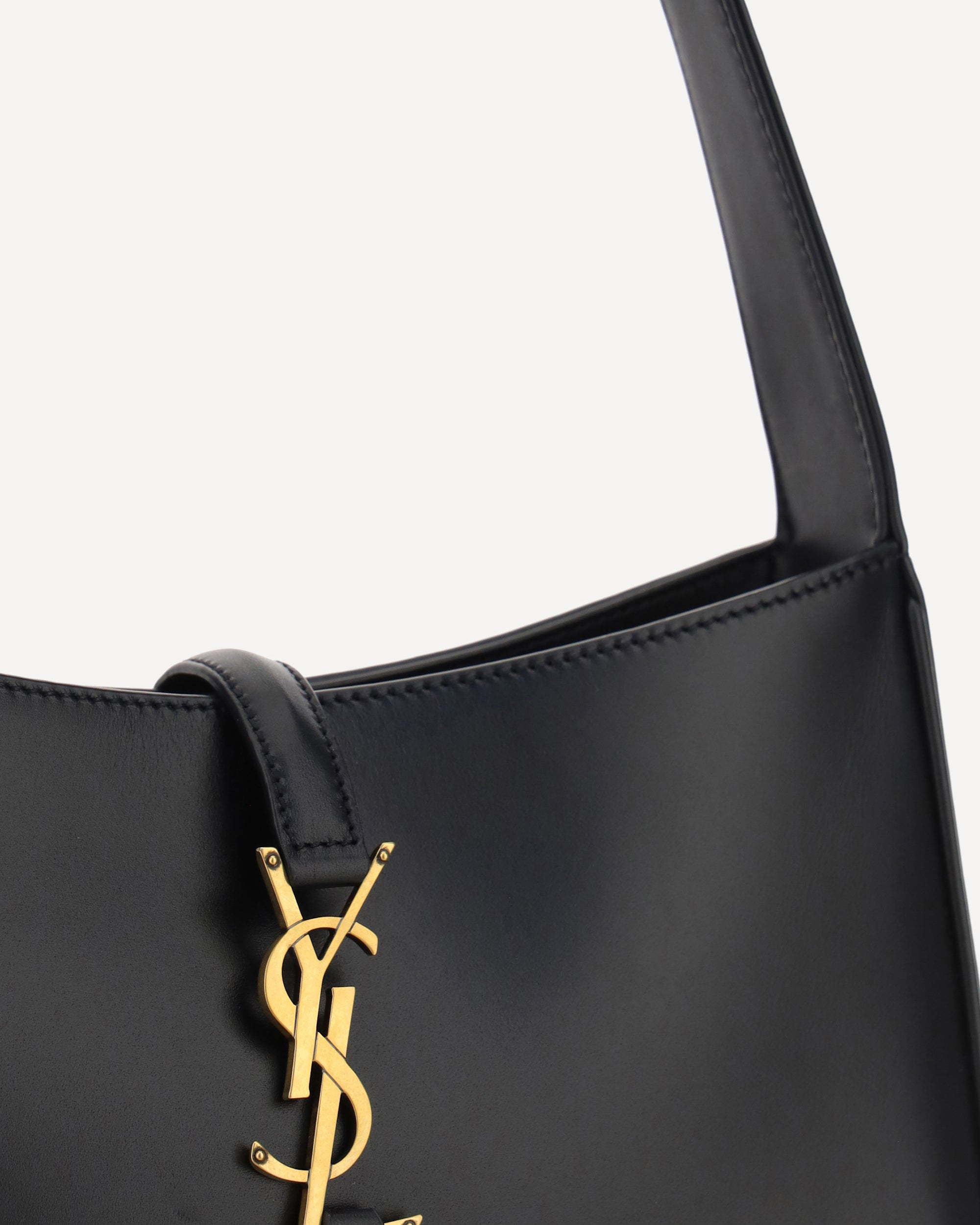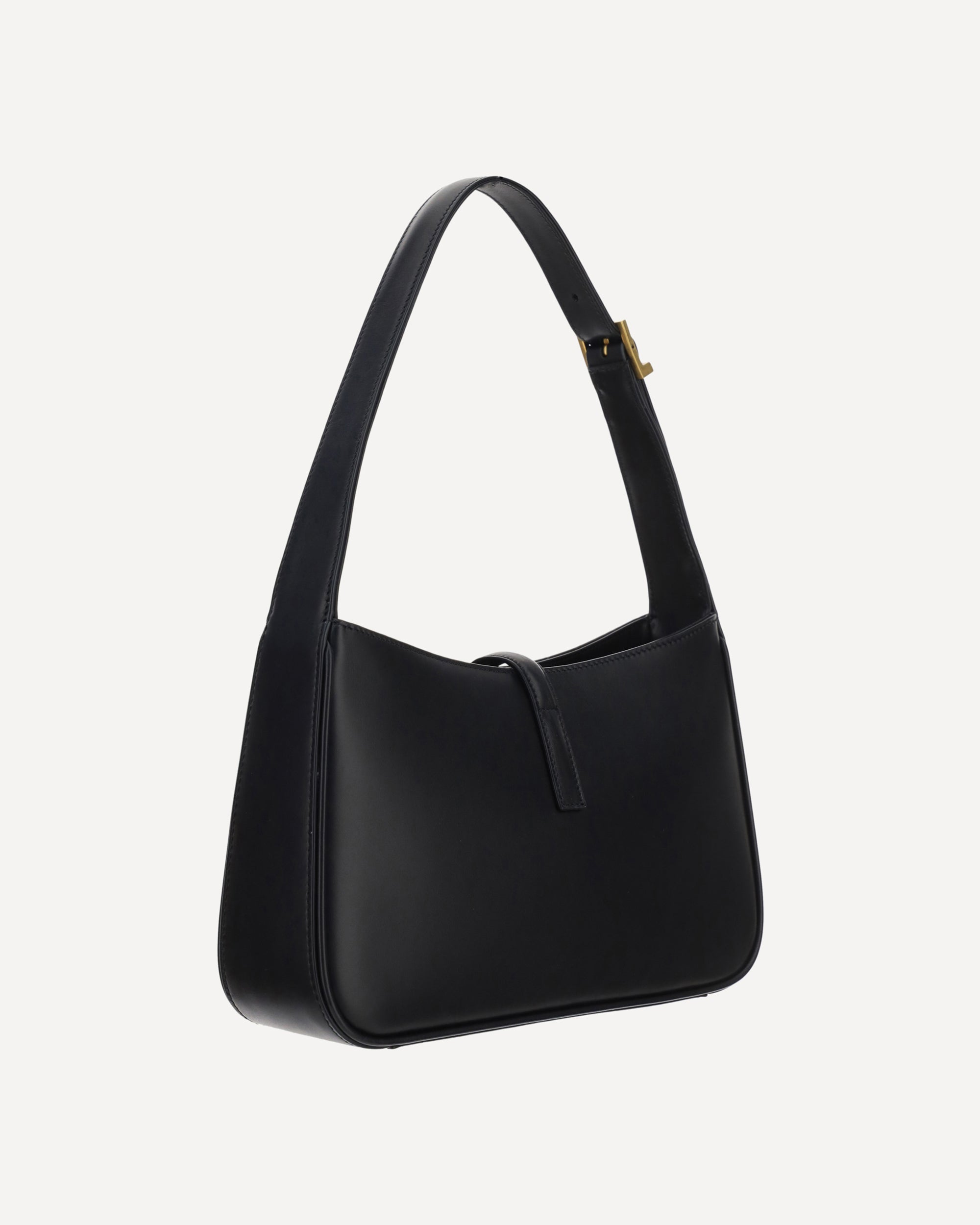 The Leather Hobo Shoulder Bag by Saint Laurent is an essential and refined model made of smooth leather with an elegant finish. Featuring a single adjustable top handle with buckle, it is distinguished by the interlocking front closure embellished with the iconic YSL hook. The interior features a single compartment, ideal for storing your essentials with style and discretion.
