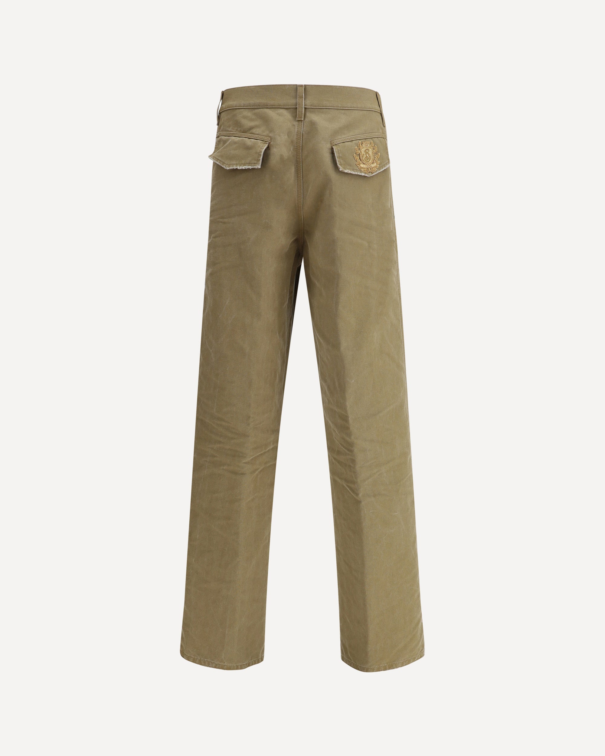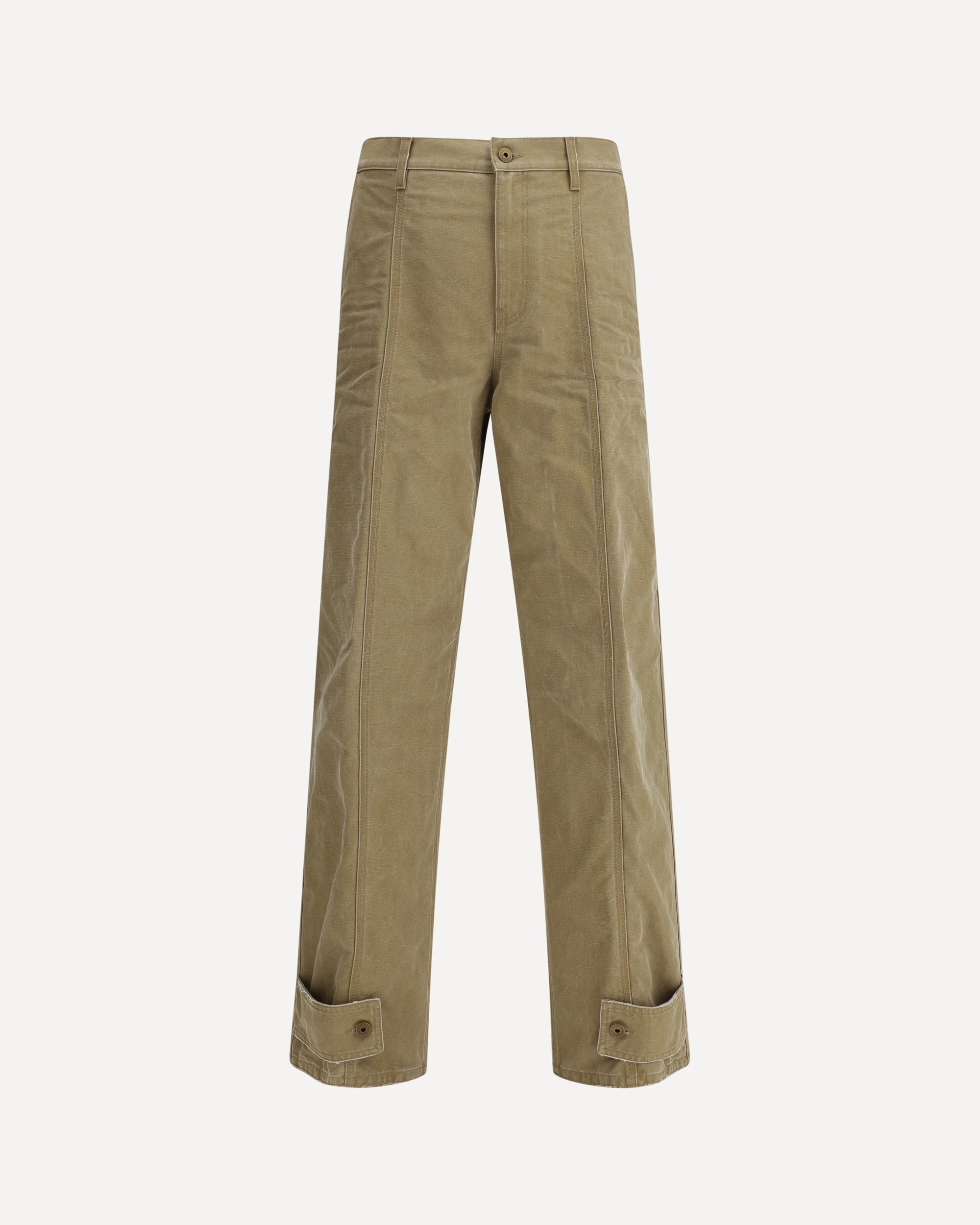 Burberry's cotton wide-leg Jeans offer a loose, modern silhouette enhanced by the brand's iconic details. Made from cotton denim, they feature a front zip-and-button closure, two slash pockets at the front and two welt pockets with flaps at the back. The embroidered Burberry logo on the back panel adds a distinctive touch, while exposed seams enhance the structured design. A statement piece, ideal for urban looks with a strong character.