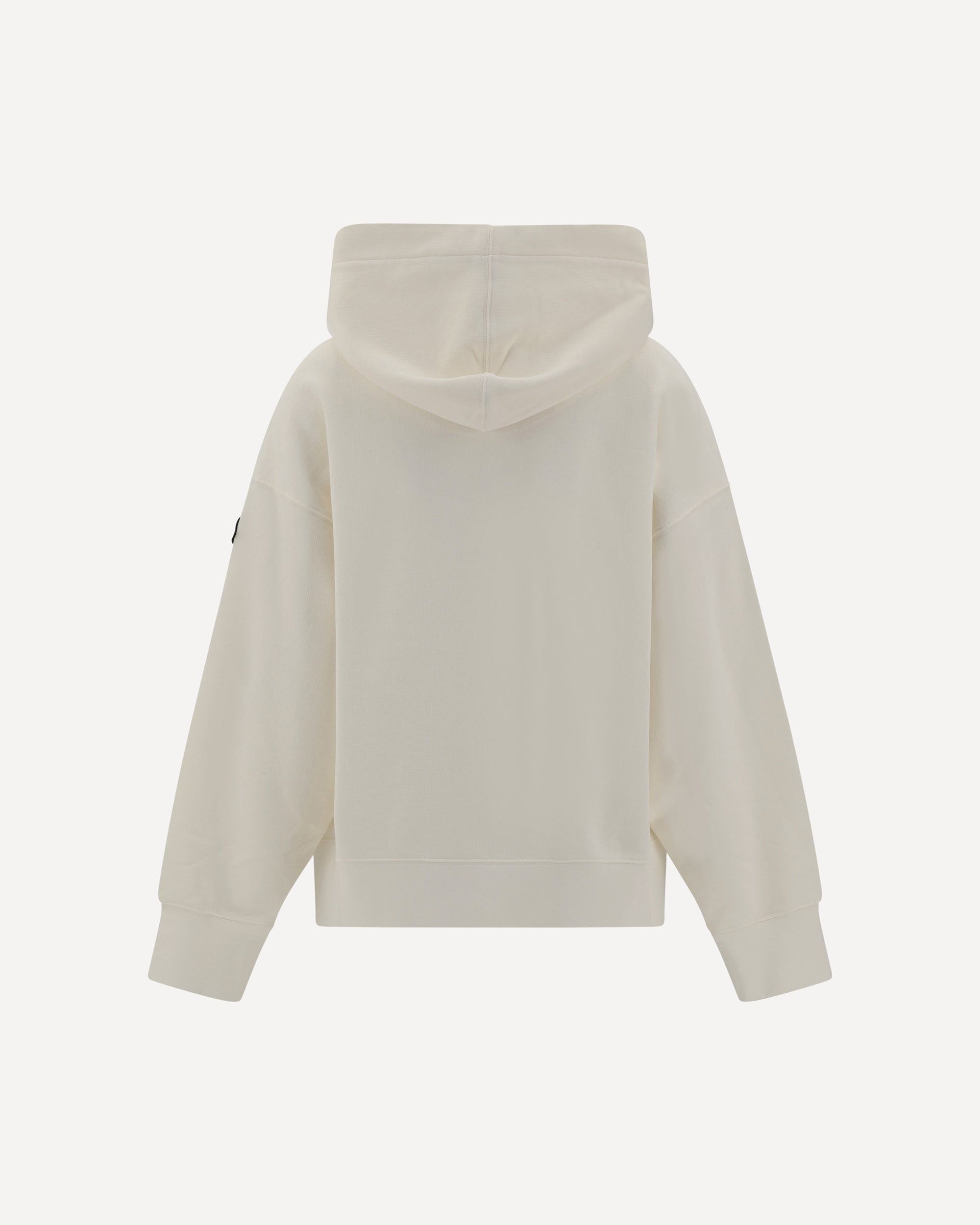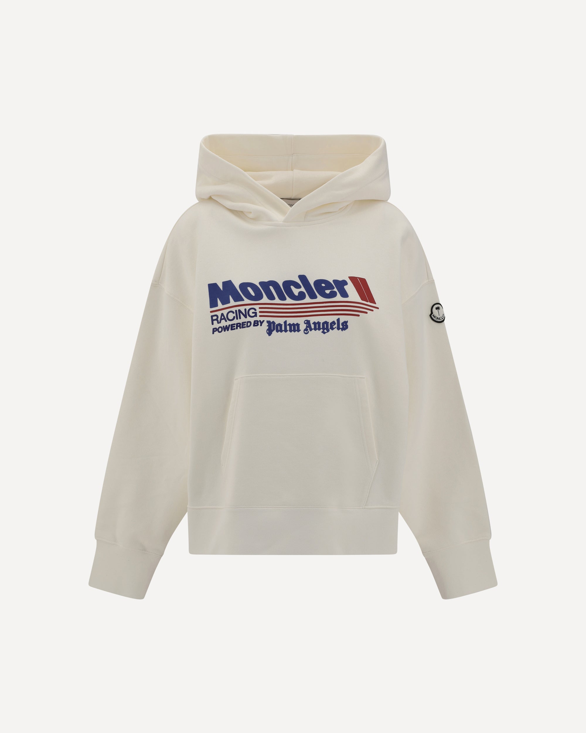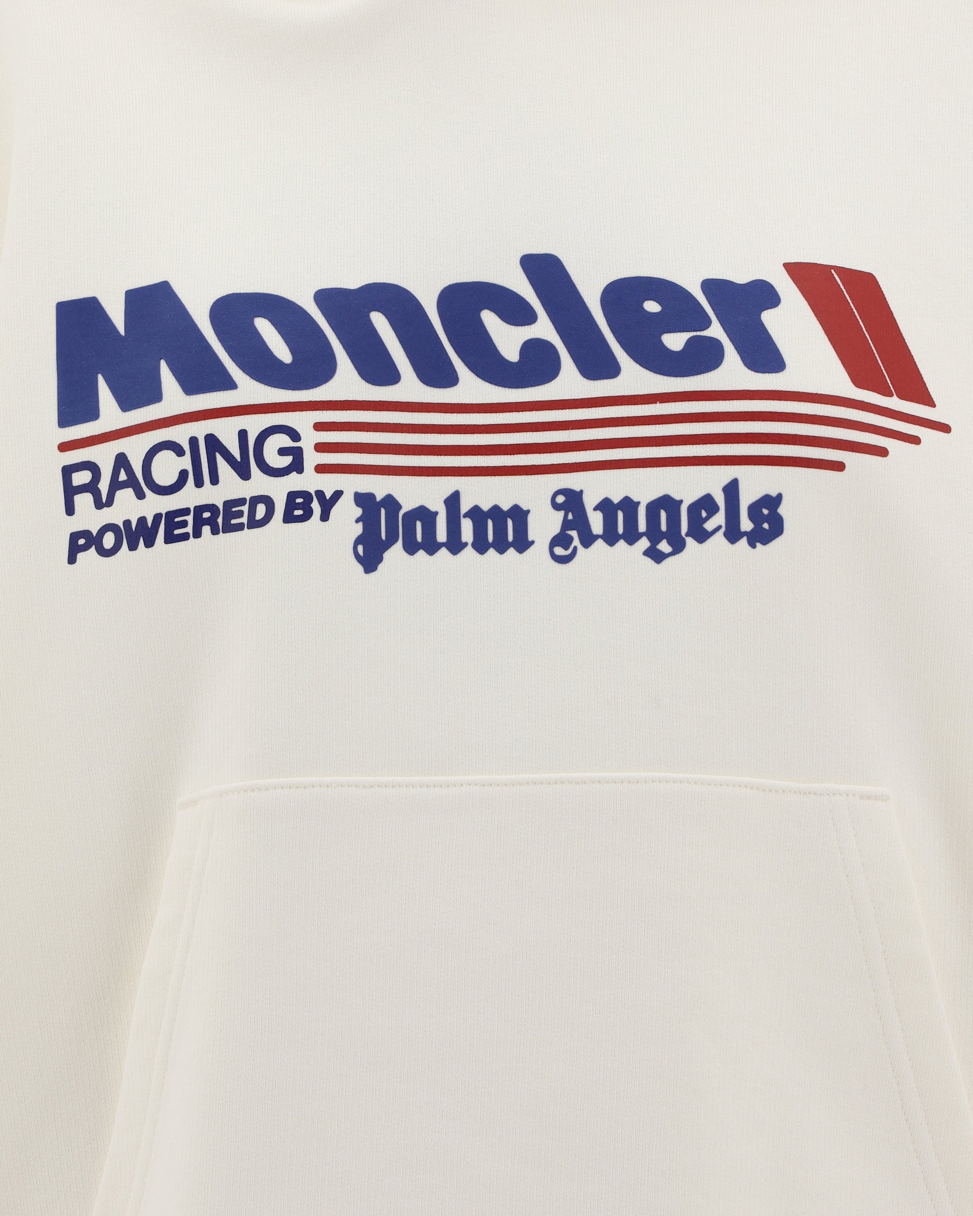 The Moncler x Palm Angels maxi logo hoodie is a bold piece with streetwear-luxury style. The adjustable hood and front pouch pocket provide functionality and comfort, while the ribbed hem and cuffs ensure a snug, comfortable fit. The front maxi print with the brands' iconic monogram creates a strong visual impact, while the patch with the brands' logos sewn on the left shoulder adds an additional distinctive touch. A perfect piece for those seeking a modern, recognizable look that combines the luxury of Moncler and the energy of Palm Angels.