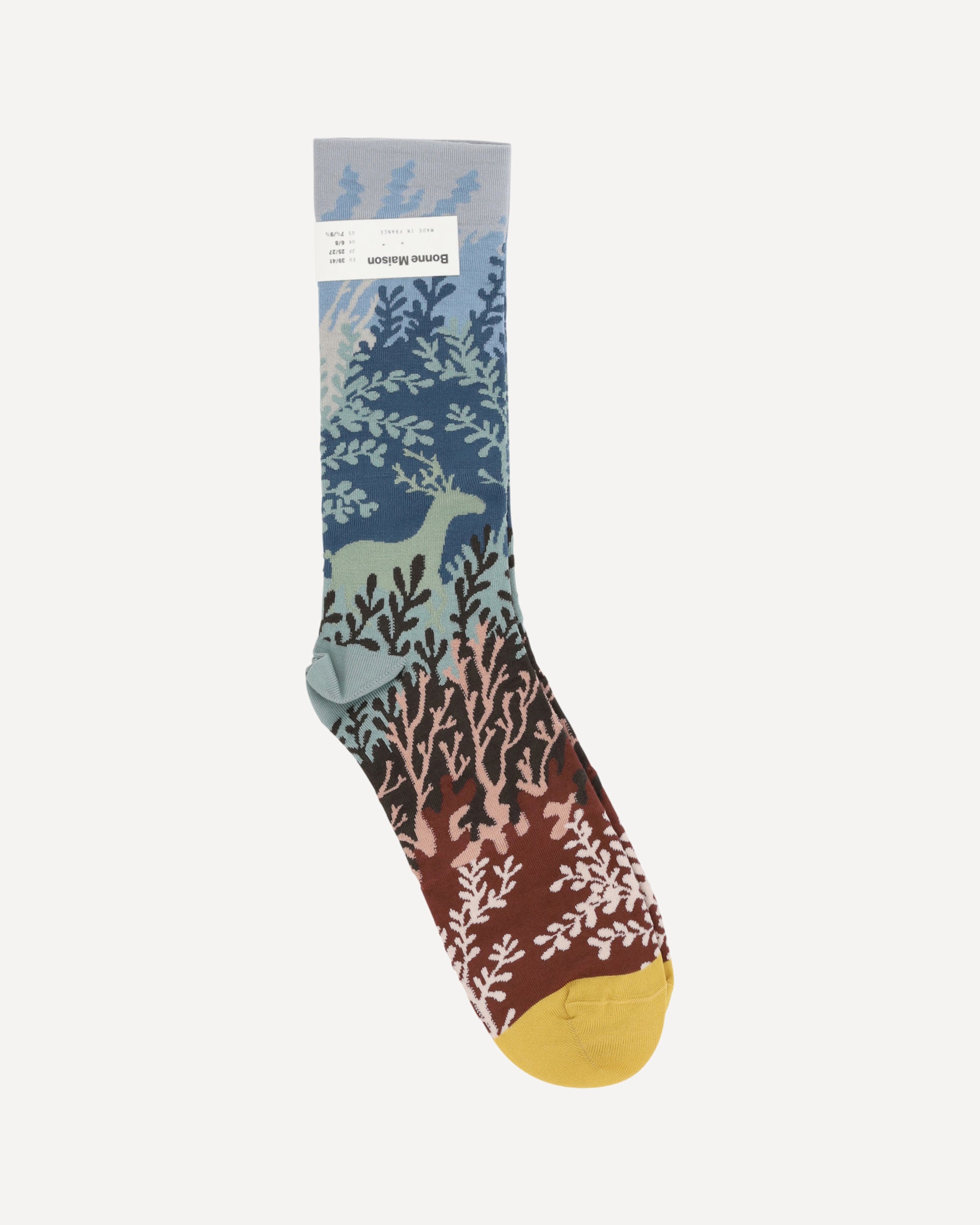 Bonne Maison's above-ankle height cotton socks feature a vibrant and dynamic multicolor pattern. Made from high-quality materials, they offer comfort and a touch of originality, perfect for adding a stylish detail to any outfit.