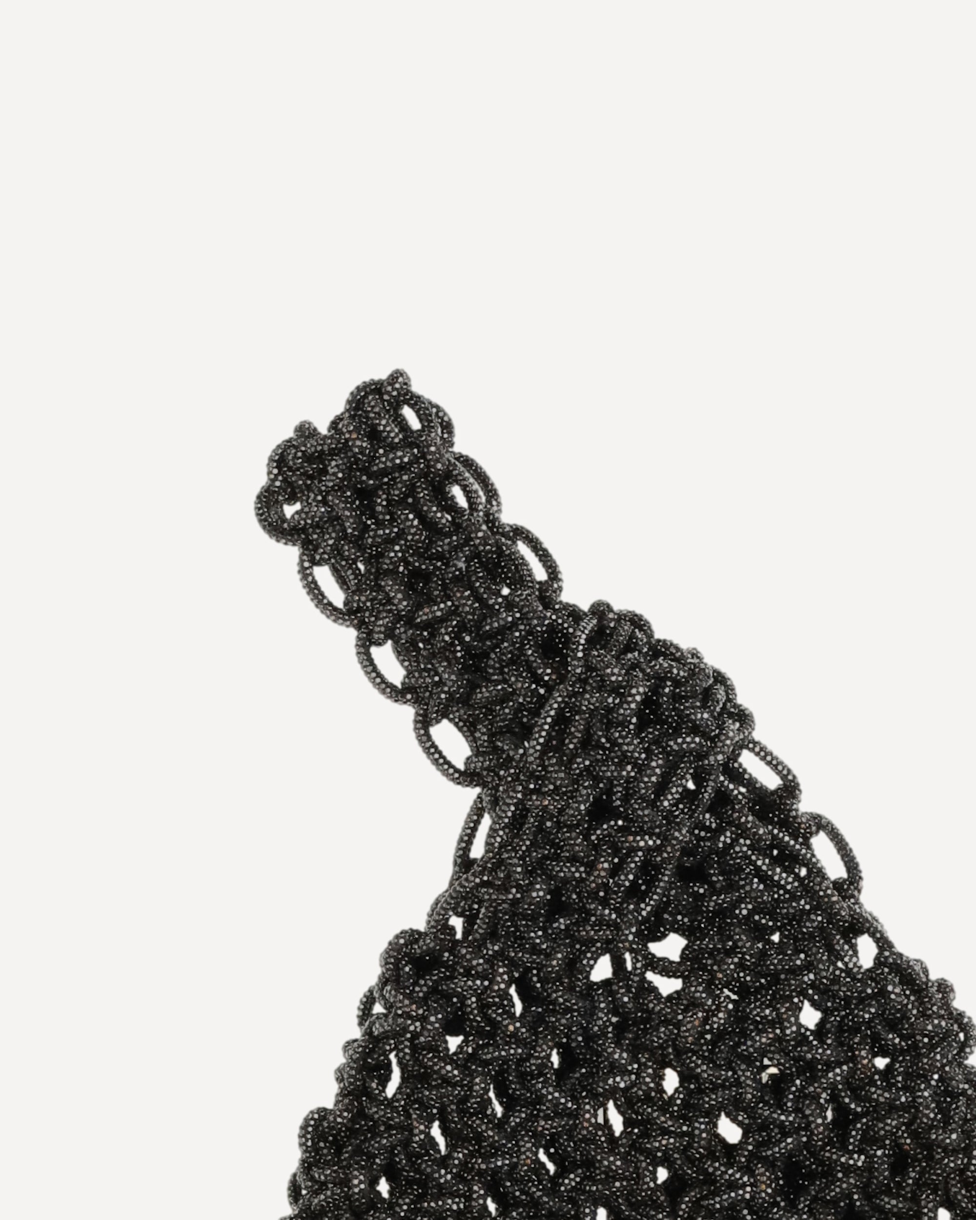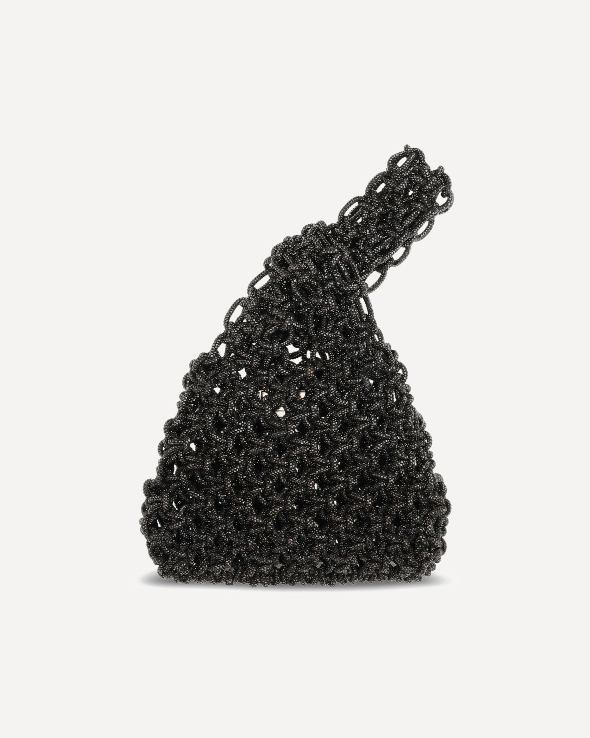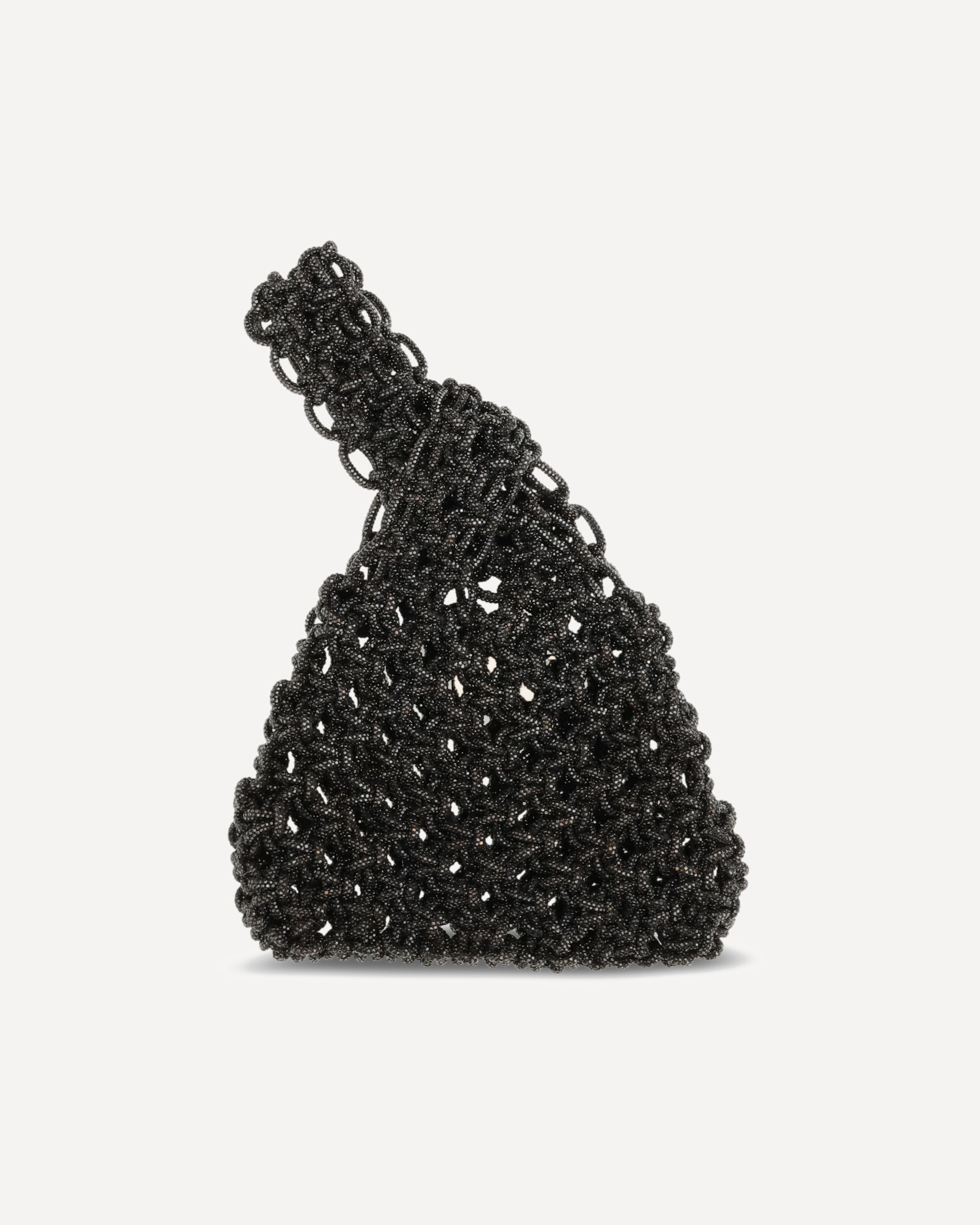 Nicky Handbag Hibourama by features a Japanese-inspired knot closure that is ideal for wearing comfortably on the wrist. Made entirely by hand using a refined braiding technique, it is the perfect accessory to complete your looks, thanks to its elegant design and yarn embellished with sparkling crystals.