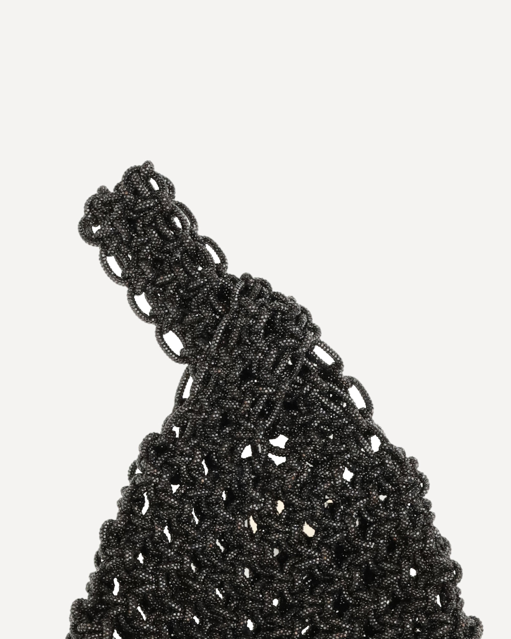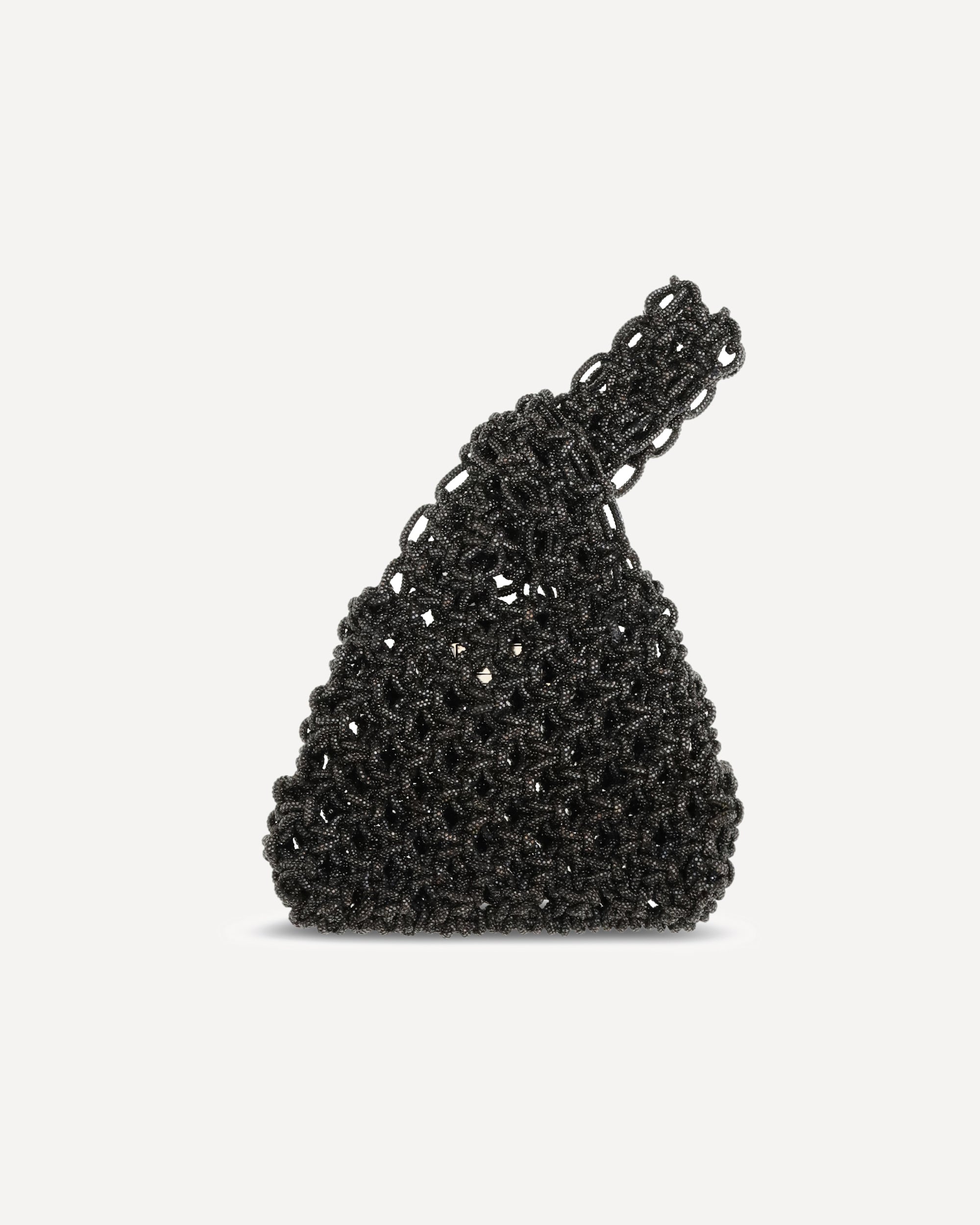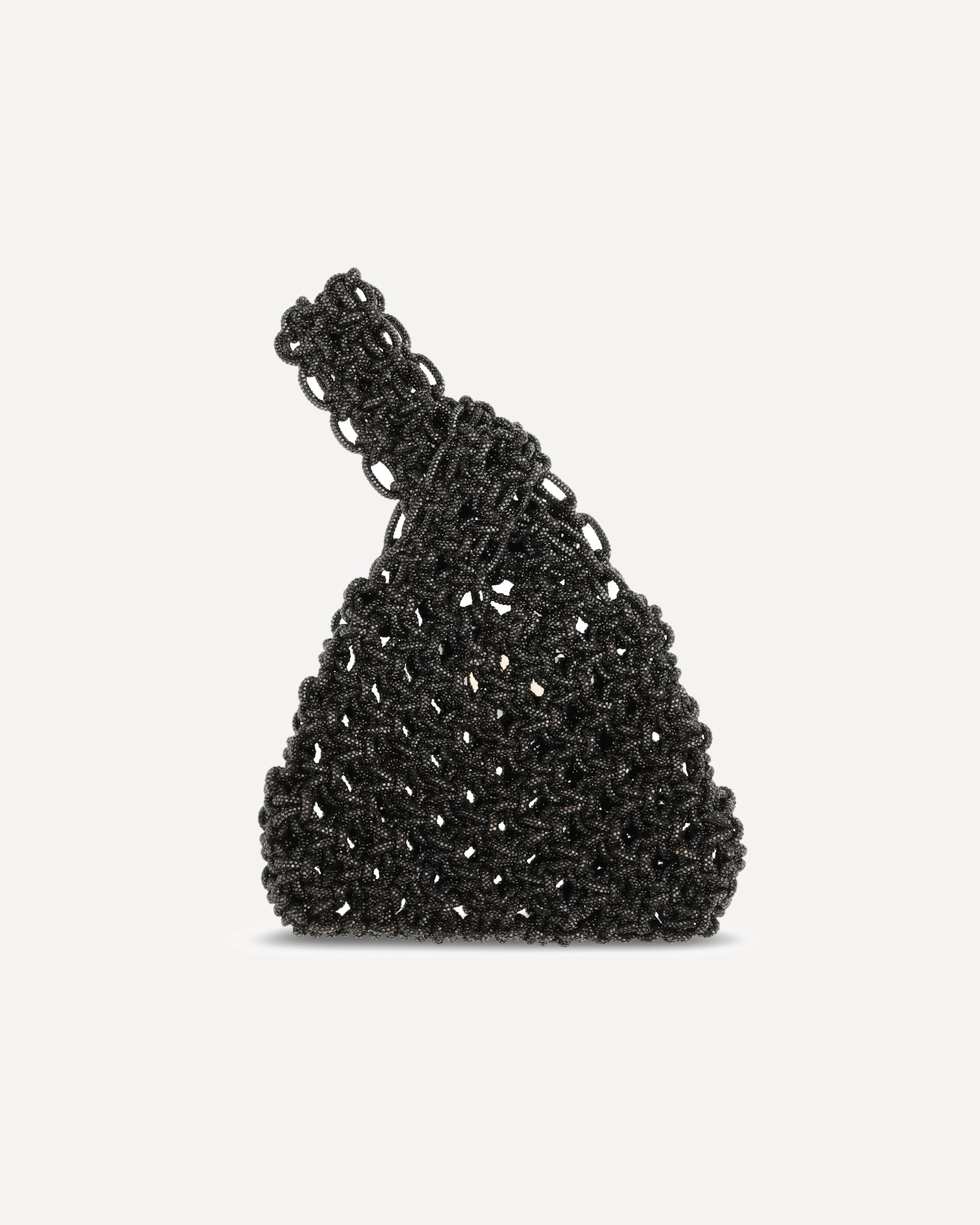 Nicky Handbag Hibourama by features a Japanese-inspired knot closure that is ideal for wearing comfortably on the wrist. Made entirely by hand using a refined braiding technique, it is the perfect accessory to complete your looks, thanks to its elegant design and yarn embellished with sparkling crystals.