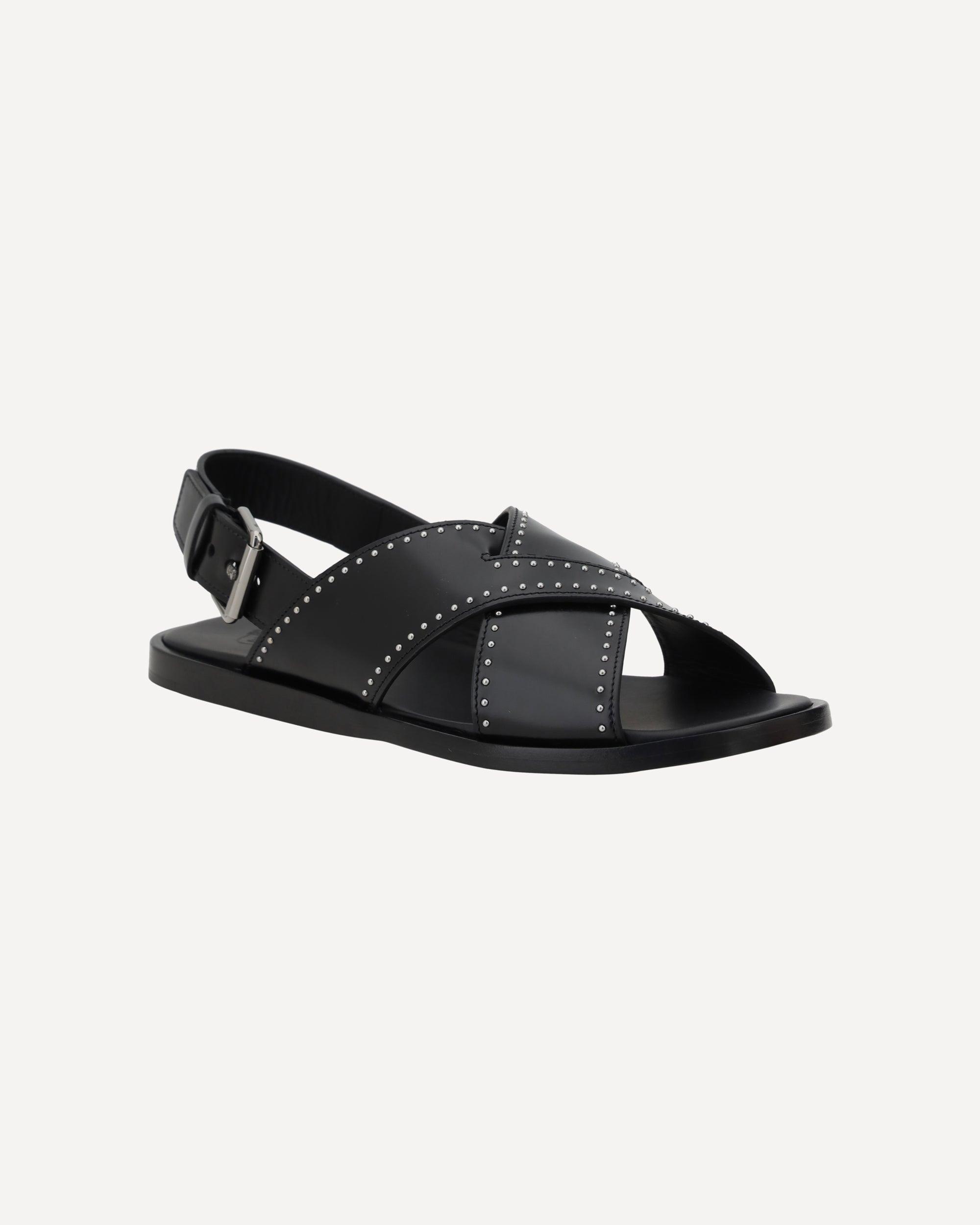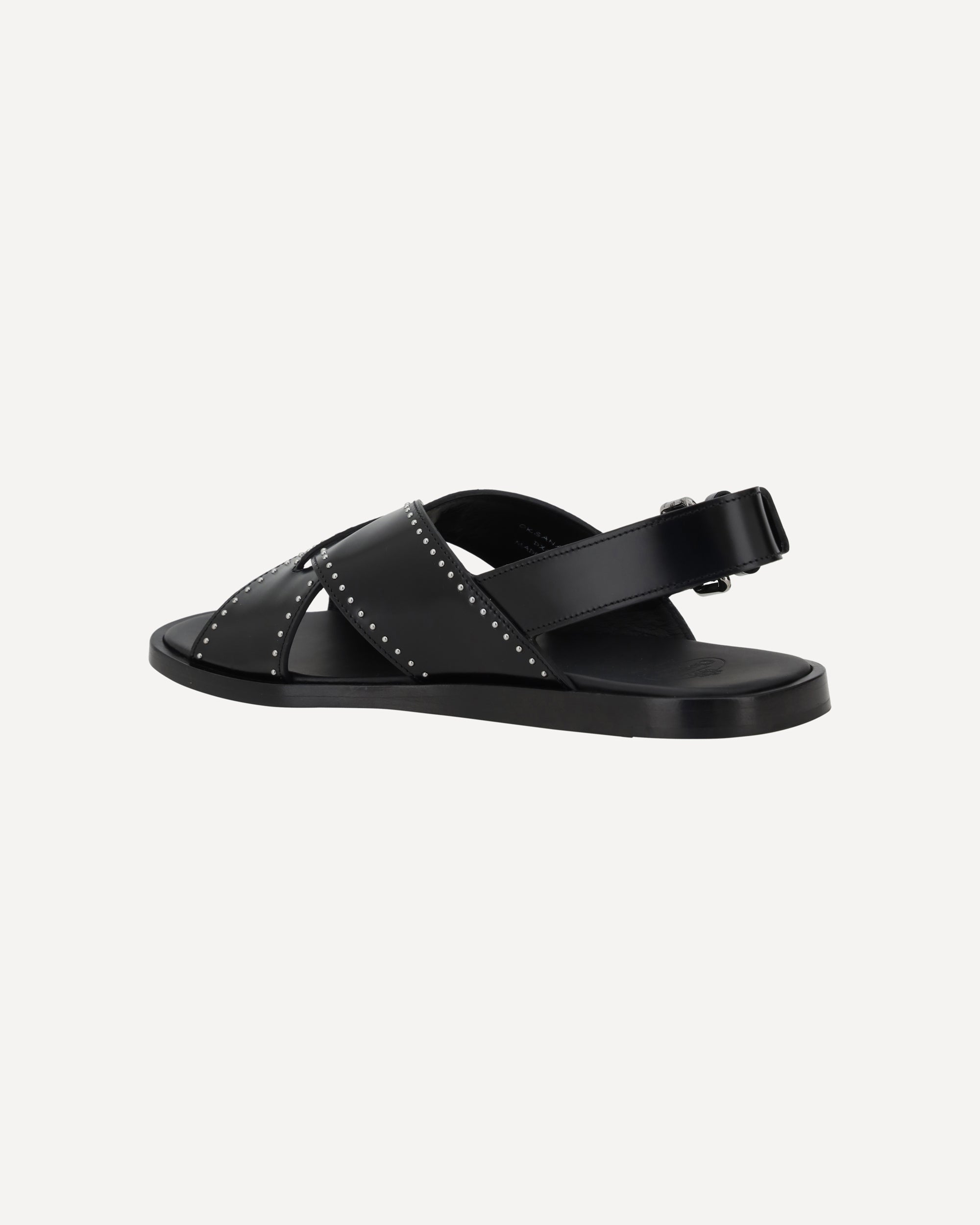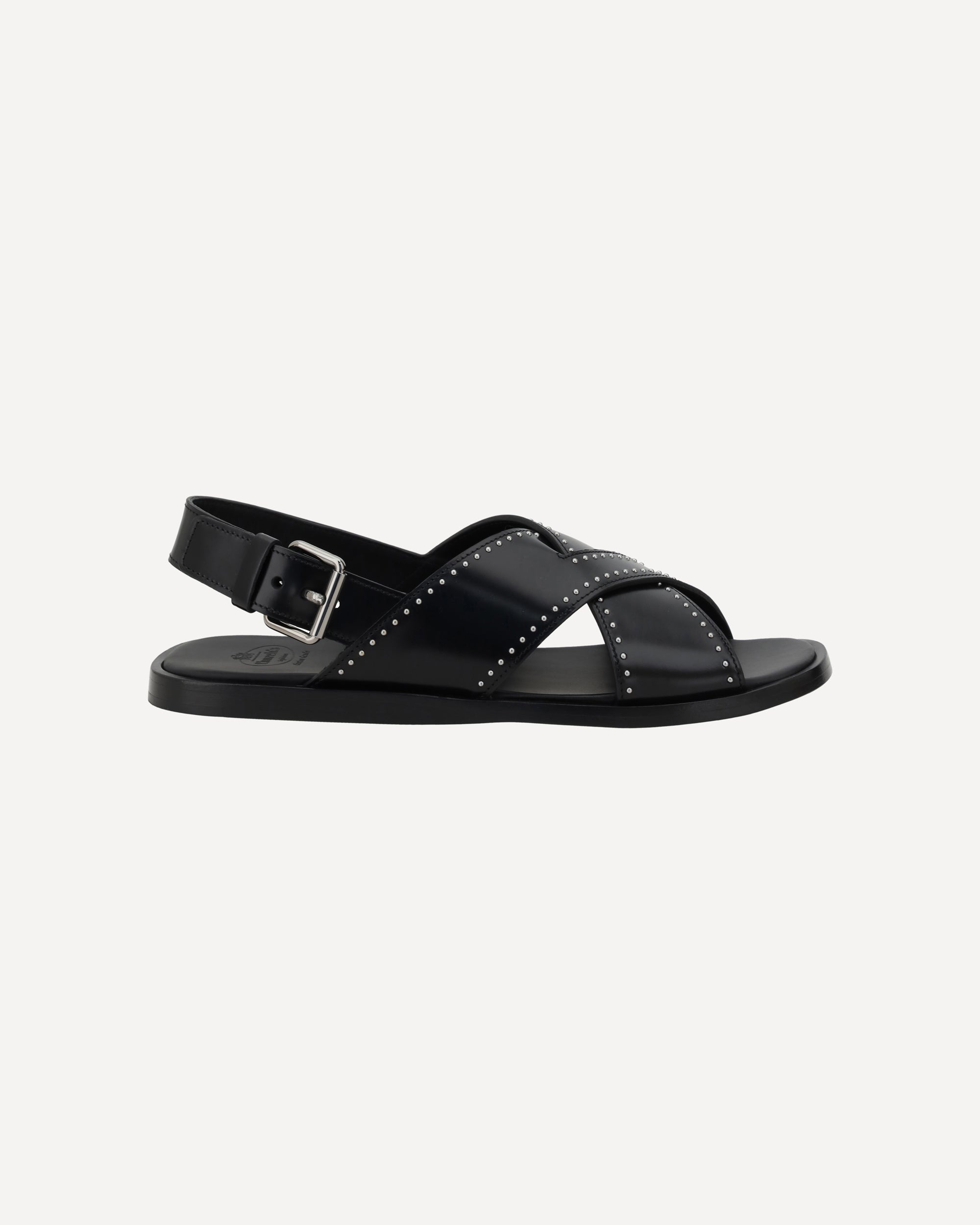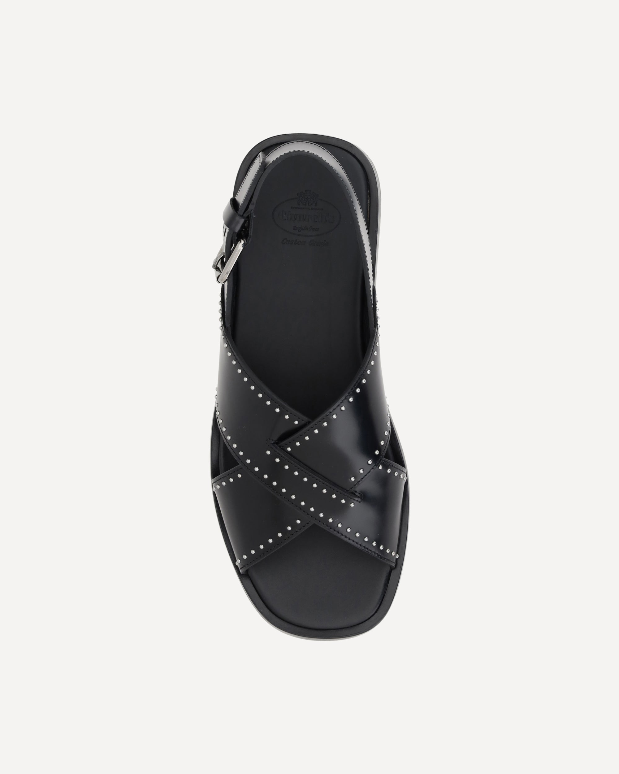 Church's leather Oksana Sandals feature an adjustable buckled ankle strap that ensures a secure, customized fit. The crisscrossed straps on the front give a sleek, modern design, while the open toe adds a fresh, feminine touch. Contrasting embellishments on the perimeters offer a distinctive detail, making these sandals even more refined. The flat rubber sole ensures comfort and durability, while the logoed insole underscores the brand's prestige.