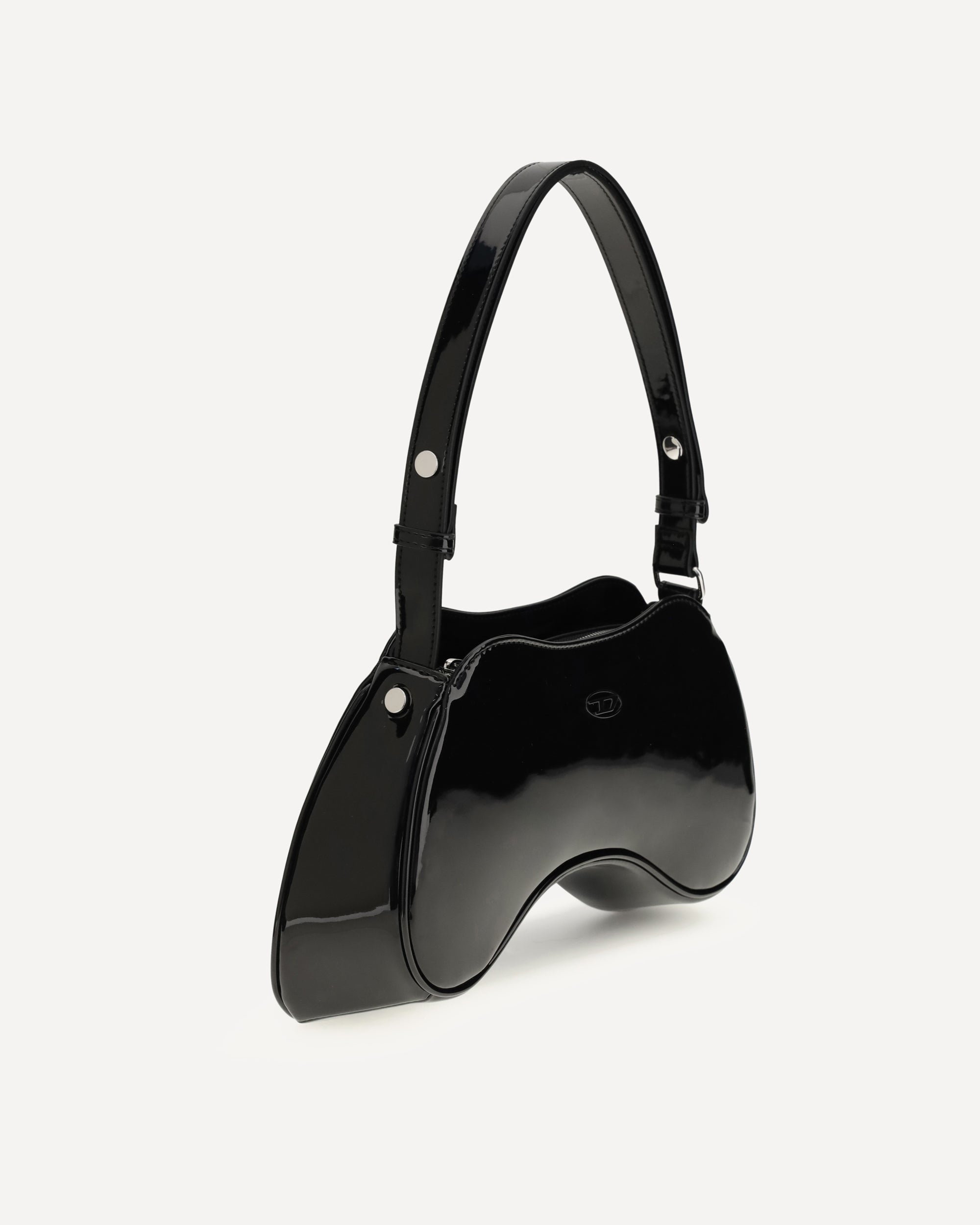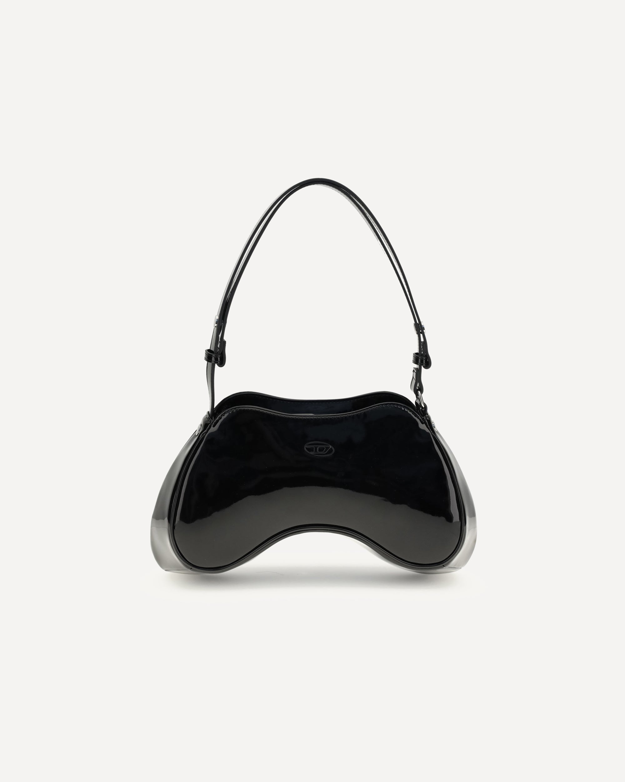 The Play large Shoulder Bag by Diesel is a modern and versatile accessory, featuring a unique and original design. It features an adjustable shoulder strap, allowing you to easily adjust it to the desired length. The glossy finish lends an elegant and reflective look, while the front magnetic flap closure ensures practicality and security. A distinctive element of the bag is the iconic Oval D plaque on the front flap, adding a touch of style and recognizability to the model. The bag's structured and asymmetrical shape, inspired by video game controllers, makes it even more interesting and contemporary.