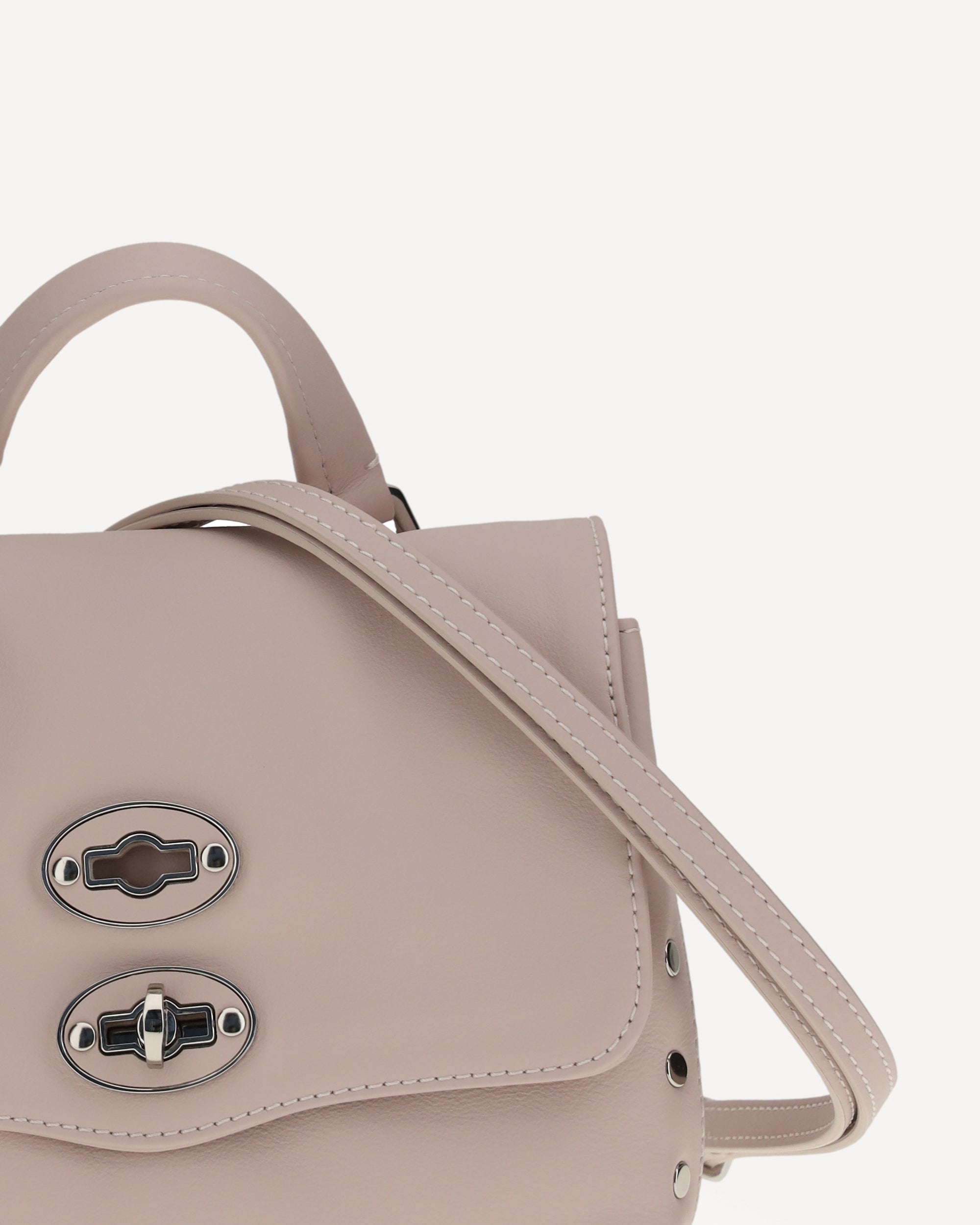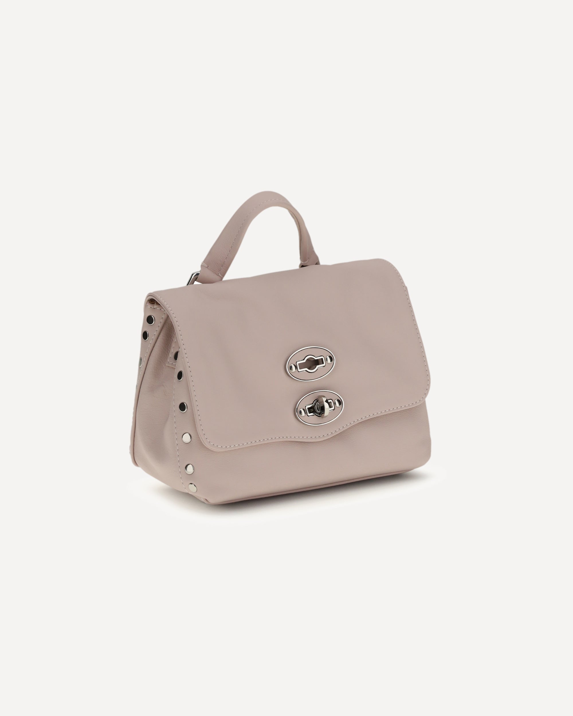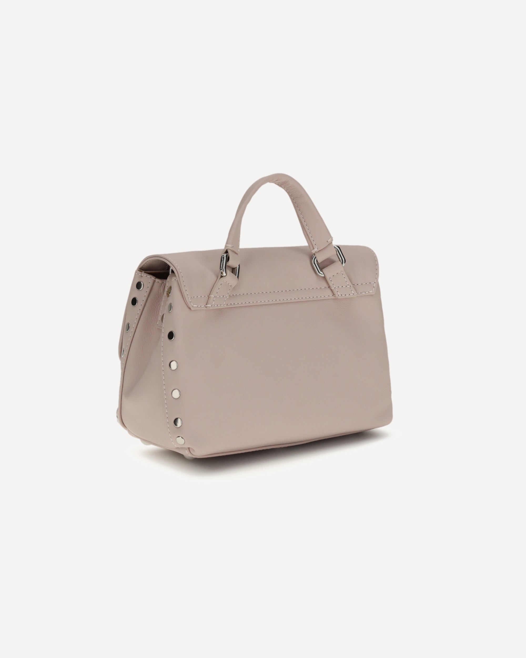 The Saeta Baby leather Postina Handbag by Zanellato is an elegant and functional model, perfect for those looking for a versatile and stylish accessory. The single flat leather handle on the top makes it comfortable to carry by hand, while the adjustable and removable shoulder strap offers the possibility to wear it either on the shoulder or crossbody, adapting to different needs. The front swivel hook closure is a distinctive detail that gives the bag a touch of character, while the flat studs on the side panels add an element of originality and a rock-chic accent. A perfect mix of style, practicality and quality.