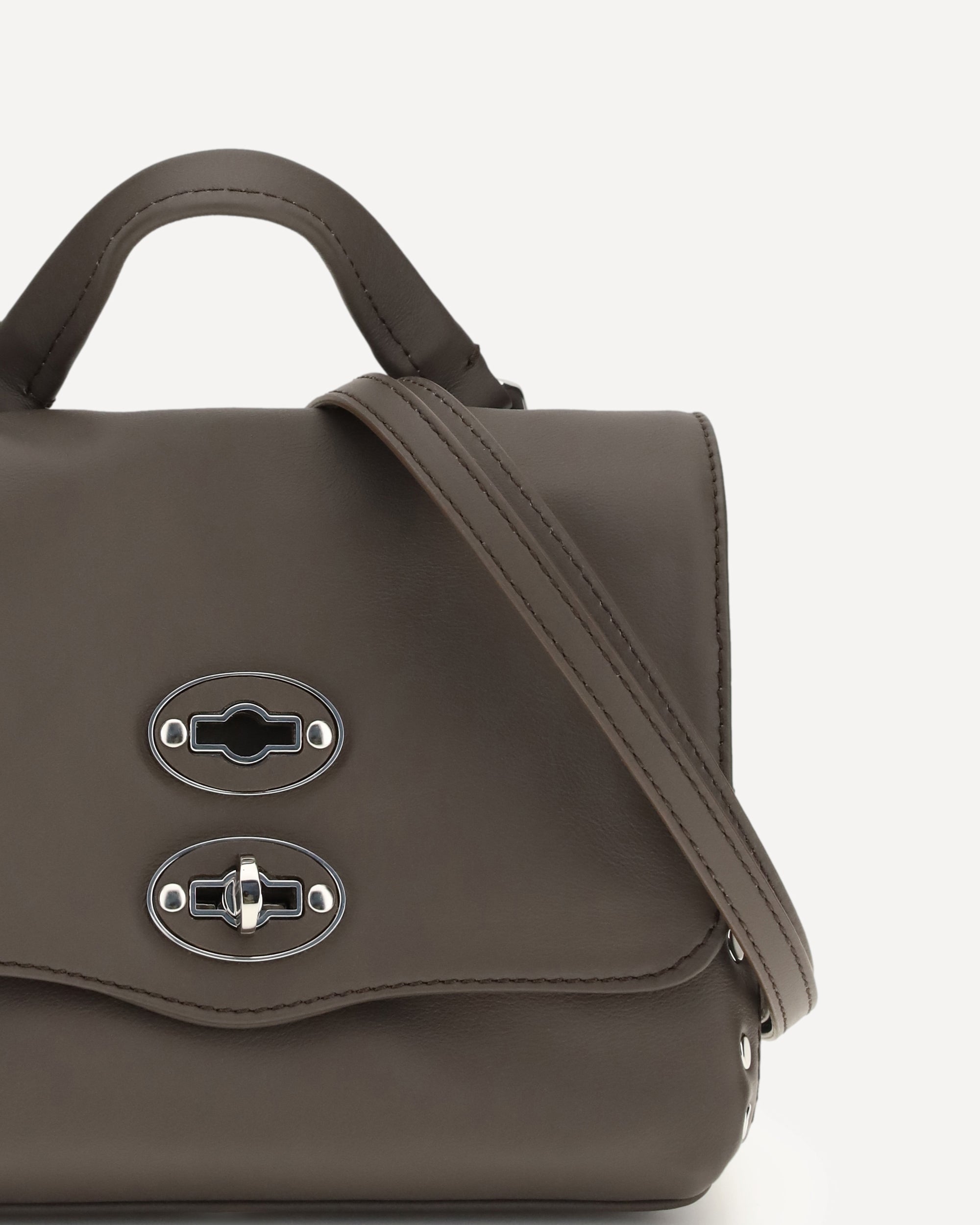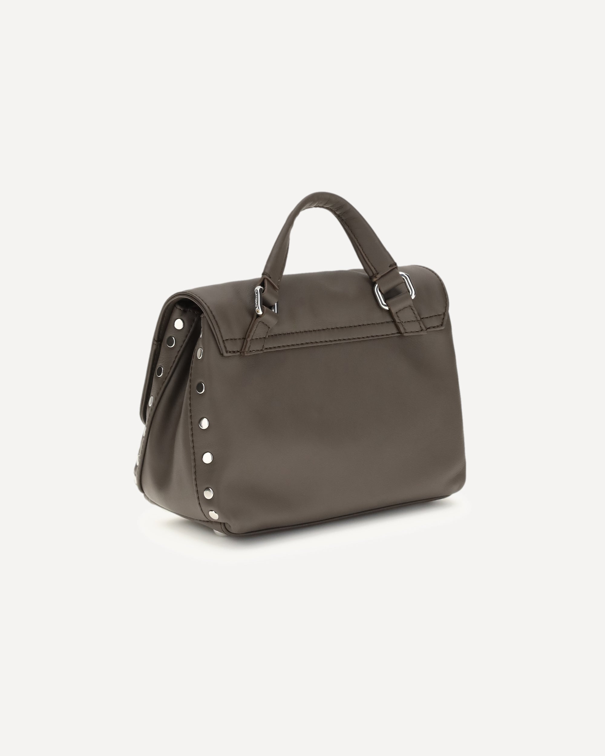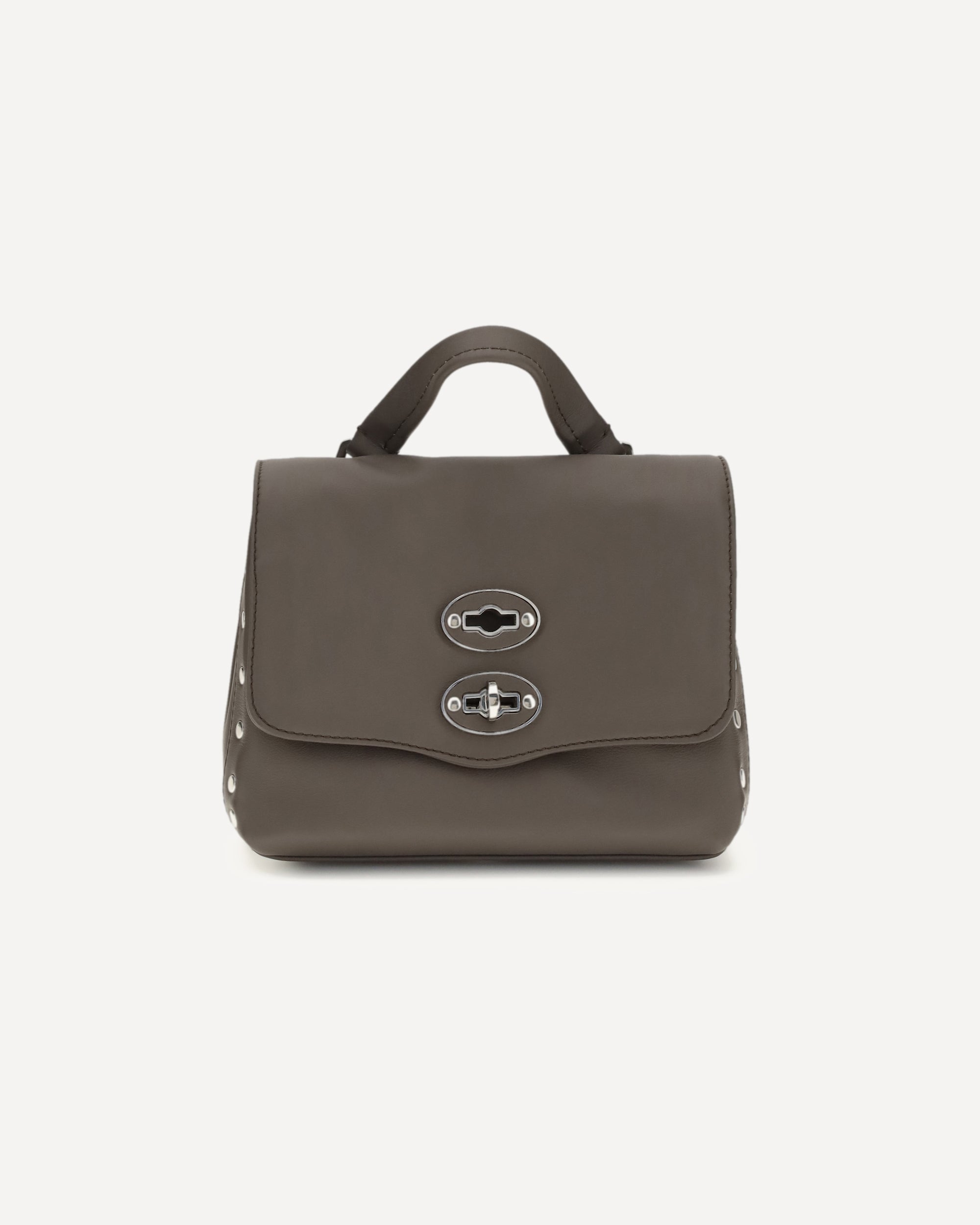 The Saeta Baby leather Postina Handbag by Zanellato is an elegant and functional model, perfect for those looking for a versatile and stylish accessory. The single flat leather handle on the top makes it comfortable to carry by hand, while the adjustable and removable shoulder strap offers the possibility to wear it either on the shoulder or crossbody, adapting to different needs. The front swivel hook closure is a distinctive detail that gives the bag a touch of character, while the flat studs on the side panels add an element of originality and a rock-chic accent. A perfect mix of style, practicality and quality.