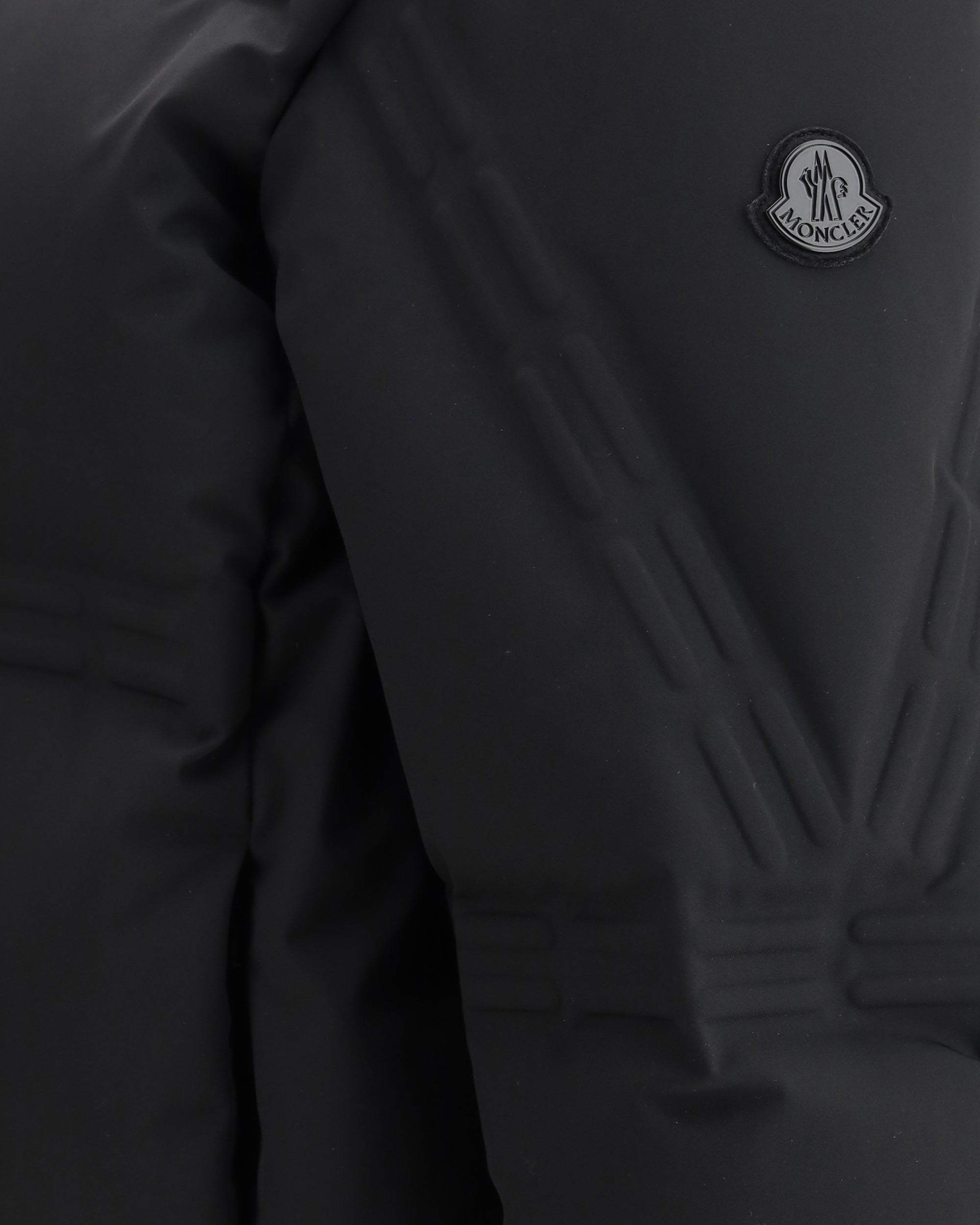The Quilted Rally Jacket Moncler x A$AP Rocky celebrates the meeting of technical heritage and contemporary creative vision. Featuring warm padding and geometric quilting, it combines functionality and style in a silhouette full of character. The high collar with lettering adds a distinctive detail, while two front pockets and a zip closure ensure practicality. The emblem on the left sleeve completes the design, turning a sporty piece into an urban icon created for those who live the city with energy and personality.