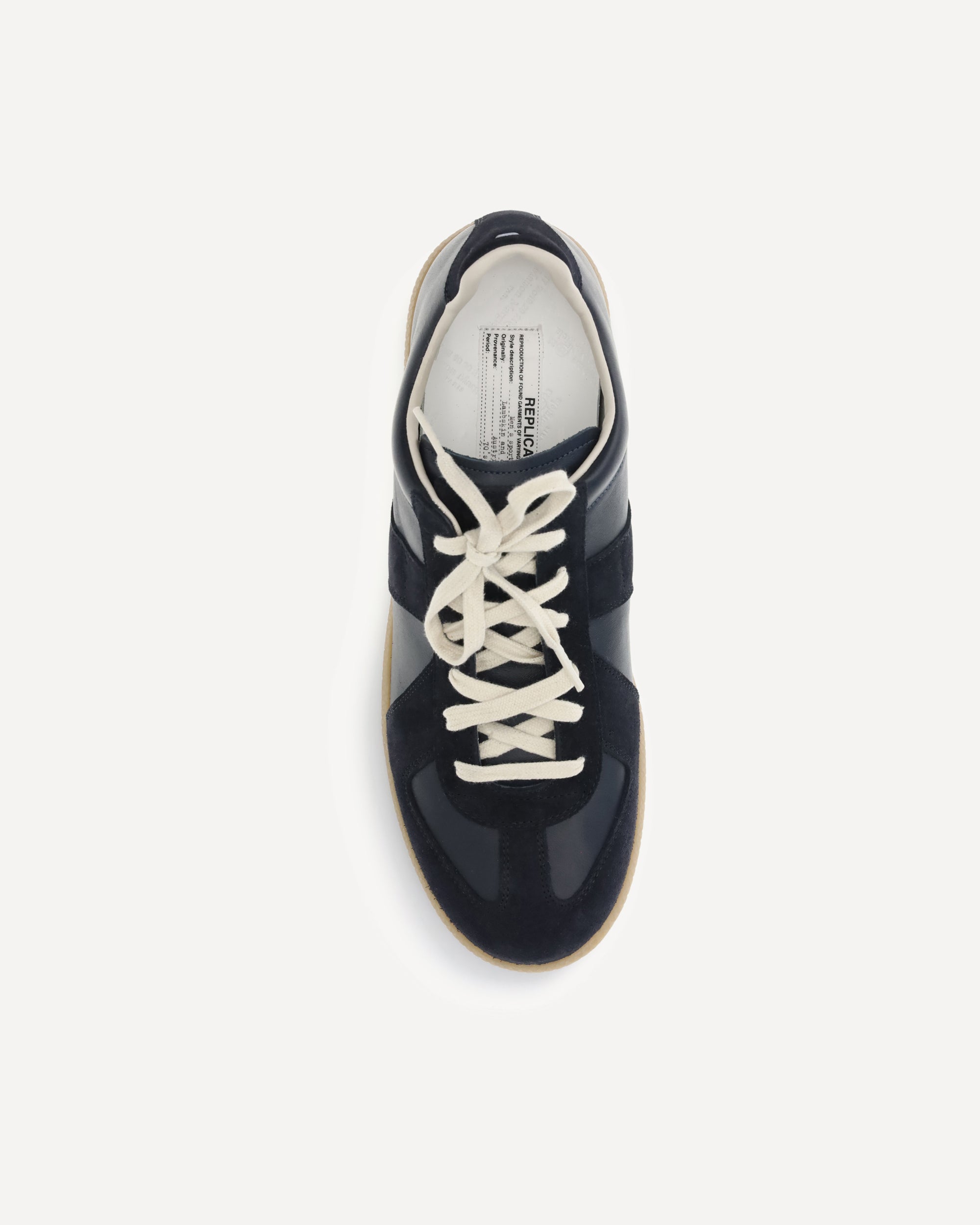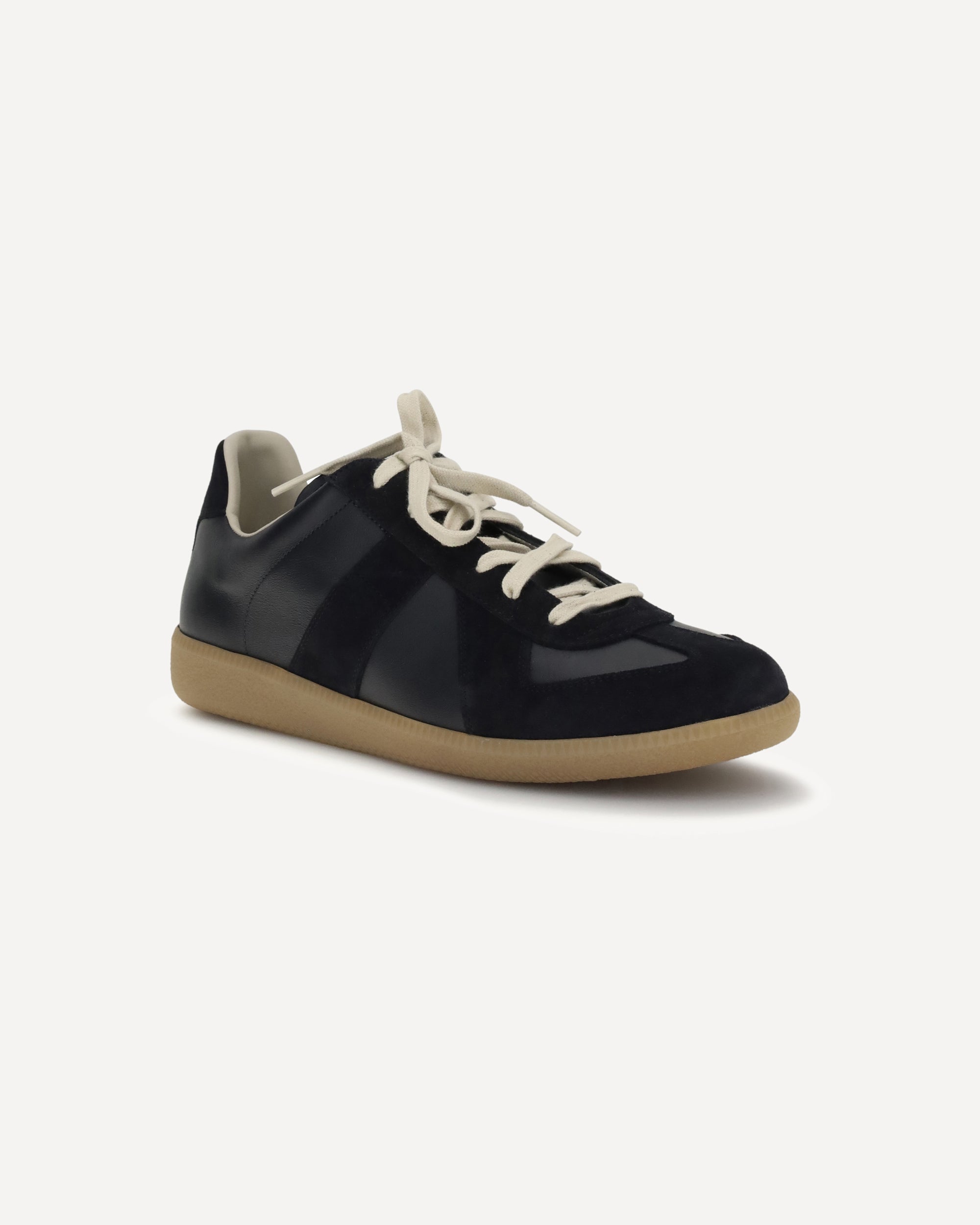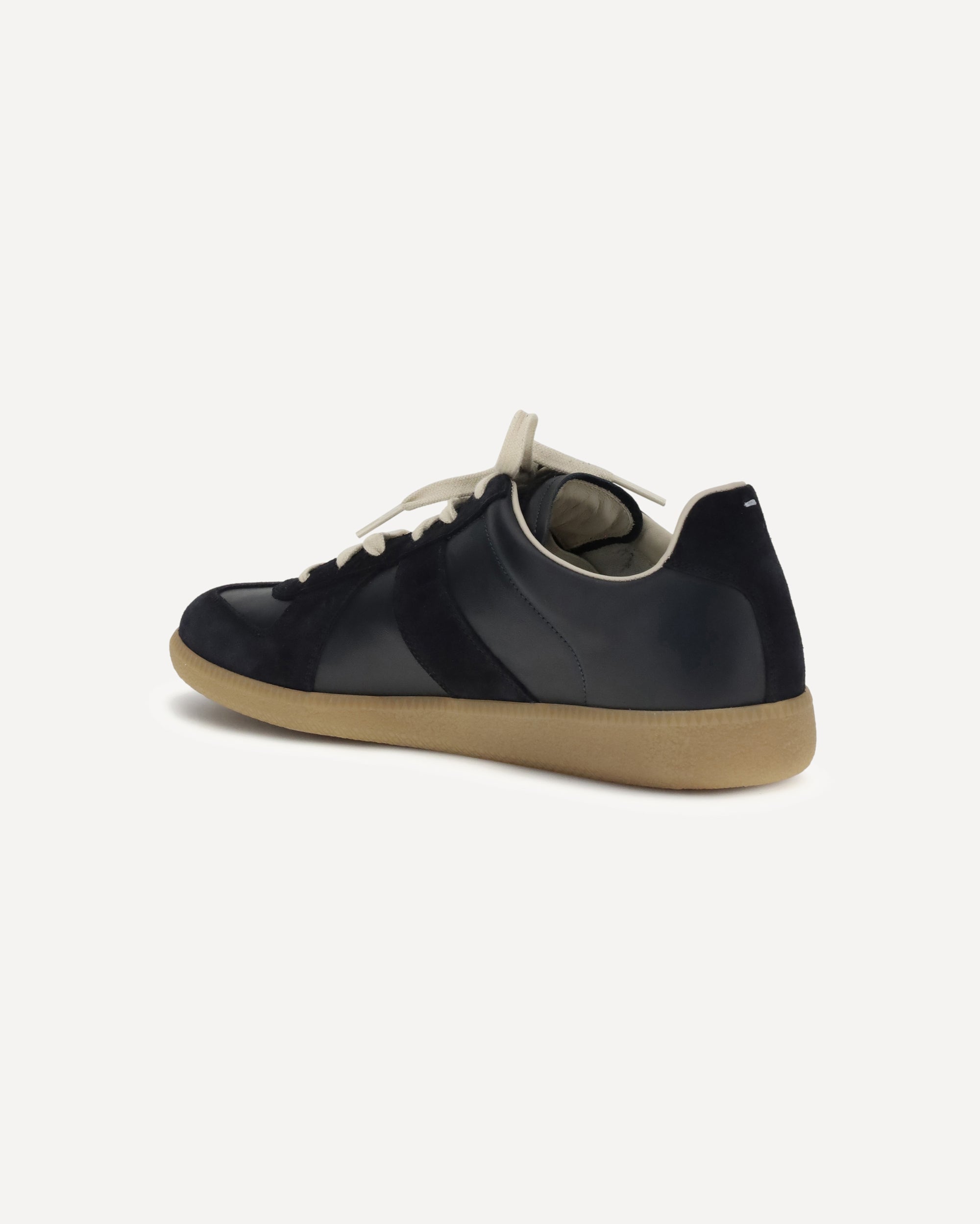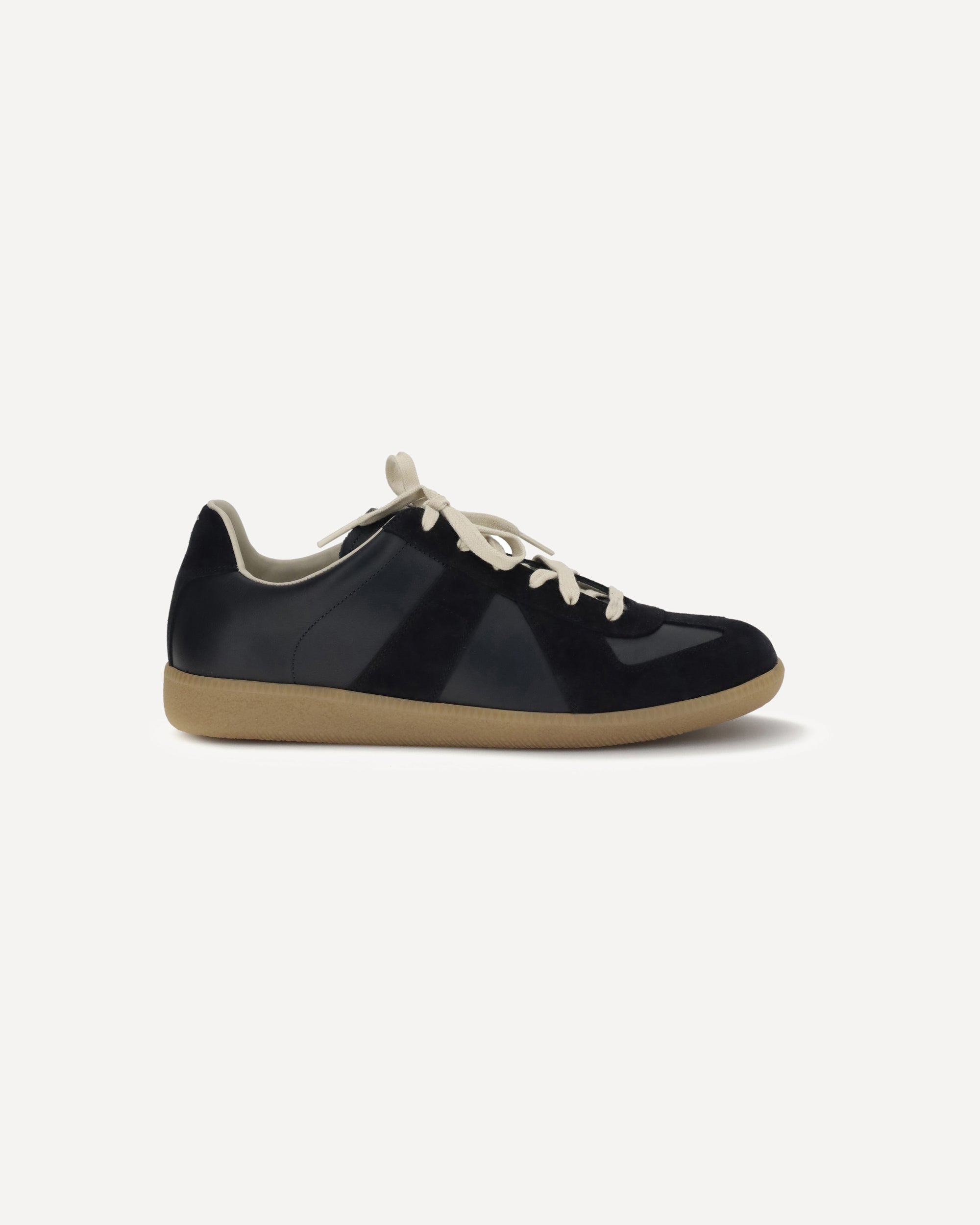The leather Sneakers by Margiela combine contemporary style and comfort. Made of leather with suede details, they feature a paneled design and a contrasting gum sole that lends character to the model. The front lace-up closure ensures a customized fit, while the front logoed press-stud tab adds a distinctive and iconic touch.