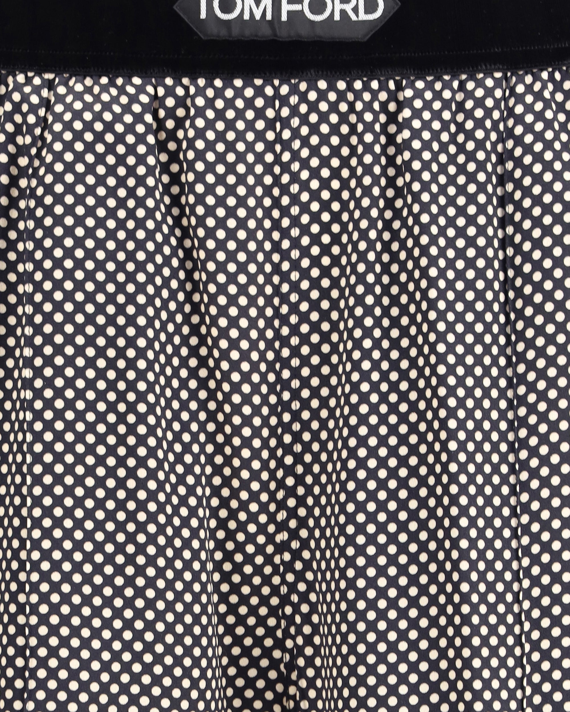 Tom Ford's polka dot Pants combine elegance and comfort with a twist. Featuring an elasticated velvet waistband with contrasting signature, they have two side welt pockets and two patch pockets on the back. A garment with a refined and modern design, perfect for adding character to your everyday wardrobe.
