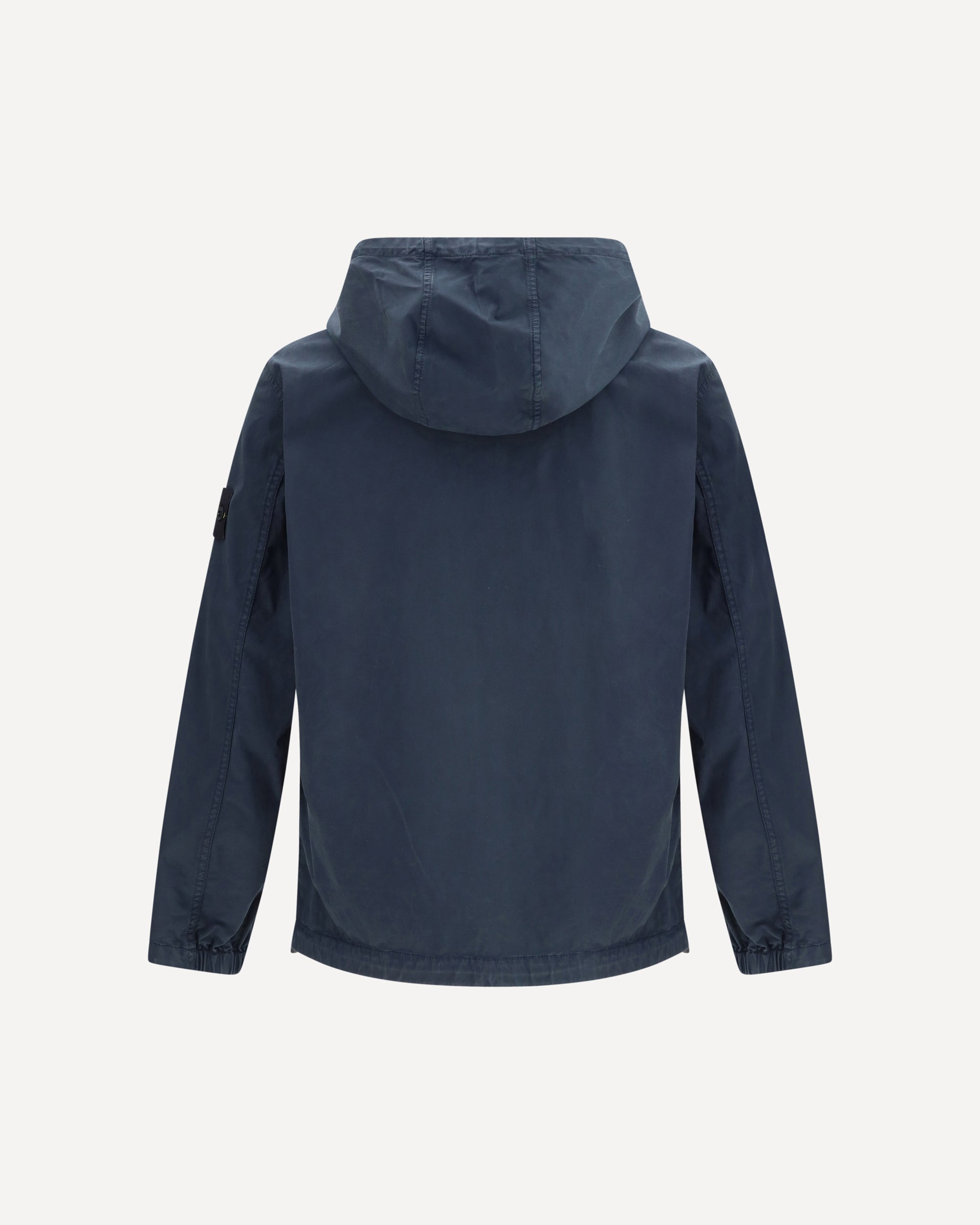 Stone Island's Cotton Jacket features an adjustable drawstring hood and front zipper closure. The model is completed with two patch pockets on the front and the iconic patch on the left arm, a distinctive symbol of the brand.
