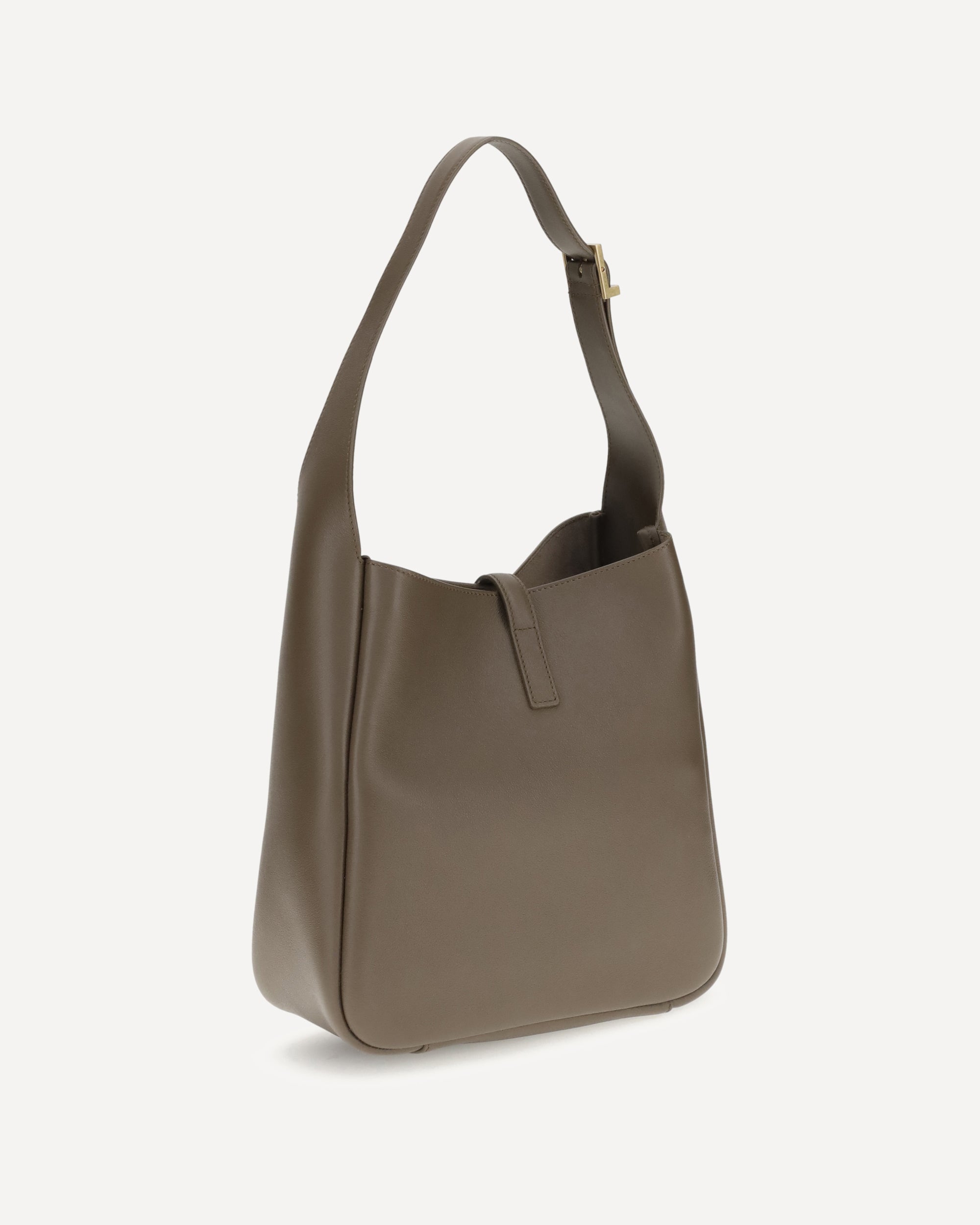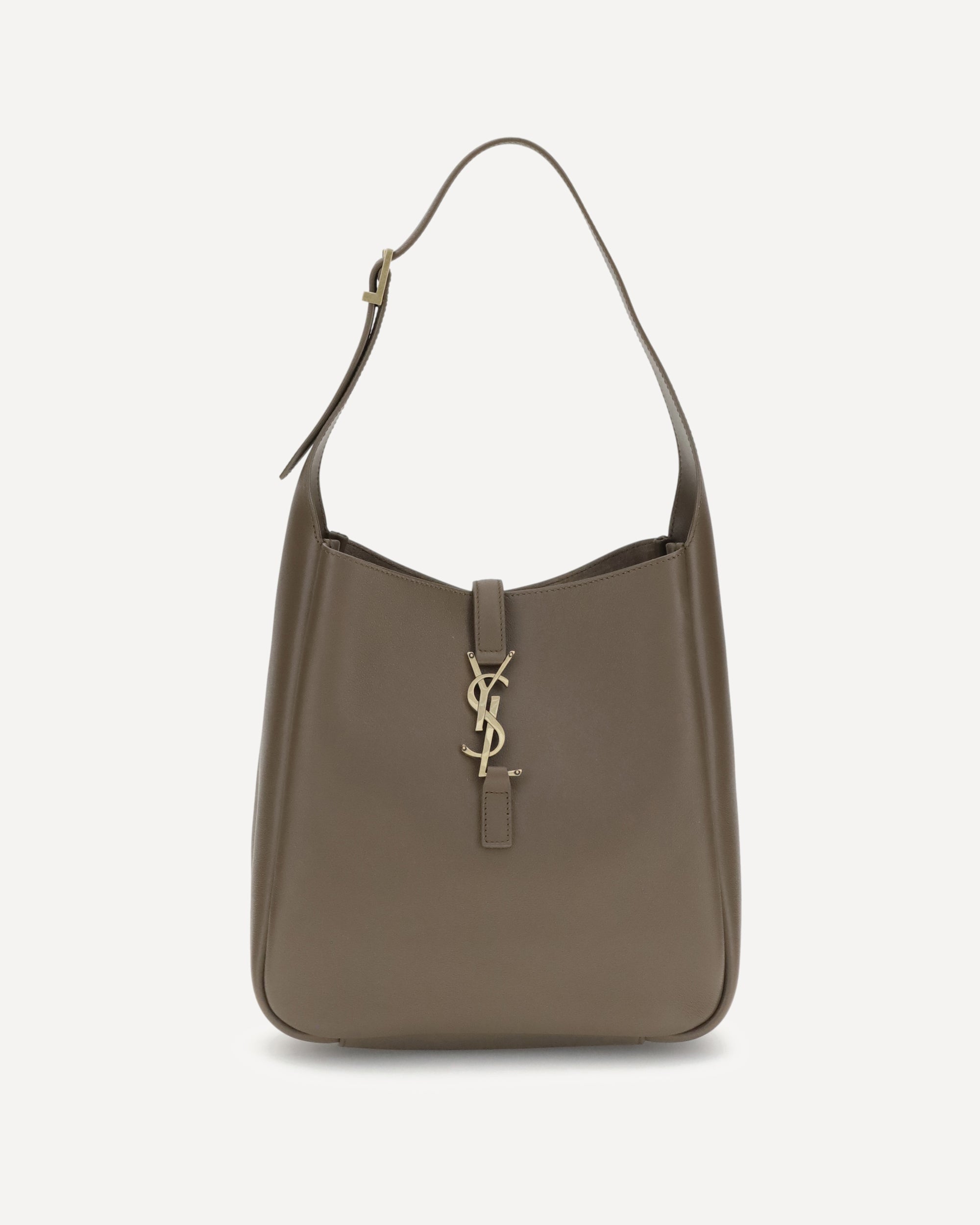 Saint Laurent's Cassandre Leather Shoulder Bag is the epitome of contemporary elegance. Featuring a refined hobo design, it features a supple grained leather silhouette and an adjustable shoulder strap with a logo buckle, enhancing its sophisticated style. The interlocking front closure is embellished with the iconic YSL logo hook, a true symbol of the maison. The interior is organized into two main compartments and a practical zippered welt pocket for the perfect mix of functionality and glamour.