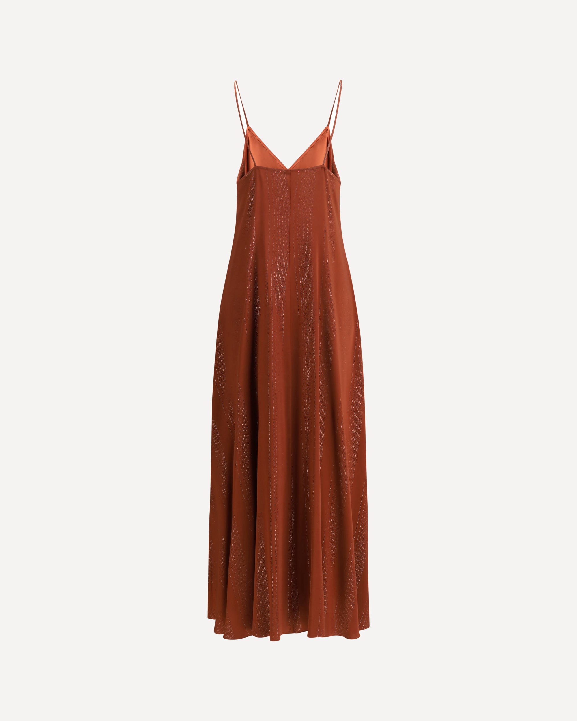 The silk long Dress by Forte_Forte is an elegant slipdress featuring refined silver yarn details that give a delicate luminous effect. The model features a V-neckline and thin straps, enhancing the silhouette with lightness and femininity. A sophisticated and flowing garment, perfect for special occasions with discreet appeal.