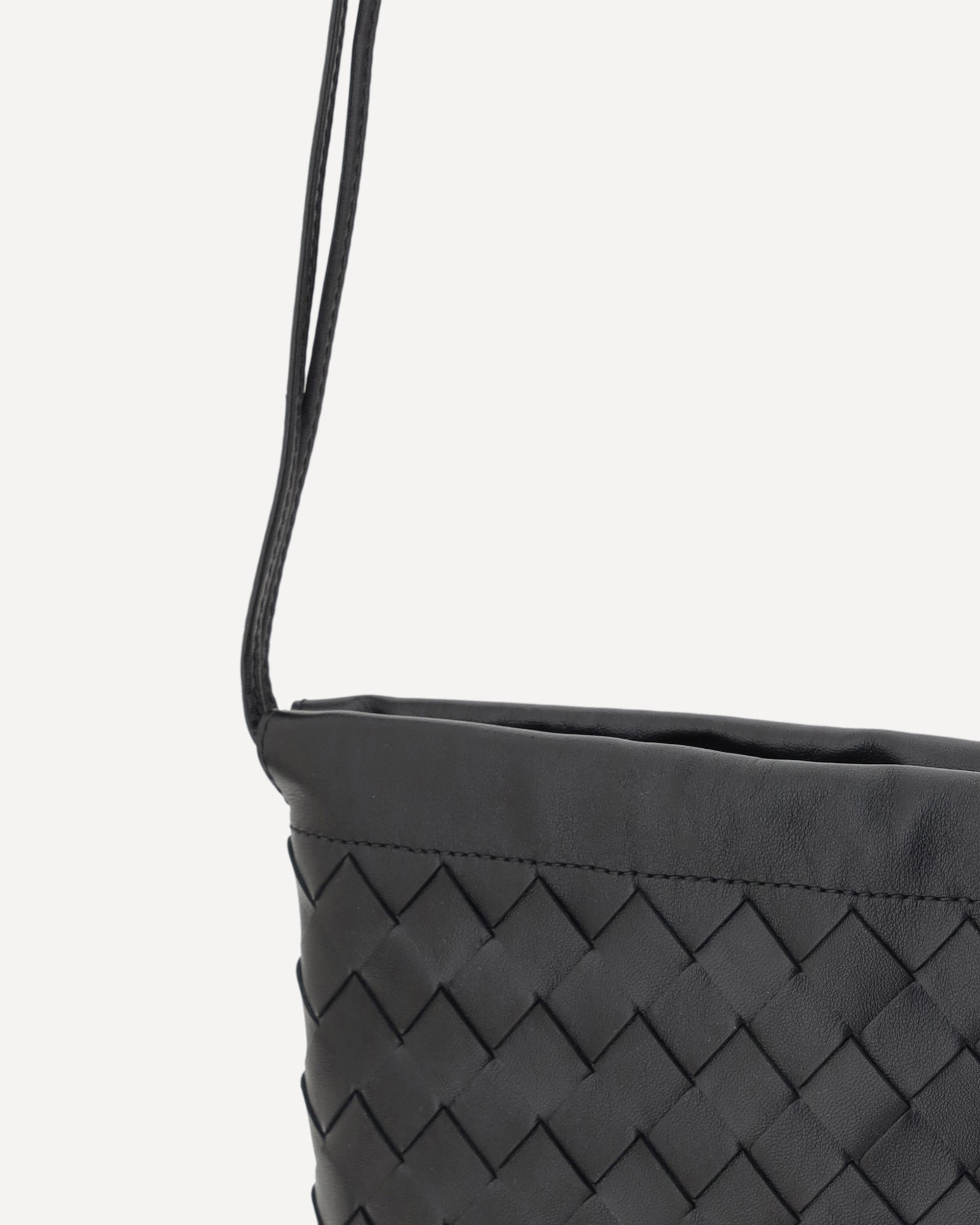 Bottega Veneta's leather Clutch Bag is a modern and sophisticated interpretation of the brand's famous intrecciato weave. Made of high-quality leather, the woven design covers the entire surface, giving it a luxurious and distinctive look. The drawstring closure at the top is ultra-practical and adds a dynamic touch, while the shoulder carry option makes it ideal for convenient daytime use. Inside, the bag features a single compartment, perfect for keeping everything in order.