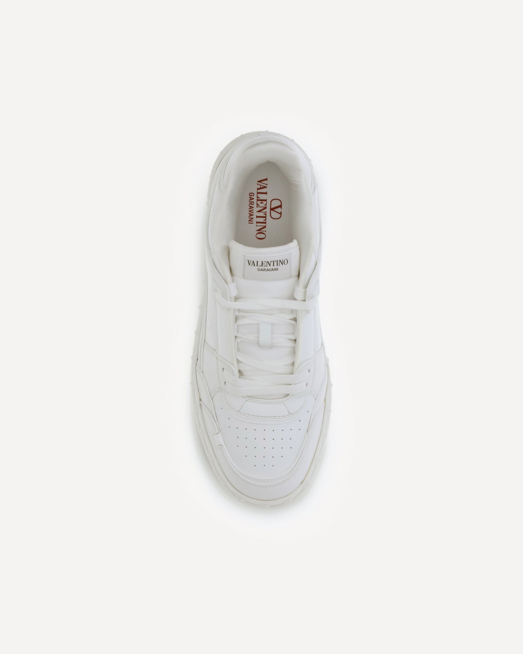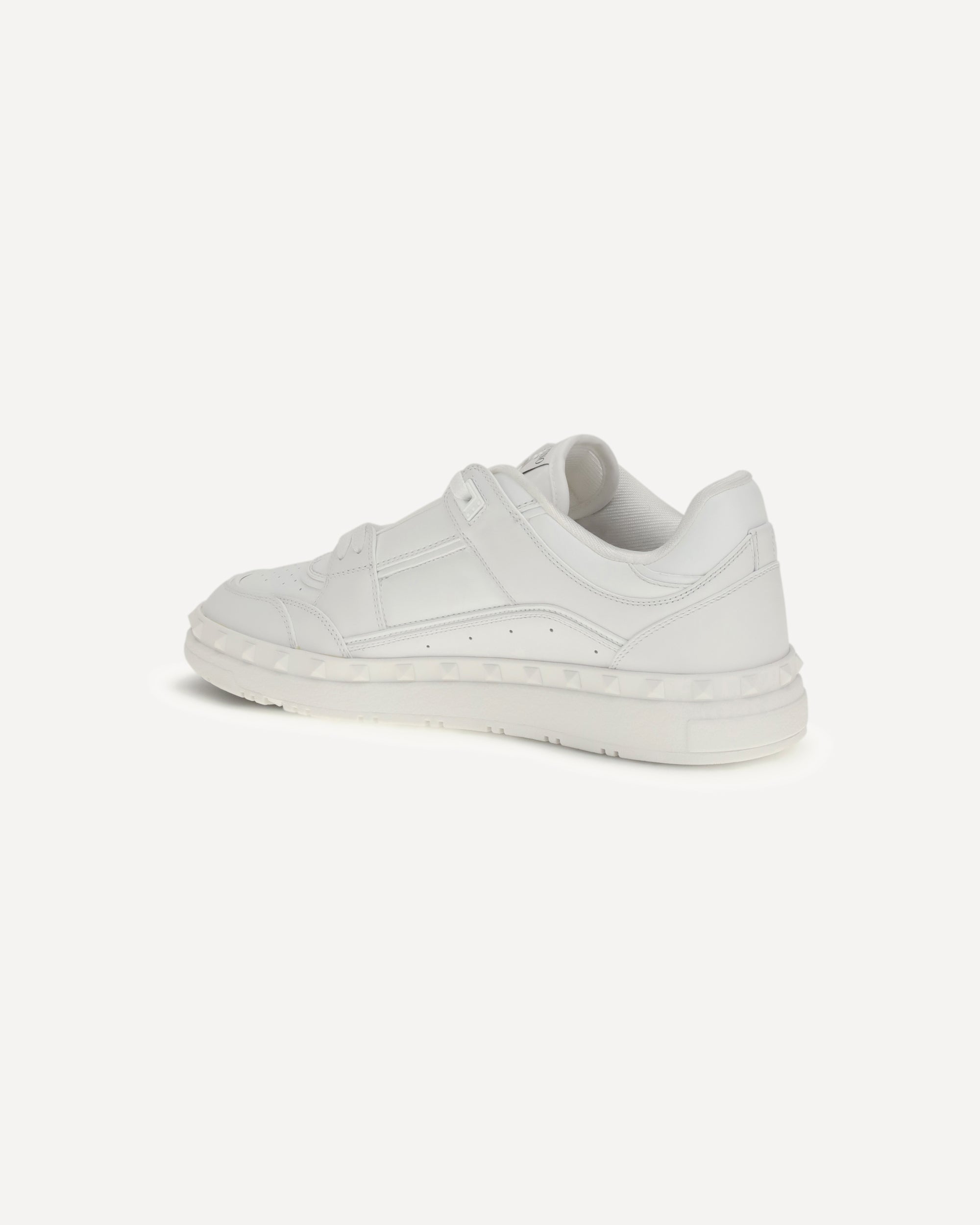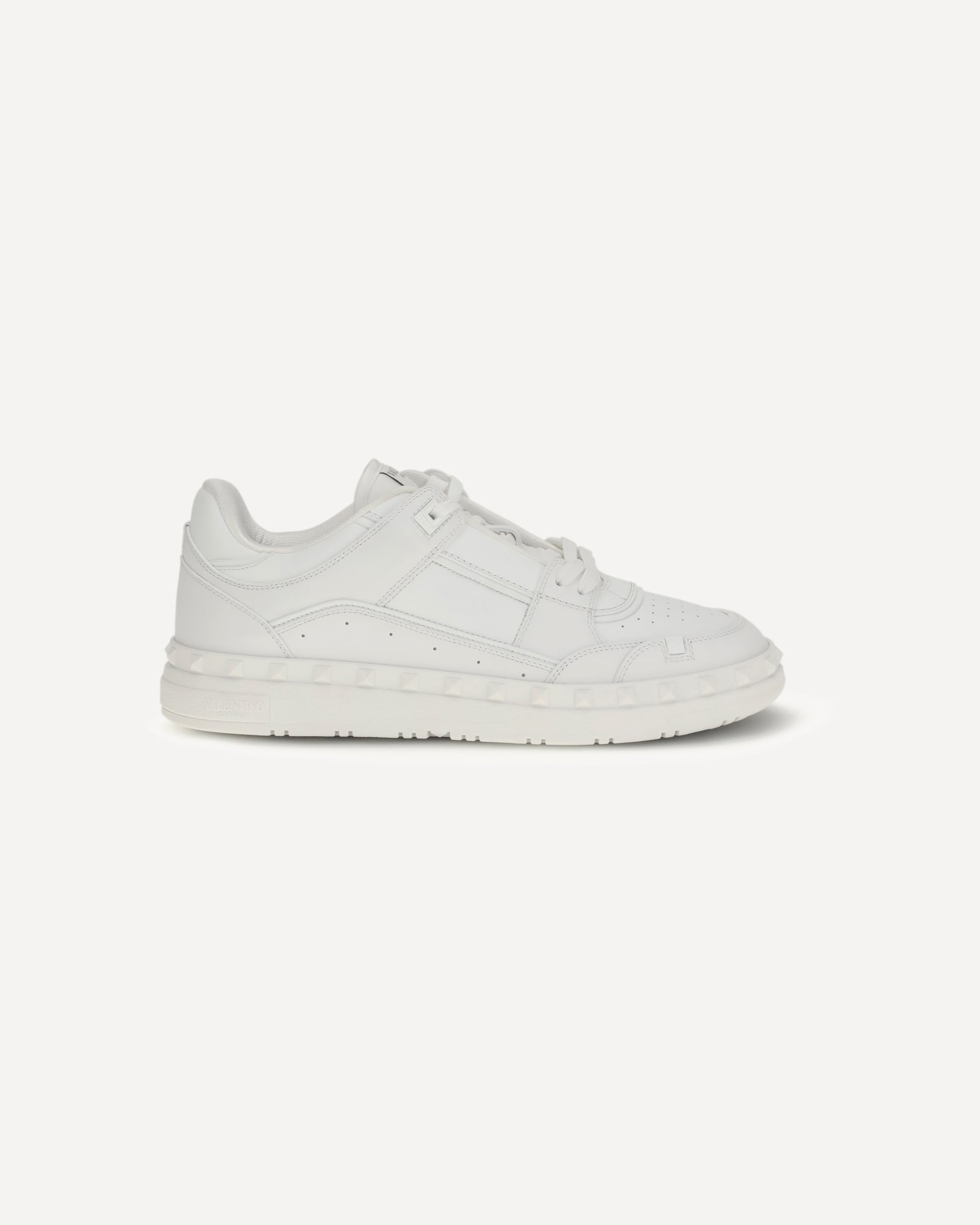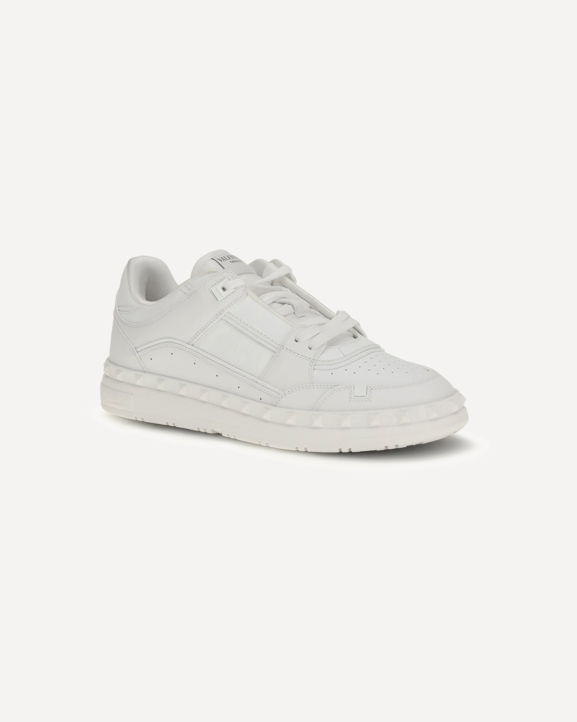 The Low Top Freedots Sneakers by Valentino Garavani feature screen-printed logos on the tongue and heel and a custom rubber welt with tonal studs. The rubber sole, embellished with Valentino Garavani logo detail, completes the model by combining iconic style and practicality.